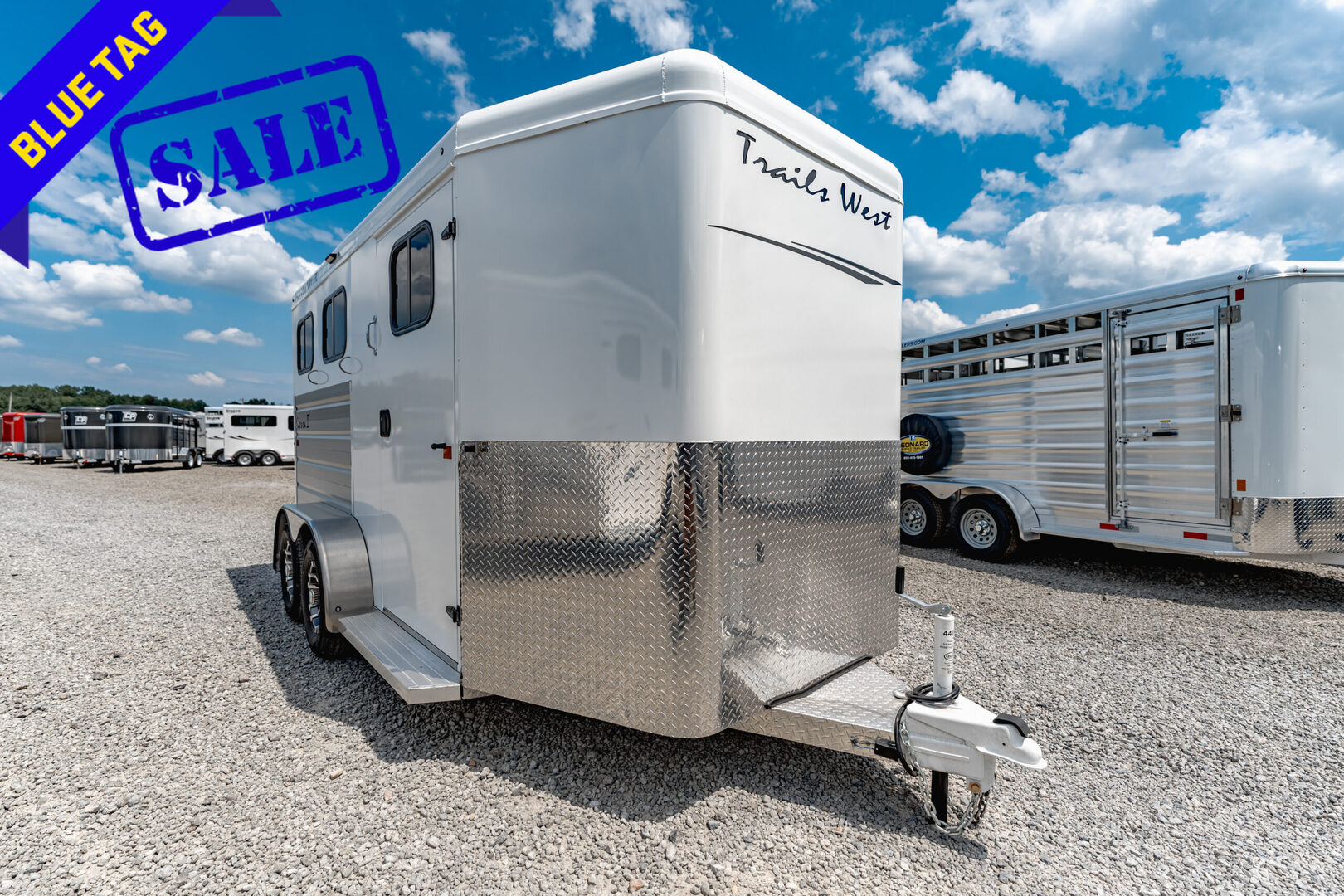 View Inventory: https://leonardtrailers.com/inventory/44059 Stock# 44059 2026 Trails West SIERRA II 2H BP Bumper Pull Horse Trailer The Sierra is our flagship horse trailer model. It comes loaded with standard features such as aluminum wheels, anodized aluminum exterior extrusion, stainless-steel front, and fully-lined and insulated horse compartment. A fully-carpeted angle wall in the tack room allows you to hang plenty of tack without damaging your trailer. Its abundance of features make this THE trailer that serious equine enthusiasts are looking for. Warranty: 1yr- Paint/Trim 5yr- Structural Model: Sierra II 2-Horse Model Description: Bumper Pull, Slant Load, Horse Trailer. Fully Enclosed Horse Compartment. Drop Down Feed Windows (head side), Sliding Windows Tail Side. Graphics Pkg: Logos: 1-Charcoal Cove Logos: 1-Charcoal Standard Axles: 3500# Standard Tires: ST225/75R15 LRD Convenience Pkg w/15” LRD on Gray     We offer outstanding financing options, accept trades, and can arrange nationwide NO HASSLE delivery! Inquire today for more information! (888) 333-6613 **We believe these specifications to be accurate. Any discrepancies are unintentional. Please verify information with a sales associate prior to purchase.** Stock Number:44059