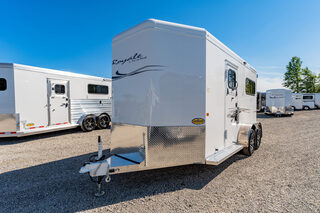 Stock# 44042 2026 Trails West ROYALE BP PLUS Bumper Pull Horse Trailer Do you haul a big horse? Well, look no further than the Trails West Royale. This side-by-side trailer features one of the industry’s largest stalls, giving your horse the comfort and ride they deserve. The walk-through loading style makes it a breeze to safely load and unload your horses. And our Royale Plus model allows the inside divider and hardware to be easily removed creating a single large box stall for whatever you’re looking to haul.. Warranty: 1yr- Paint/Trim 5yr- Structural Royale BP Plus Horse Trailer Model Description Type: Bumper Pull Horse Trailer Appearance & Branding Graphics Package: Roy-Char Logos: 1 – Charcoal Cove Logos: 1 – Charcoal Standard Equipment Axles: 3,500# Tires: ST225/75R15 LRD Optional Package Convenience Package: Royale Plus   We offer outstanding financing options, accept trades, and can arrange nationwide NO HASSLE delivery! Inquire today for more information! (888) 333-6613 **We believe these specifications to be accurate. Any discrepancies are unintentional. Please verify information with a sales associate prior to purchase.** Stock Number:44042
