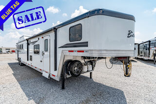 View Inventory: https://leonardtrailers.com/inventory/44114 Stock# 44114 New 2025 Bison SV8416.S.R. Gooseneck Horse Trailer With Living Quarters Introducing the Silverado aluminum frame luxury coach! Embrace the perfect balance of elegance and sturdiness as you embark on unforgettable journeys. With the Silverado’s superior craftsmanship and thoughtful design, you’ll experience the pinnacle of comfort and convenience, all while benefiting from its lightweight advantage. Welcome endless possibilities with the Bison Silverado – The Ultimate Companion for Your Travel Dreams. Model:SV8416.S.R. Warranty: 1yr- Exterior Paint (Peeling& Fading) 2yr- Components, Assembilies, Systems 6yr- Structrual As Long As You Own The Trailer-Pressure Treated Lumber Floor in Horse Area Trailer Specifications: SV8416.S.R - Slide Out - Rear Side LOA White exterior 8000# axles ILO 7000# incl HD coupler H-tire / alum rim, ST215/78R17.5 LRH 8 lug - black Hydraulic jack, dual legs Mangers - 4H / 3 stall Hay pod (8W only) w/ lined & insulated Horse area ceiling Stud wall Alum rear ramp - regular Step (@ escape door) HD drop down windows head/butt side Load light pkg (4 total) HD kick-wall & horse door liner Conversion options Rustic Bison interior Rustic Bison cabinetry Linoleum, Strata Max Pro Deep Timbers Dark Mocha - 102” Sofa & dinette 15,000 BTU air cond., ducted Water heater gas/ele DSI - 6 gal (ILO gas DSI) Stereo with interior & exterior speakers Oven w/ 3 burner stove Awning, power (per model spec) Bunk privacy curtain Queen mattress w/ bedspread TV, 32” Roku Smart TV Cable inlet Hat rack Porcelain toilet Fantastic fan in bathroom (ILO STD)   We offer outstanding financing options, accept trades, and can arrange nationwide NO HASSLE delivery! Inquire today for more information! (888) 333-6613 **We believe these specifications to be accurate. Any discrepancies are unintentional. Please verify information with a sales associate prior to purchase.** Stock Number:44114