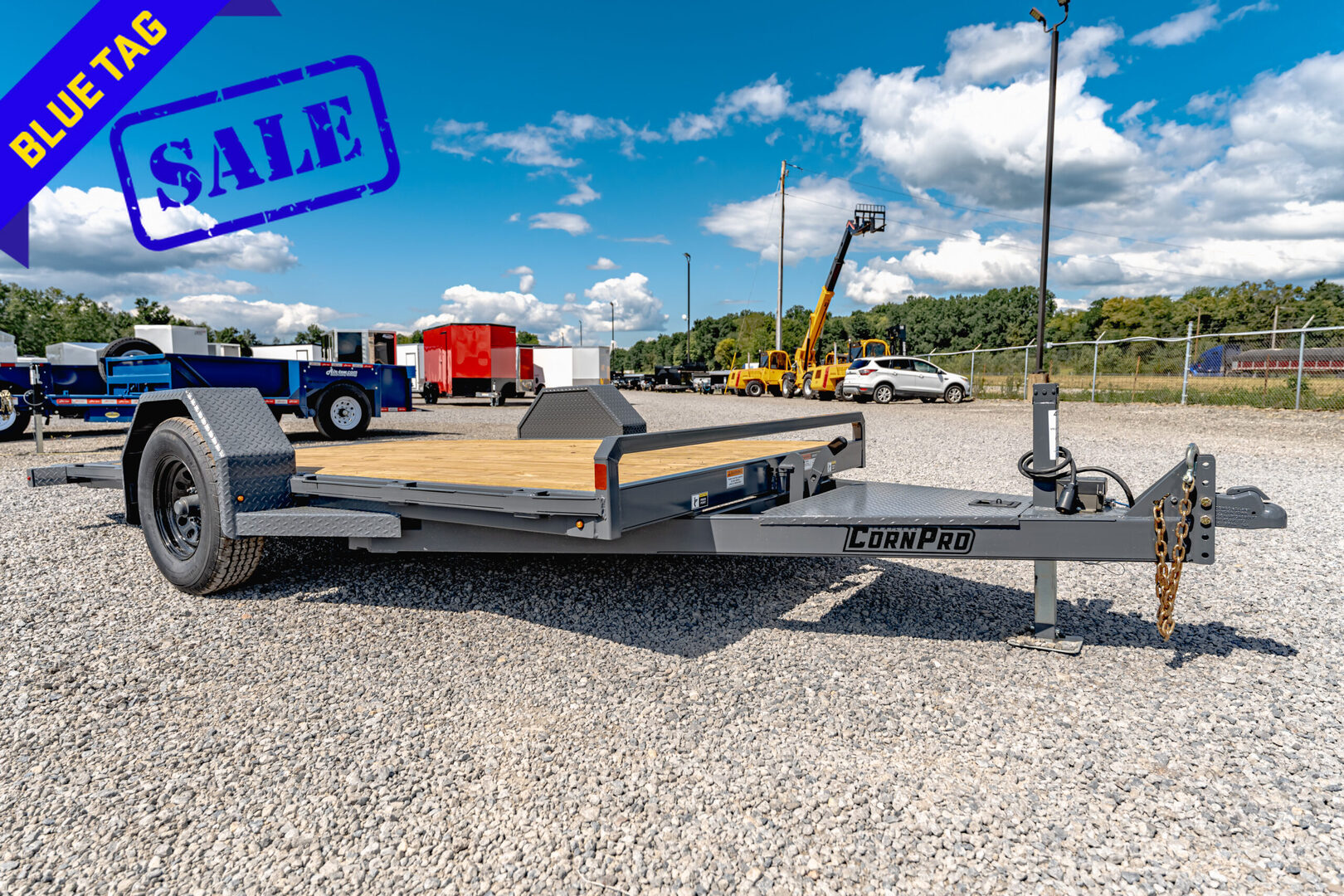 View Inventory: https://leonardtrailers.com/inventory/44151 Stock# 44151 New 2026 Corn Pro UT-14 SAT Bumper Pull Equipment Trailer Need a tilting hauler to get the job done? CornPro’s got your best option — the UTSAT. Set on a 3”x 5”x 1/4” frame on 24” centers with 12’ of full-tilt, this guy is ready to move what you need moved, without a heavy-duty hauler on the front. Model:UT-14 SAT Warranty: 1yr- Limited Model: UT-SAT Single Axle Tilt Color: Gray Standard Features Frame: 2”x5”x3/16” tubing Crossmembers: 3” channel, 16” O/C Tongue: 2”x5”x3/16” tubing Coupler: Demco, 2 5/16 adjustable Jack: Demco, 3000# topwind Axle: ST225/75R15 E, 6 bolt Tires: 15E, 6 bolt Lighting: LED Tilt Function: Mechanical tilt with dampening cylinder   We offer outstanding financing options, accept trades, and can arrange nationwide NO HASSLE delivery! Inquire today for more information! (888) 333-6613 **We believe these specifications to be accurate. Any discrepancies are unintentional. Please verify information with a sales associate prior to purchase.** Stock Number:44151