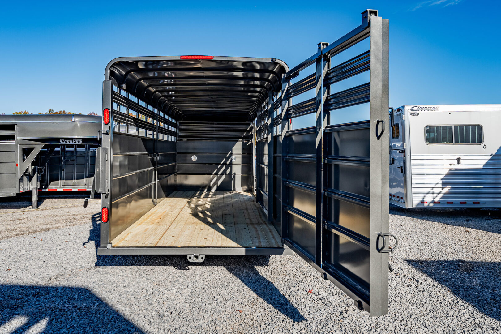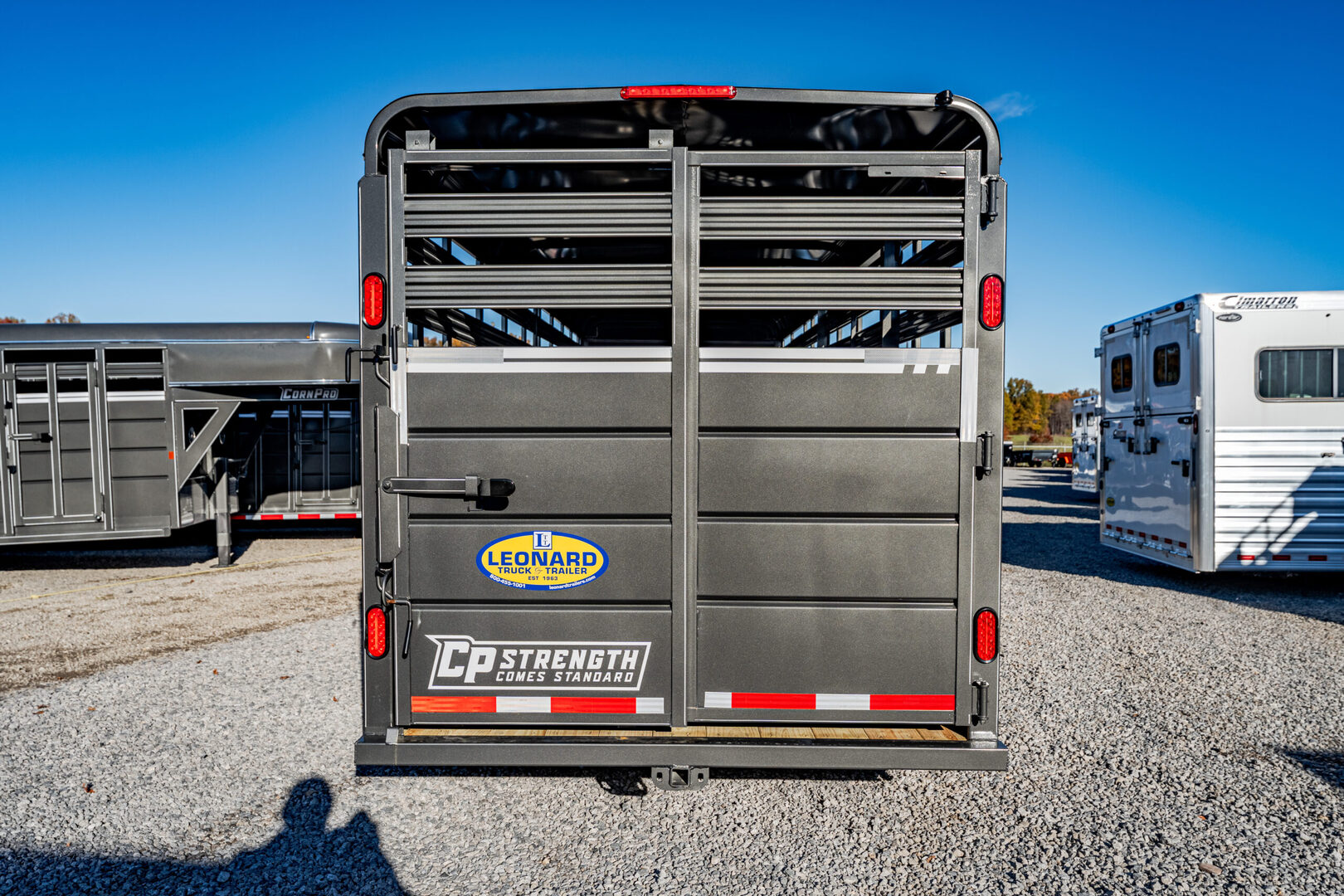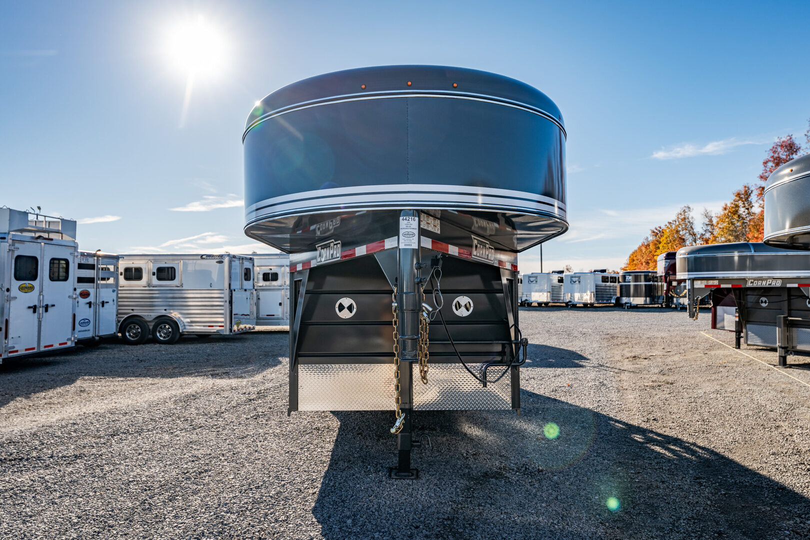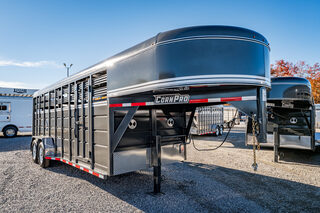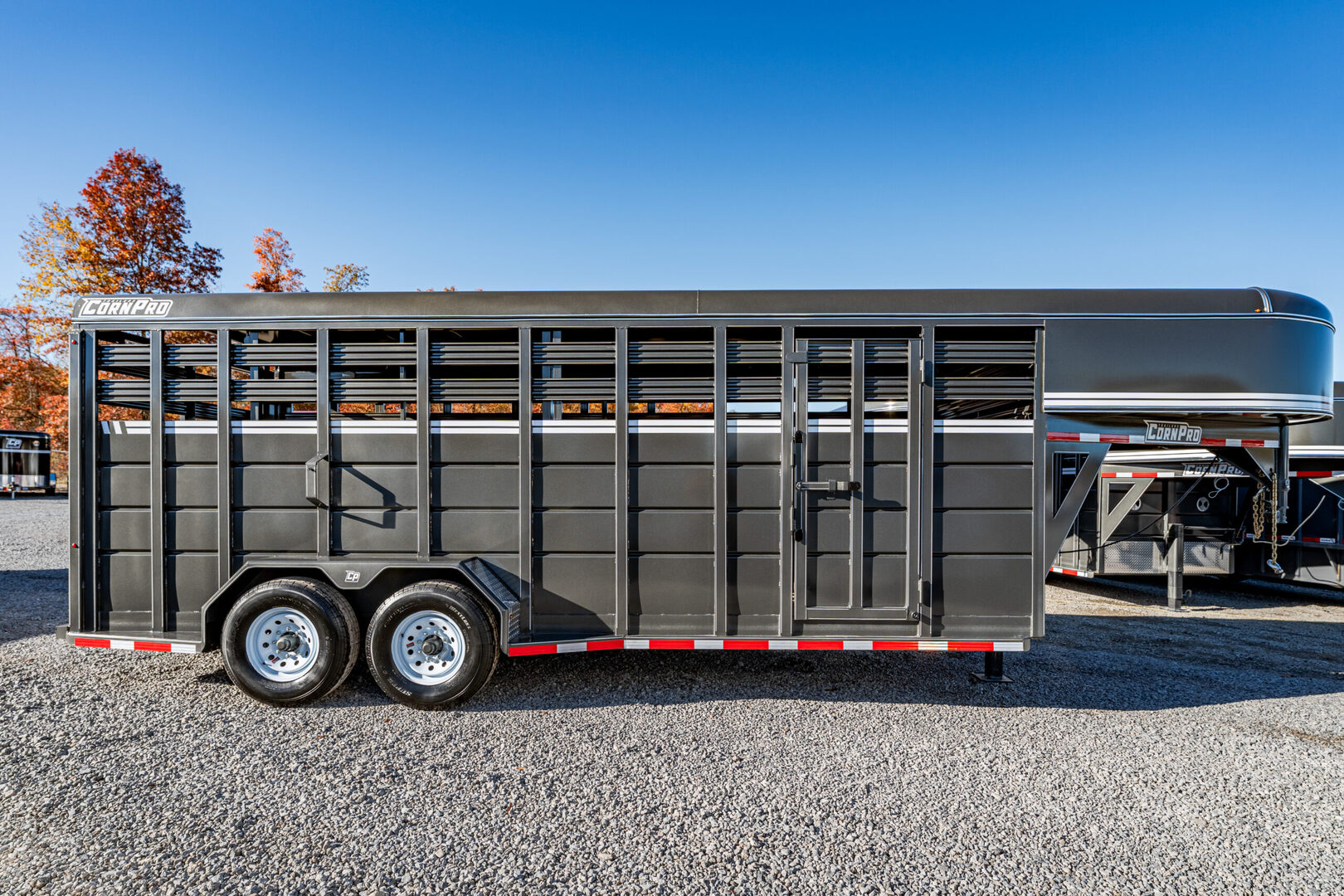 View Inventory: https://leonardtrailers.com/inventory/44216 Stock# 44216 New 2026 Corn Pro SG-20 Gooseneck Stock Trailer For professionals, or hobbyists that want the professional grade, CornPro brings durability with Dexter Torflex torsion axles and huge structural angle frames. Aluminum tread plate rock guards and kiln-dried pine flooring keeps it strong for years to come. Keep it standard or make it your own with five color choices and lots of customized options. Model:SG-20 Warranty: 1yr- Limited Trailer information: Color: Gray Height: 7 ft tall Standard Features Frame: 3” x 5” x 1/4” angle iron Crossmembers: 3” x 2” x 3/16”, 16” o.c. Tongue: 4” channel Coupler: B&W, 2-5/16 Jack: Jost, 12K with driver-side crank Axles (14’, 16’): Dexter Torflex, 6,000# Axles (8’, 20’, 22’, 24’): Dexter Torflex, 7,000# Tires: ST235/80R16 E, 8-bolt Side & Front sheet: 14 gauge Roof sheet: 16 gauge Wall posts: 1” x 3” tube, 16” o.c. Rear door: Full swing & 1/2 slide Center gate: Full swing (2 center gates in 24’) Lighting: LED, 1 dome light We offer outstanding financing options, accept trades, and can arrange nationwide NO HASSLE delivery! Inquire today for more information! (888) 333-6613 **We believe these specifications to be accurate. Any discrepancies are unintentional. Please verify information with a sales associate prior to purchase.** Stock Number:44216