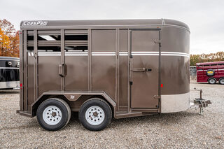 View Inventory: https://leonardtrailers.com/inventory/44201 Stock# 44201 New 2026 Corn Pro SB-14 Bumper Pull Stock Trailer For professionals, or hobbyists that want the professional grade, CornPro brings durability with Dexter Torflex torsion axles and huge structural angle frames. Aluminum tread plate rock guards and kiln-dried pine flooring keeps it strong for years to come. Keep it standard or make it your own with five color choices and lots of customized options. Model:SB-14 Warranty: 1yr- Limited Model SB-S Bumper Livestock Color AZ BEIGE Standard Features: Frame: 3”x5”x1/4” angle iron Crossmembers: 3”2”x3/16”, 24” oc Tongue: 4” channel Coupler: Demco, 2 5/16 Jack: Demco, 3000#, top wind Axles (6S models): Dexter Toflex, 3500# Tires: 3.5K-15E, 6 bolt; 6K-16E, 8 bolt Side & Front sheet: 14 gauge Roof sheet: 16 gauge Wall posts: 1”x3” tube, 24” oc Rear door: Full swing & 1/2 slide Center gate: Full swing Lighting: LED, 1 dome light   We offer outstanding financing options, accept trades, and can arrange nationwide NO HASSLE delivery! Inquire today for more information! (888) 333-6613 **We believe these specifications to be accurate. Any discrepancies are unintentional. Please verify information with a sales associate prior to purchase.** Stock Number:44201