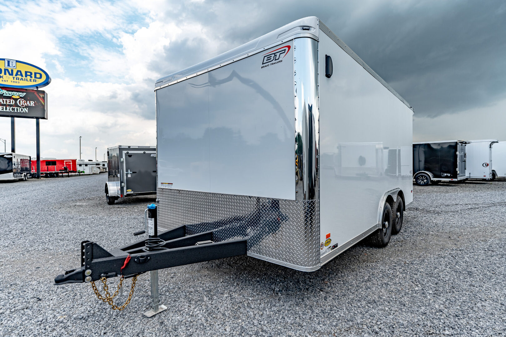 Stock# 44246 New 2025 Bravo GP8516TA3 Enclosed Cargo Trailer GreenPRO trailers by Bravo are not your typical “throw away” enclosed trailers. They have been engineered and tested for the rigors of daily landscape contractor use. Stronger frames, ramp doors, side doors and the features you need to get the job done. Bravo Trailers look better and work harder! Model: GP8516TA3 Warranty: 5 year  Trailer Dimensions & Frame 8.5’W x 16’L Tandem 5200# Axle 5200# Tandem Drop Spring Axles GVWR Rated @ 9990# Electric Brakes 6” Tube Frame Cross Members @ 16” O.C. 75-3/4” Tube Wall Posts @ 16” O.C. (for 6’6” interior height) Tube Roof Members @ 16” O.C. Tube Rear End (Cornerpost, Rear X-Member & Rear Header) 1.5” Structural Steel Angle (1/8” thick) welded along front and rear vertical edges of wheel boxes 54” Triple Tube Tongue w/ Additional Tubing 7GA Front Crossmember Tongue & Coupler 2-5/16” Adjustable Ball Coupler – 14K Weld-On Chain Retainer HD Premium 12V Junction Box (A-Frame Mounted) Square 5000# Drop Leg Tongue Jack Setback Tongue Jack – 24” Back Rockguard Paint on Tongue, Rear Member & Wheel Boxes Tires & Roof ST225/75R15/LRD 15” Radial Tires Black Mod Wheels Translucent Roof Exterior Metal & Lighting .040 VHB Fastenerless Exterior Metal LED Strip Tail Lights Clear Lens LED Exterior Lighting LED License Plate Light Anodized Front Corners w/ J-Rail (STP Style) Screwed Down Wrap 24” ATP Stoneguard Around Front Corners Appearance Package: PKG-TA (4) Stainless Steel Center Caps (2) Chrome Bezel for LED Tail Light 040 White Exterior Metal (Performance or Pro) White TPO Cap Optional Add-Ons Wing 8” Roof Extension 11” LED Chrome Porch/Loading Light Upgrade 3/8” Chain & Hook to 36” Long We offer outstanding financing options, accept trades, and can arrange nationwide NO HASSLE delivery! Inquire today for more information! (888) 333-6613 **We believe these specifications to be accurate. Any discrepancies are unintentional. Please verify information with a sales associate prior to purchase.** Stock Number:44246