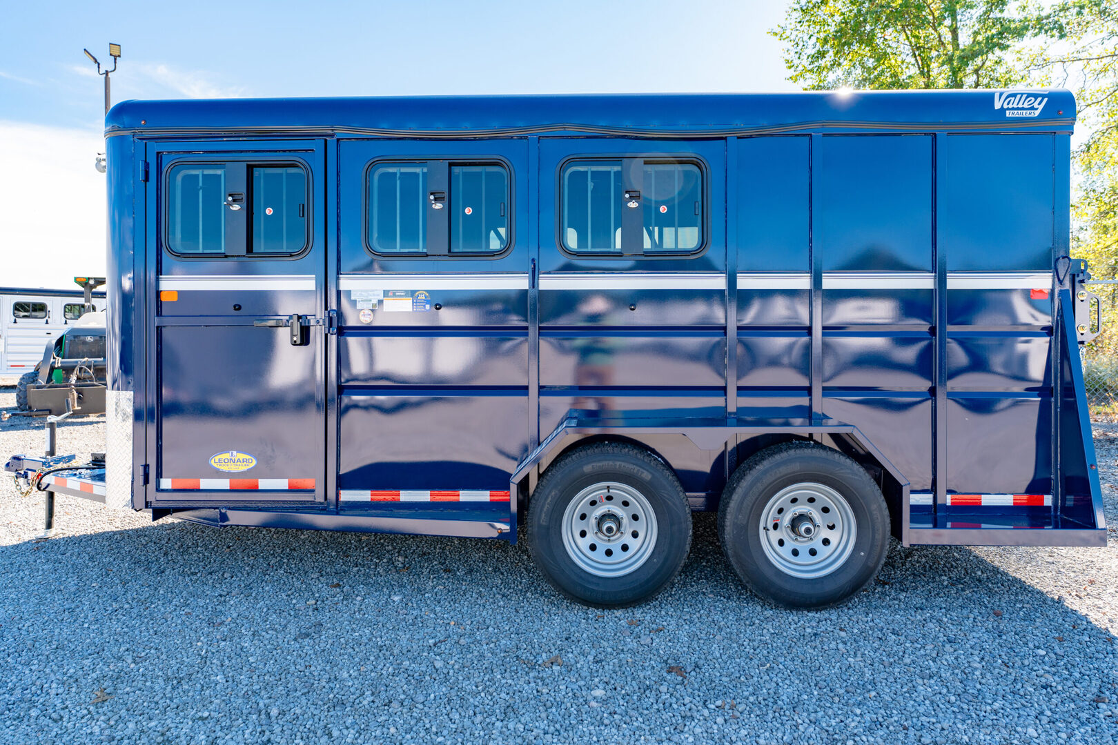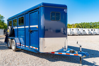 Stock# 44253 New 2026 Valley 3820 Bumper Pull Horse Trailer A Valley Horse trailer comes standard configured as a 7’ high inside height, slant load horse trailer. Valley Horse trailers come with safety features installed throughout the the entire trailer; peace of mind for the owner and horses. Many options are available for Valley Horse trailers, making your ownership experience as smooth as possible.” Model:3820 Warranty: 3yr- Structural 1yr-Components Trailer Details: Trailer Model: 3820 Trailer Type: Horse Hitch Type: Bumperpull Color: Valley Blue Width: 6’-8” Length: 18’ Height: 7’ Coupler: 2-5/16” Ball Axle Size: 6,000 lb # of Axles: 2 Tire/Wheel Size: 235/80 R16E, 6 Hole Silver Mod 655 Standard Features: Mats Woodlined Spare Tire Saddle Racks Brush Box Bridle Hooks Tie Rings Options: Shorten 1x2 upright on passenger side by axle (no charge)     We offer outstanding financing options, accept trades, and can arrange nationwide NO HASSLE delivery! Inquire today for more information! (888) 333-6613 **We believe these specifications to be accurate. Any discrepancies are unintentional. Please verify information with a sales associate prior to purchase.** Stock Number:44253