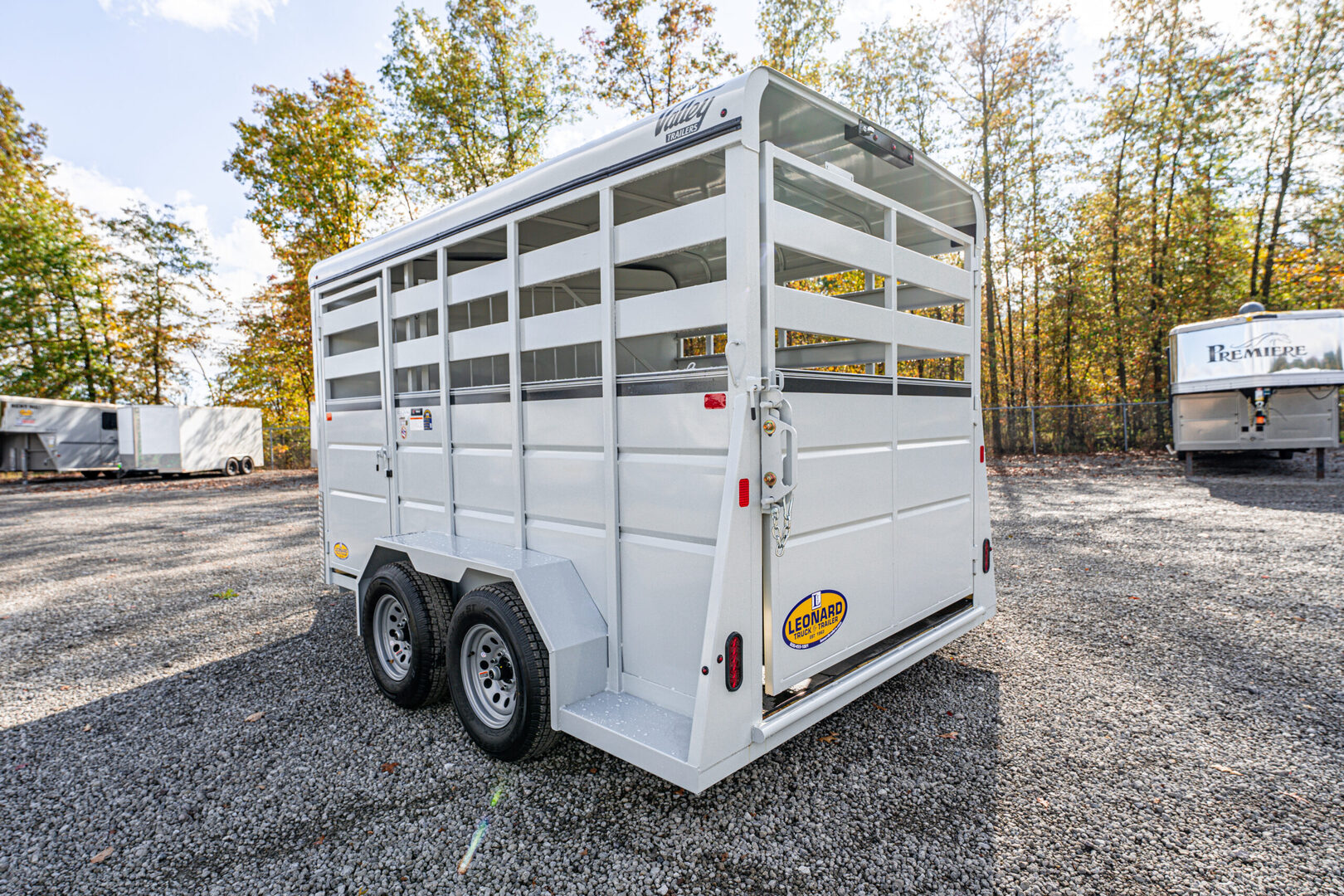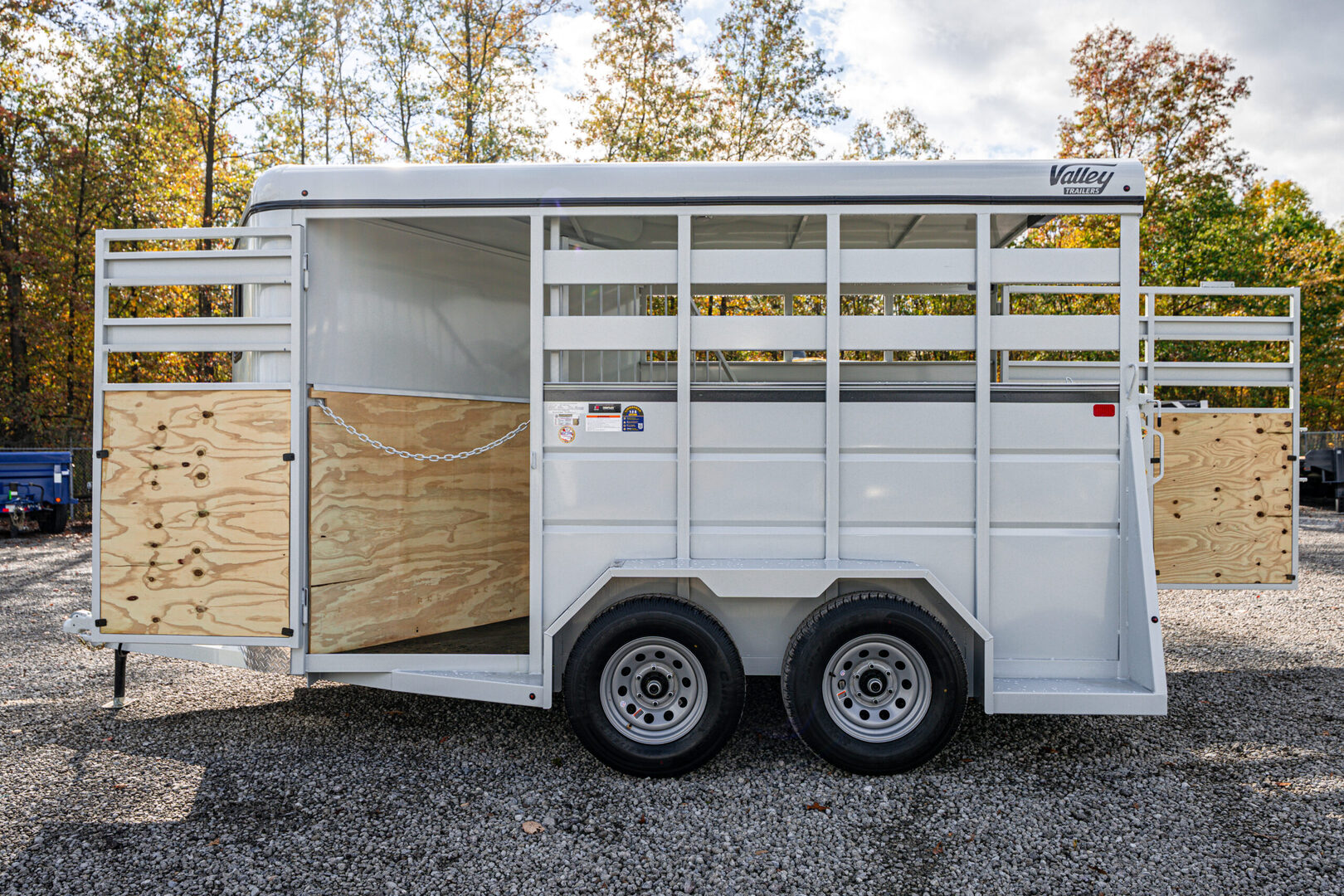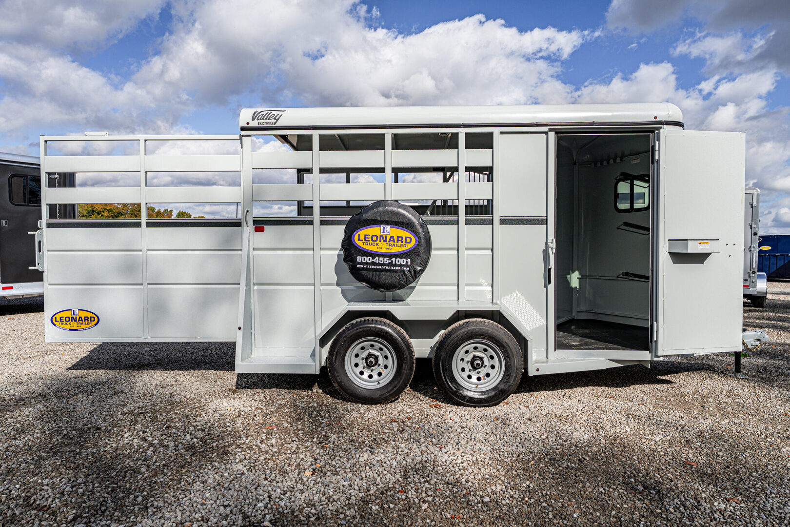 Stock# 44261 New 2026 Valley 2810 Bumper Pull Horse Trailer Built from the ground up to take on all kinds of abuse from rough roads, terrain, and restless livestock, Valley Trailers provide a high quality livestock trailer at a competitive price. Valley Stock trailers come with safety features installed throughout the the entire trailer; peace of mind for the owner and livestock. With many options and configurations available with the Valley Stock trailers, there are many possibilities. Model:2810 Warranty: 3yr- Structural 1yr-Components Trailer Specifications: Trailer Model: 2810 Trailer Type: Horse Hitch Type: Bumperpull Color: Silver Width: 6’-8” Length: 14’ Height: 7’ Coupler: 2-5/16” Ball Axle Size: 3,500 lb # of Axles: 2 Tire/Wheel Size: 225/75 R15D 6 Hole Silver Mod 655 Standard Features: Mats Woodlined Spare tire Saddle racks Brush box Bridle hooks Tie rings   We offer outstanding financing options, accept trades, and can arrange nationwide NO HASSLE delivery! Inquire today for more information! (888) 333-6613 **We believe these specifications to be accurate. Any discrepancies are unintentional. Please verify information with a sales associate prior to purchase.** Stock Number:44261