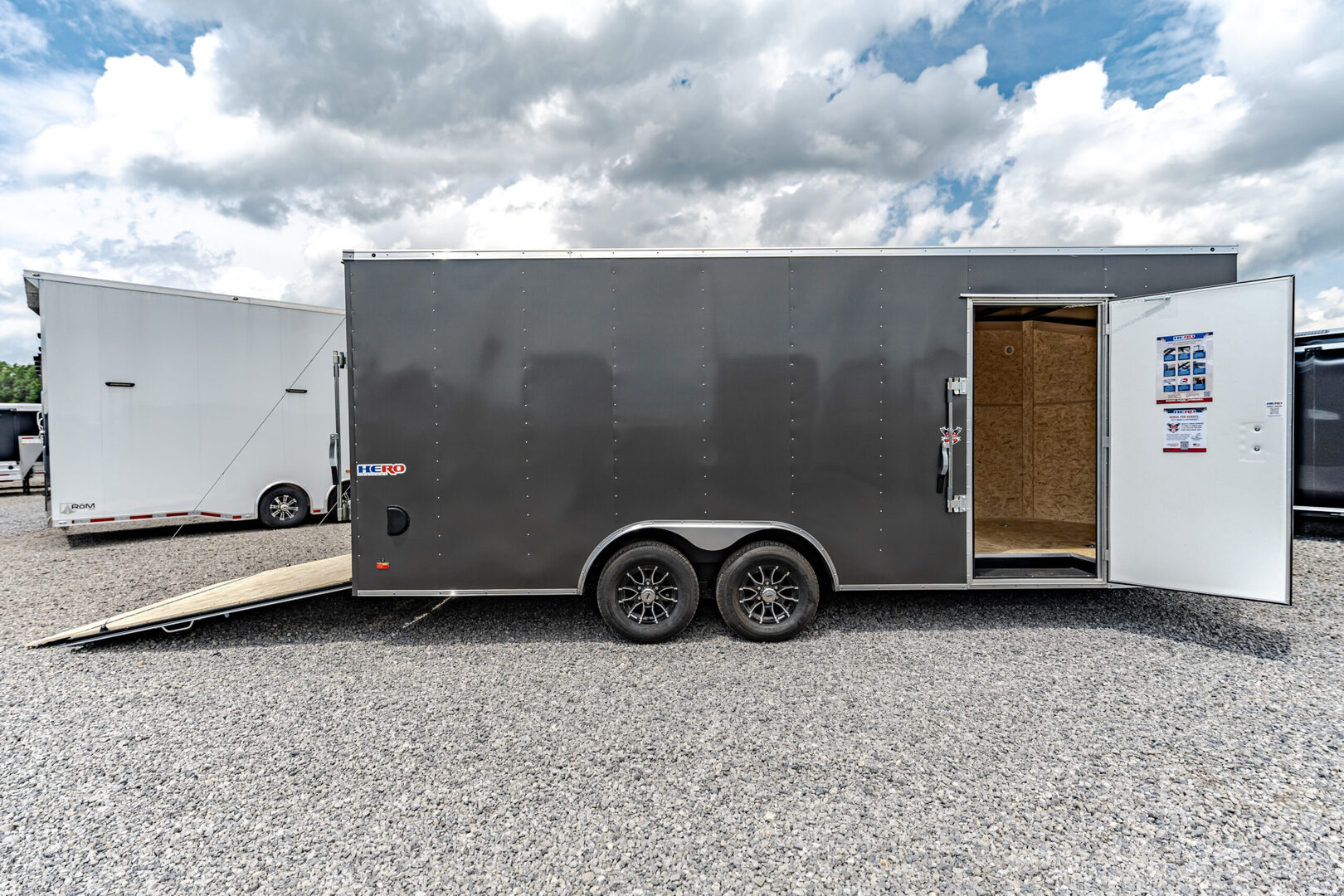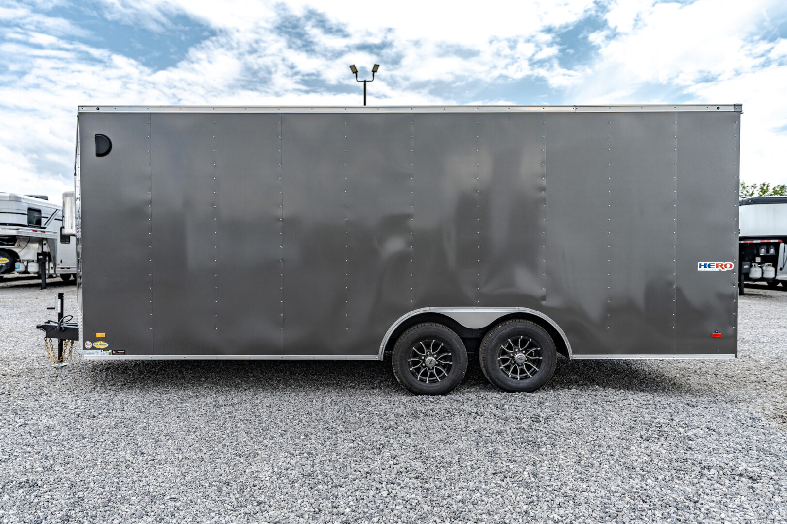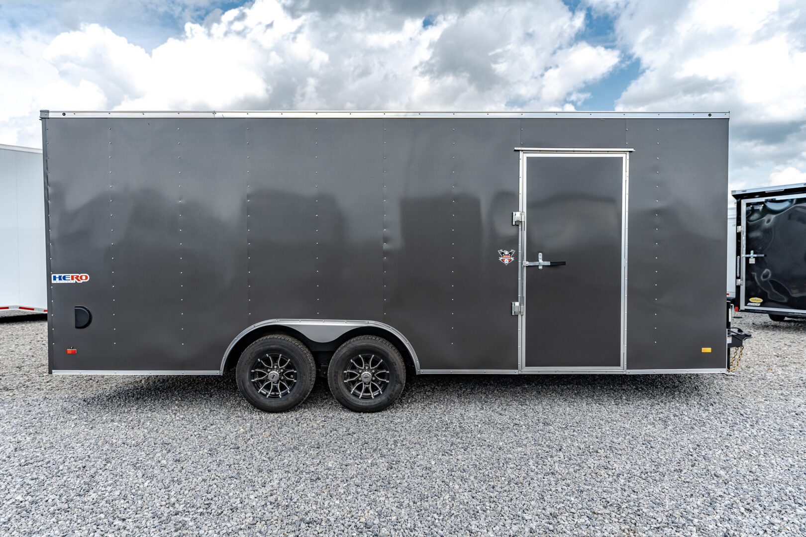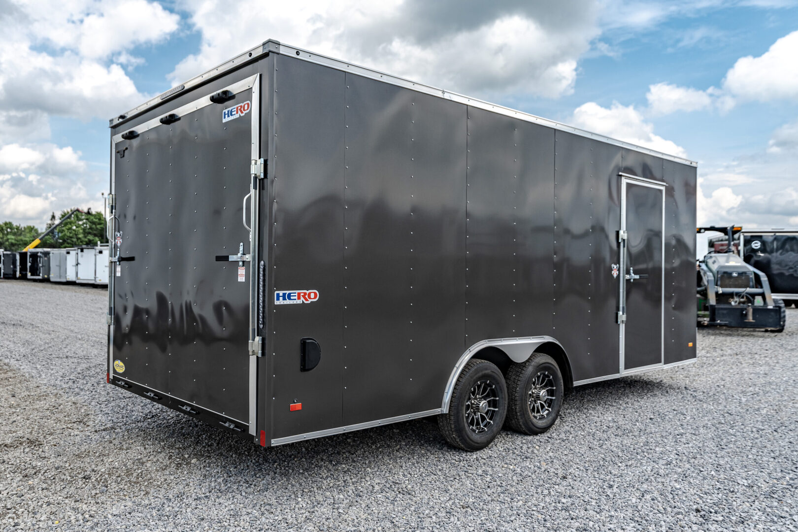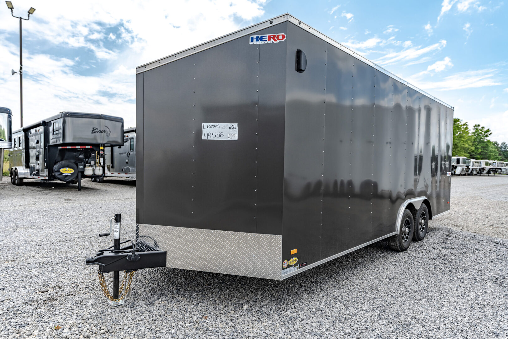 Stock# 44275 New 2025 Bravo HR8520TA3 Enclosed Cargo Trailer HERO TRAILERS deliver first class towing at an affordable price. Every Hero Trailer is designed and constructed to give you years of safe, secure and hassle-free towing. Quality features such as .030 aluminum exterior skin over tube wall posts and Dexter EZ ride suspension make for easy, reliable towing. HERO TRAILERS are built better, tow better and will be worth more at trade in time. Model: HR8520TA3 Warranty: 2 year  Trailer Chassis & Frame 5200# Tandem Drop Spring Axle GVWR Rated @ 9990# Electric Brakes 6” Tube Frame Cross Members @ 16” O.C. Tube Wall Posts @ 24” O.C. Tube Roof Members @ 24” O.C. 48” Triple Tube Tongue 2-5/16” Coupler – 14K Painted Tongue Jack with Sand Foot Tires, Roof & Exterior ST225/75R15/LRD 15” Radial Tires Aluminum Roof Gray Dove 030 Exterior Metal .030 Exterior Metal with 6” Screw Pattern Black Eagle Aluminum Wheels (SA3/TA3/Per Axle) 30” Slant Wedge V Nose (HR 7W or 8.5W) in lieu of standard 30” V Nose Lighting LED Strip Tail Lights – Clear Lens Bullet Style LED Clearance Lights Standard ID Light Bar at Rear Walls & Floor 3/8” Engineered Sidewalls 3/4” Engineered Flooring Ramp & Rear Heavy Duty Ramp Door with Flap 48” Beavertail (4) 5000# Recessed Floor D-Rings: (1) R/S & (1) C/S @ 21” Back & 2’ In (1) R/S & (1) C/S @ 19’6” Back & 2’ In Side Door 36” C/S Side Door with Barlock – 3’ Back No Flushlock Interior Features (2) Dome Lights Centered @ 4’ & 14’ Back (1) 12V Wall Switch @ C/S Door (1) Pair ABS Flow Thru Sidewall Vents: Front R/S High, Rear C/S Low Height Upgrade HR 6” Extra Height (7’ or 8.5’W Only) – LTF We offer outstanding financing options, accept trades, and can arrange nationwide NO HASSLE delivery! Inquire today for more information! (888) 333-6613 **We believe these specifications to be accurate. Any discrepancies are unintentional. Please verify information with a sales associate prior to purchase.** Stock Number:44275