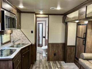 Trailer Details: * All Aluminum Construction * 8’ Width * 7’ 8” Interior Height * 30.5’ Floor Length * 38.5’ Overall Length * (2) 8000# Axles & Electric Brakes * 235/80R16G Tires, Gunmetal Aluminum Wheels, & Complete Spare * Stainless Steel Nose * Dual Hydraulic Jacks * 50 Amp Service Horse Area Details: * 40” Slant Stalls * Bottom Stall Divider * Mangers w/ Drop Down Feed Doors * Collapsible Rear Tack w/ Stackable Saddle Rack * 60/40 Rear Doors * Upgraded Hux Lighting Living Quarters: * 12’ SW Living Quarters * Sofa & Fridge in 9’ Slide-Out * Electric Fireplace * 24” Smart TV * Convection Microwave * Dual Stainless Steel Sink * Recessed Cooktop * Kitchen Area Pantry * Shower w/ Glass Doors & Sky-dome * Vanity w/ Stainless Steel Sink * Porceline Toilet * Queen Mattress in Bunk * Tank Heater on fresh water, gray & black Tanks * Black Tank Rinse Villa Décor Package: * Donghia Pebble Seating * El Paso Floor * Zilch Linen Walls * Apex Horizon Ceiling * Star Dunne Counter tops GVWR 16,000# EMPTY WEIGHT 11,314# Sale Price Does Not Include Tax, Registration Fee, License, Freight, & Document Fee. We do not take out of State Checks. No guarantee as to the accuracy of this document is expressed or implied.
