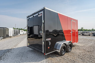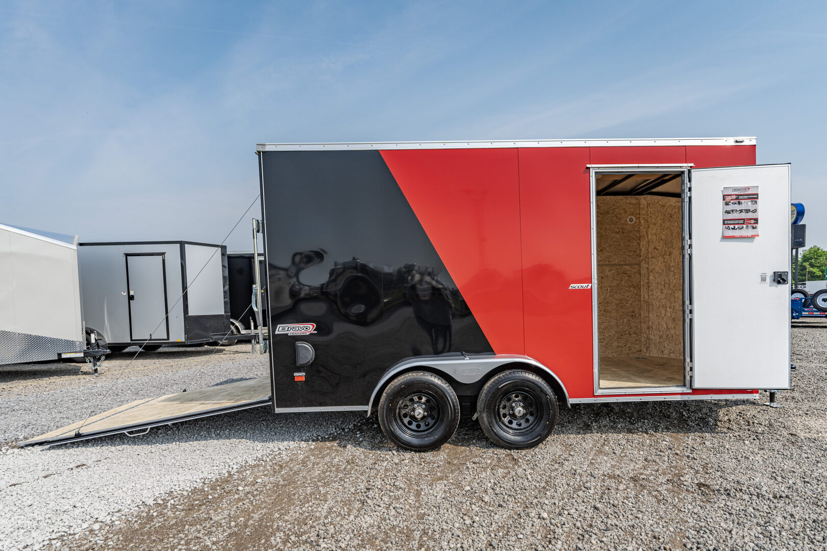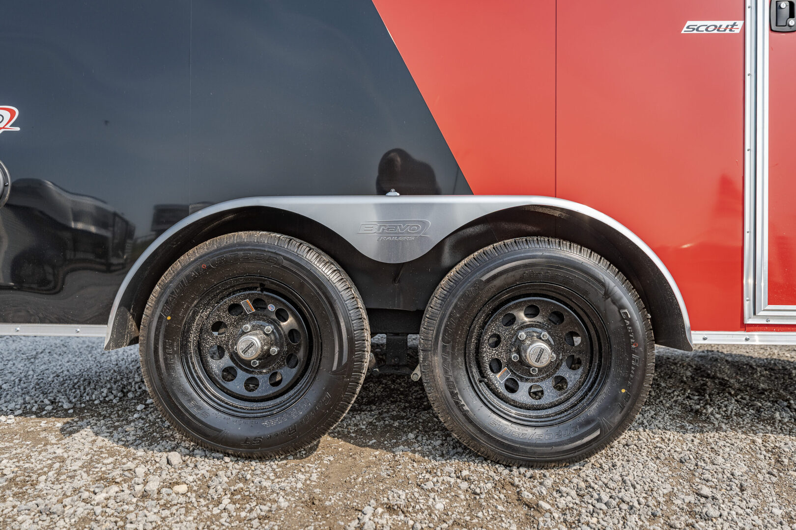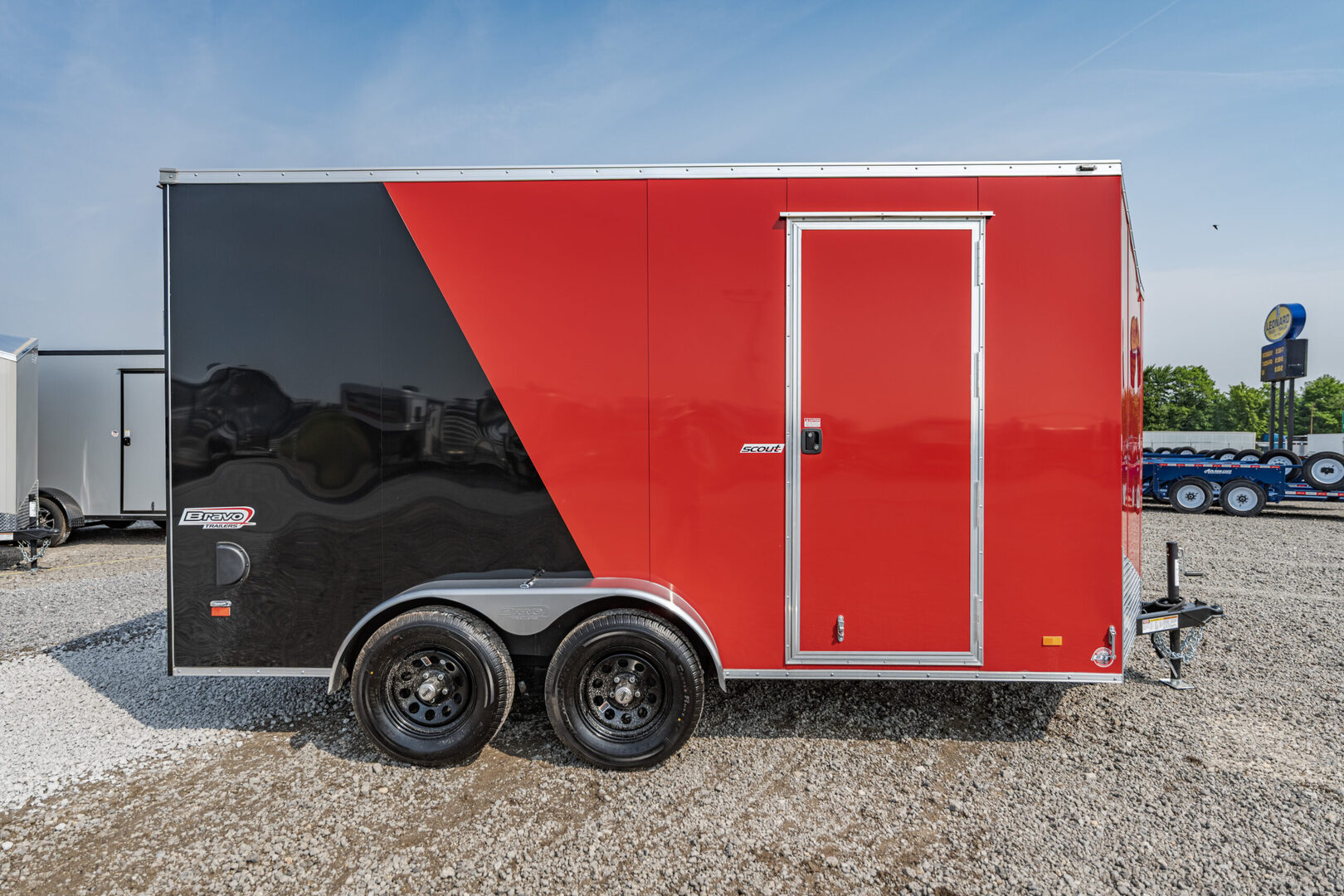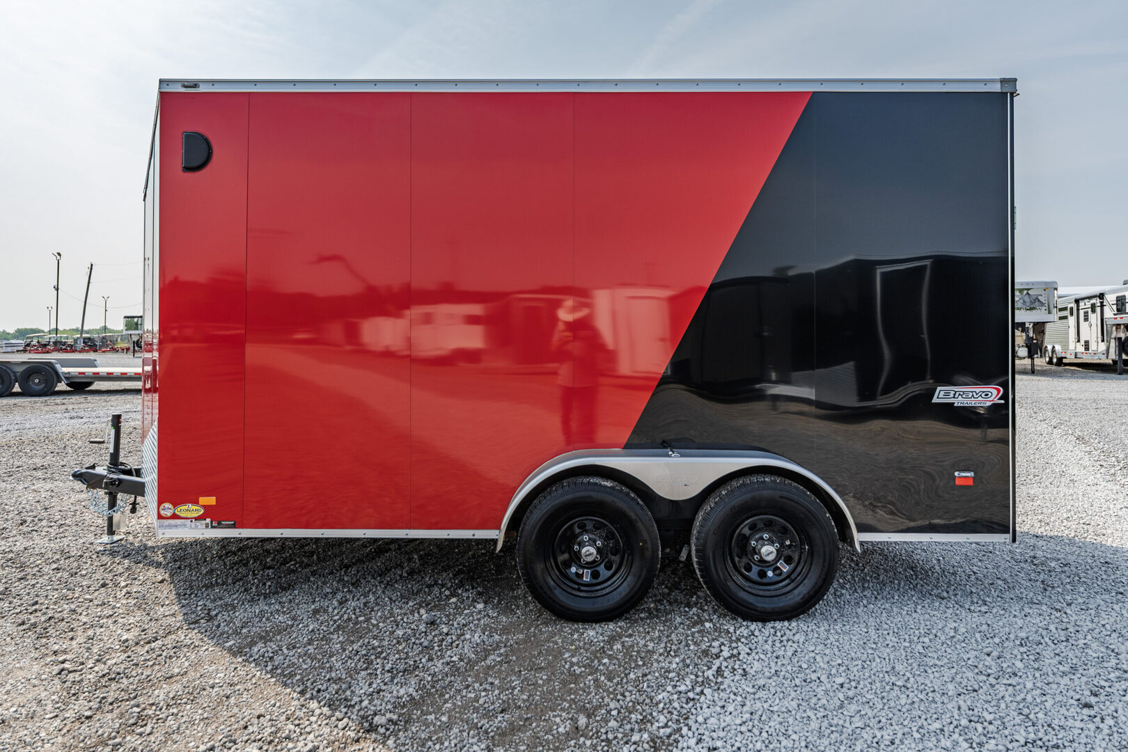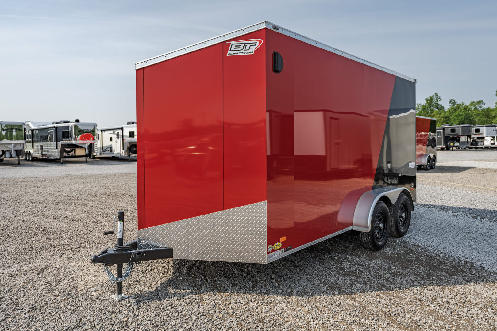 Stock# 44317 New 2025 Bravo SC714TA2 Enclosed Cargo Trailer  The Scout trailer may be Bravo’s entry-level trailer model, but it’s no “throw away” trailer. All Scout trailers are work ready and feature the Bravo “BIG 10 plus 5” commercial construction features. Scout is a great value in enclosed cargo trailer with sizes ranging from 5×8 to 8.5x24TA3 with a long list of options. If you’re in the market for an economical cargo trailer, yet built to stand up to years of use, Scout is for you! Model:SC714TA2 Warranty: 3yr-Limited Trailer Model: SC714TA2 – Scout Enclosed Trailer 3500# tandem drop spring axles Electric brakes No wheel wells 4” tube frame Cross members @ 16” O.C. Tube wall posts @ 16” O.C. Tube roof members @ 16” O.C. 2-5/16” coupler – 14K Painted tongue jack with sand foot ST205/75R15 LRC 15” radial tires Black mod wheels Aluminum roof Bonded .030 exterior sidewalls LED strip tail lights Clear lens LED exterior lighting LED license plate light 3/8” engineered sidewalls 3/4” engineered flooring Medium duty ramp door with flap Exterior LED rear header loading light 32” side door with flush lock & cast aluminum holdback (C/S @ 2’ back) (2) 12V LED dome lights @ 3’-4” & 10’ back (2) 12V wall switches (1) @ C/S door for dome lights (1) @ C/S rear for loading light (1) pair ABS flow-thru sidewall vents (front R/S high, rear C/S low) Exterior & Trim Upgrades 2-tone angled exterior (Front: Red, Rear: Black) 30” slant wedge V-nose (7W) ILO 30” V with 24” tapered stoneguard 6” extra height (LTF) to unit & doors Approx. interior height: 84” Side door height: 76” T (4) 5000# recessed floor D-rings (1 in each corner, 10” away from sidewalls) Appearance Package TA Additional Features (4) Stainless steel center caps (2) Chrome bezel for LED tail lights   We offer outstanding financing options, accept trades, and can arrange nationwide NO HASSLE delivery! Inquire today for more information! (888) 333-6613 **We believe these specifications to be accurate. Any discrepancies are unintentional. Please verify information with a sales associate prior to purchase.** Stock Number:44317