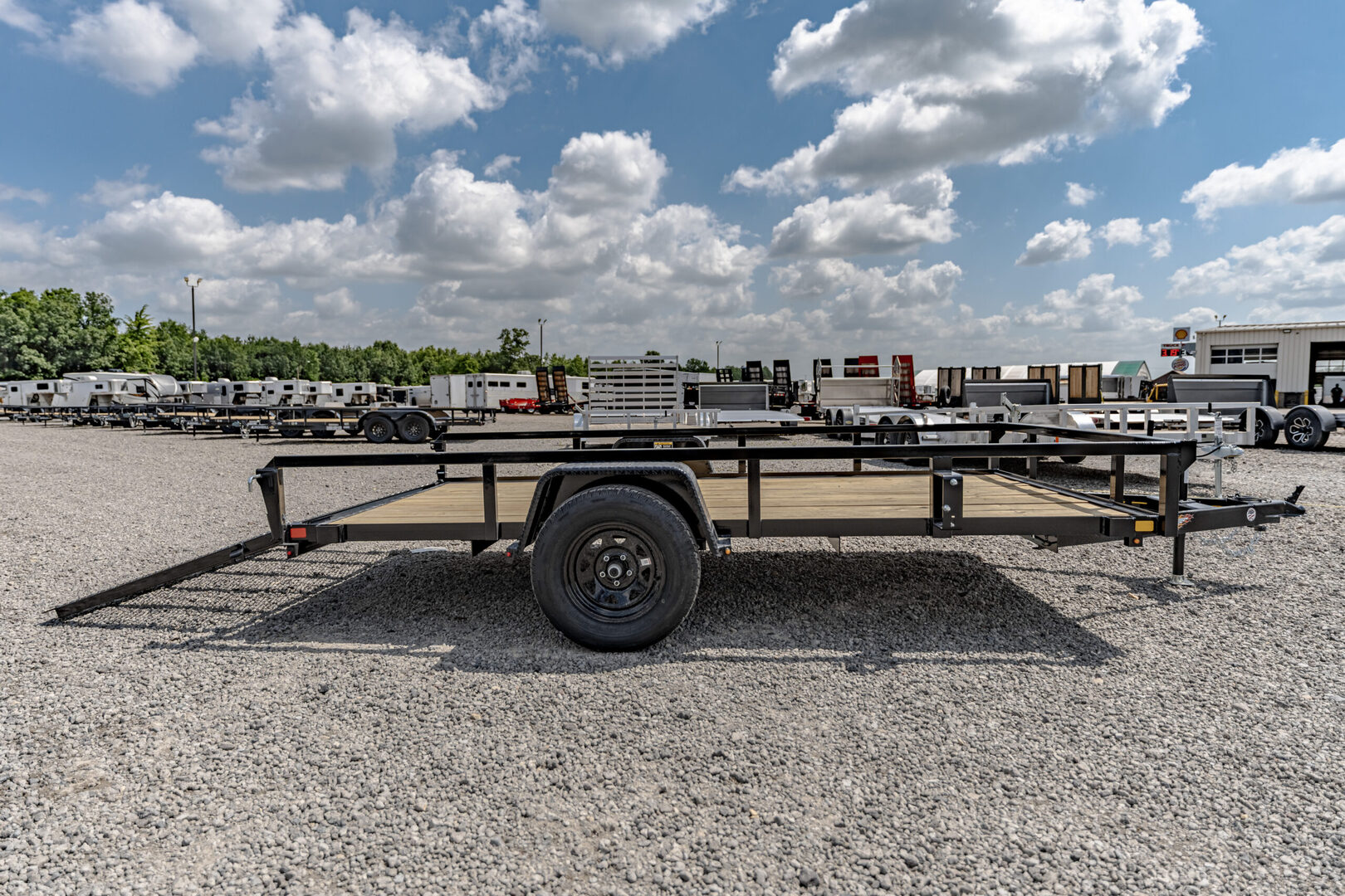 View Inventory: https://leonardtrailers.com/inventory/44327 Stock#47327 New 2025 H&H H7612RS-030 Utility Trailer  Strong and simple, the sturdy steel frame of the Rail Side Utility trailer is fully powder coated for years of reliable service. LED lighting, enclosed sealed wiring harness and plug, spare mount, and EZ lube hubs are all standard features.  The Rail Side Utility trailer is available in several single and tandem axle configurations.  Its durable design makes this our most popular trailer. Model:H7612RS-030 Warranty: 3yr: Limited Standard Features Per Trailer: Frame: 3” x 2” x 3/16” Steel Angle Crossmembers: 3” x 2” x 3/16” Steel Angle Tongue: 4” Steel Channel Coupler: 2” A-Frame Safety Chains: DOT Compliant Tongue Jack: 2K Set-Back Top Rail: 2” x 2” Steel Tube Uprights: 2” x 1 1/2” Steel Tube Ramp(s): 50” Fold-Flat, Spring-Assist with Grab Handle Fenders: Radius Tread Plate Axle: 3500 lb. Spring Idler Hubs: Easy Lube Tires: ST205/75R15C 6-PR Wheels: 15”, 5-Hole Steel Exterior Finish: Industrial Grade Polymer Finish Decking: 2” Pressure Treated Pine Board Retainers Tie Downs: Stake Pockets Exterior Storage: Spare Tire Carrier Connector Plug: Flat 4-pin Wiring: Enclosed Sealed Wiring Harness Exterior Lights: Full LED, DOT Compliant Selected Options Per Trailer: Color: Black   We offer outstanding financing options, accept trades, and can arrange nationwide NO HASSLE delivery! Inquire today for more information! (888) 333-6613 **We believe these specifications to be accurate. Any discrepancies are unintentional. Please verify information with a sales associate prior to purchase.** Stock Number:44327