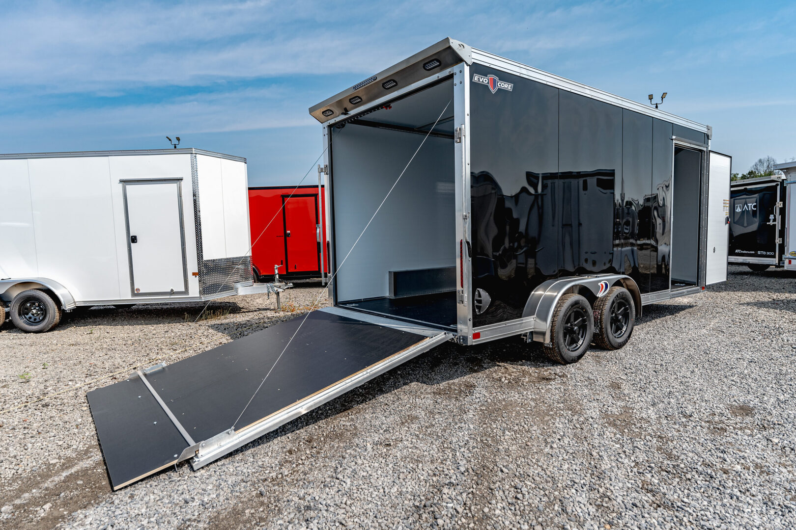 View Inventory: https://leonardtrailers.com/inventory/44388 Stock# 44388  New 2026 Ideal Cargo IDEV7.516TA2 SZ Enclosed Cargo Trailer The Sportzone line includes all the popular options sought by motor sports enthusiasts. Each trailer is equipped with a single side door and a rear ramp door for easy loading. This durable and reliable trailer is perfect for transporting ATVs, snowmobiles, side-by-sides, motocross bikes, and much more!   Model:IDEV7.516TA2 Warranty: Lifetime-Corrosion of the Structure 10yr-Structural Failure 5yr-Water Infiltration 3yr-Green Edge Bio-composite Panel Specs: EVOCOR-7.5_16TA2 +12” EVOCORE HYBRIDE Additional Height of 12” (For ”SA” and ”TA” Trailer) Color: Black Sport Zone for TA2 32” Composite Door Flush Lock Only 1200 Ramp Door Duraflap for Ramp Door (1200 lbs & 4500 lbs) Spring Leaf Axle With Floor Crossmember at 16” Aluminum Hardware Plastic Vent 7-Pin Connection Protector LED Loading Light EVO 3.0 Two Three-Way Switches (12 Volts) Four D-Ring Anchors (5000 lbs Capacity) Option Requiring a Factory Plan Jack 7000 lbs Gutter Above the Door Indoor Light LED - 40” Band (Instead of Standard, Listed Twice) Standard Installation Tongue and Door Covered in Checkerplate 24” High Stoneguard Rear Spoiler with Four White LED Lights with Switch 15” Mags Wheel (TA2) #125   We offer outstanding financing options, accept trades, and can arrange nationwide NO HASSLE delivery! Inquire today for more information! (888) 333-6613 **We believe these specifications to be accurate. Any discrepancies are unintentional. Please verify information with a sales associate prior to purchase.** Stock Number:44388
