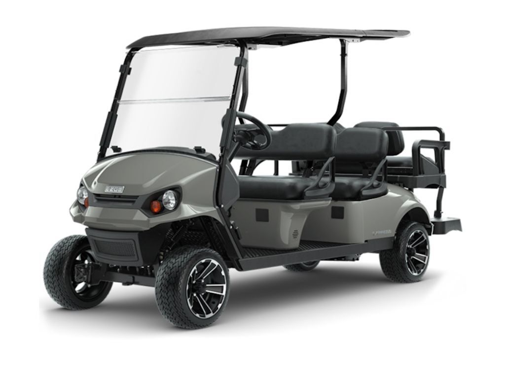 Connecticut Trailers features the following options for this E-Z-GO Golf Car: • Adventure Package • Suntop Extension Canopy • Split Windshield 2025 E-Z-Go Express 6 Gas SlateTake the Long Way HomeTake the whole family or a bunch of friends along for the ride in the 6-passenger Express 6 — and expect to turn a few heads. You and your passengers will enjoy extended legroom, optional enhanced front suspension, and a bold, eye-catching design. Choose between our efficient 13.5-HP closed-loop EFI gas powertrain or the maintenance-free ELiTE™ lithium drivetrain powered by Samsung SDI technology.Features may include:Rear Seat with Enclosed StorageBring more along for the ride. With convenient, enclosed storage, the rear-facing seat provides both comfort and functionality.Premium Dashboard With Extra StorageExperience a stylish interior with a premium golf cart dashboard — featuring versatile cup holders and more functional storage.