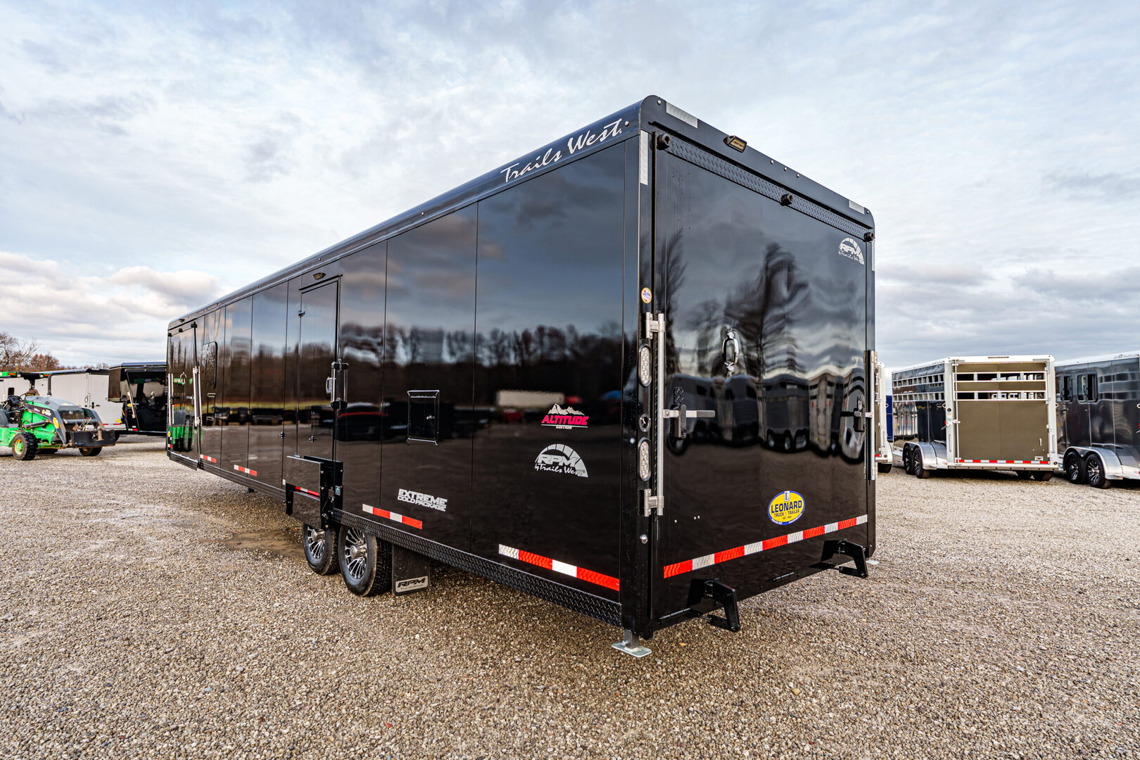 View Inventory: https://leonardtrailers.com/inventory/44474 Stock #44474 2026 Trails West RPM – Altitude Package Elevate Your Adventure Introducing the Altitude Package for the RPM by Trails West – engineered for riders who demand premium features, advanced comfort, and total convenience. Whether you’re gearing up for the day or winding down after an epic ride, this trailer transforms every moment into a warm, functional, and organized experience. With superior heating, smart storage, and cutting-edge upgrades, the Altitude Package ensures your gear and sleds stay protected, dry, and adventure-ready—no matter the conditions. Standard Altitude Package Features Forced Air Furnace w/ Track Melt Ducted Heat Package Stereo w/ Kicker Audio System Extra Shelf w/ Coat Hooks & USB Ports (N/A on 20 ft. BP) Fold-Down Benches Converter w/ 110V Outlets (2) Deep-Cycle Batteries (2) Enclosed Cabinets Traction Blocks Special Edition Graphics Ski Glides on Ramps & Cargo Area Interior Mirror Porch Light Lower Light Package Paper Towel Rack & Cabinet Onesie Rack Hitch Light (Gooseneck only) Optional Added Features 14” x 14” Roof Vent with High-Powered Fan Additional 24” x 30” Window Upgraded 7,000 lb. Axles Extreme Cold Package Heat Ducted to 2nd Helmet Cabinet Pre-Wire for A/C 320-Watt Solar System Stainless Steel Front Nose Cap Tunnel Sling Workbench Ride Prepared. Ride in Comfort. Ride Trails West.   We offer outstanding financing options, accept trades, and can arrange nationwide NO HASSLE delivery! Inquire today for more information! (888) 333-6613 **We believe these specifications to be accurate. Any discrepancies are unintentional. Please verify information with a sales associate prior to purchase.** Stock Number:44474