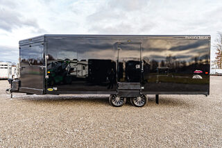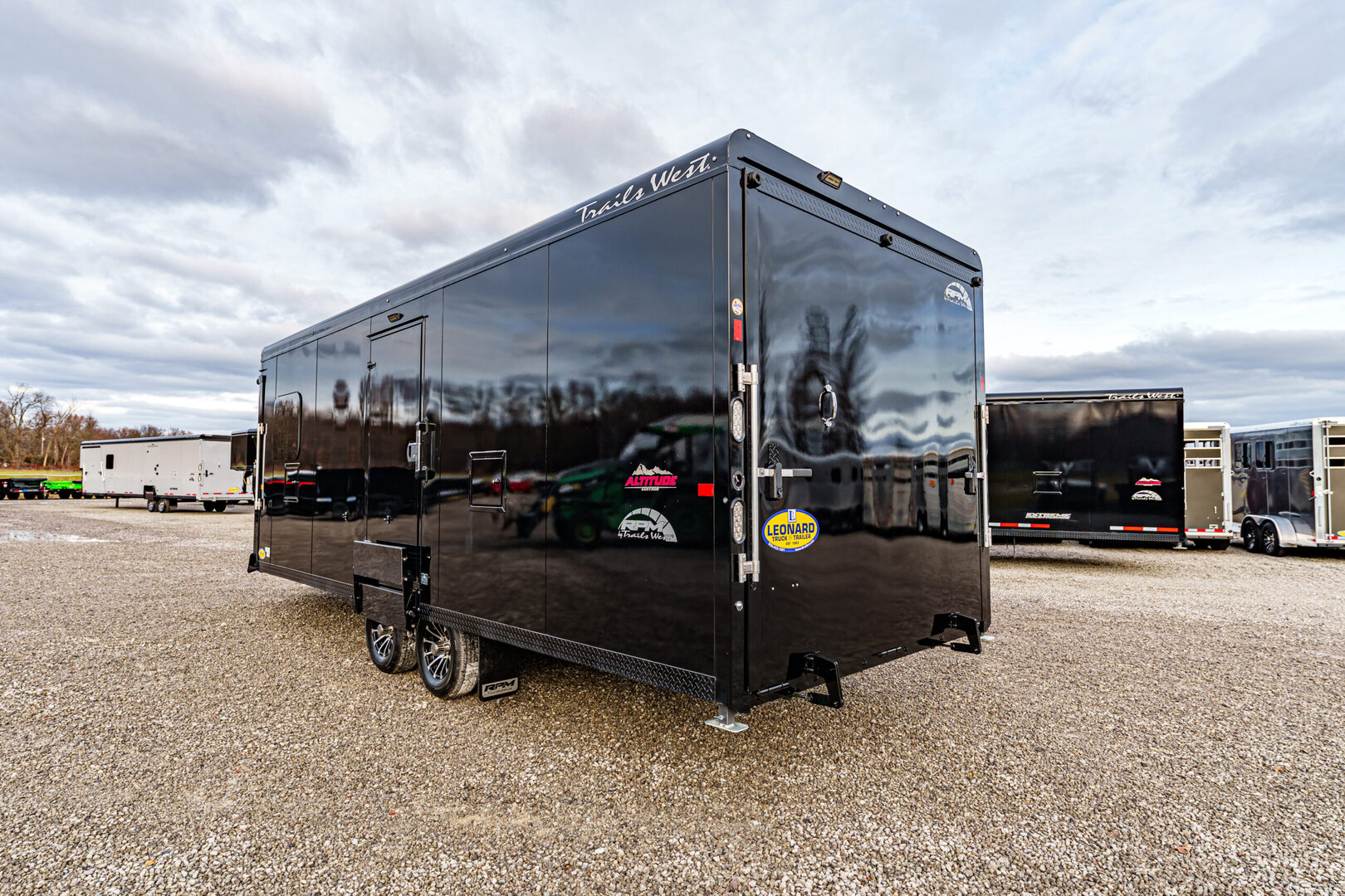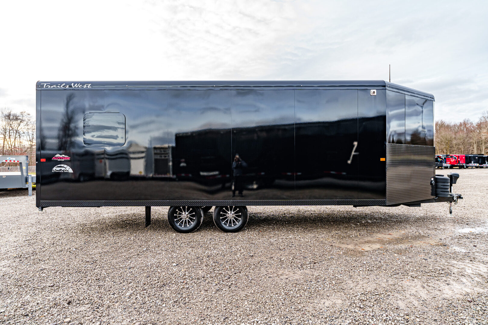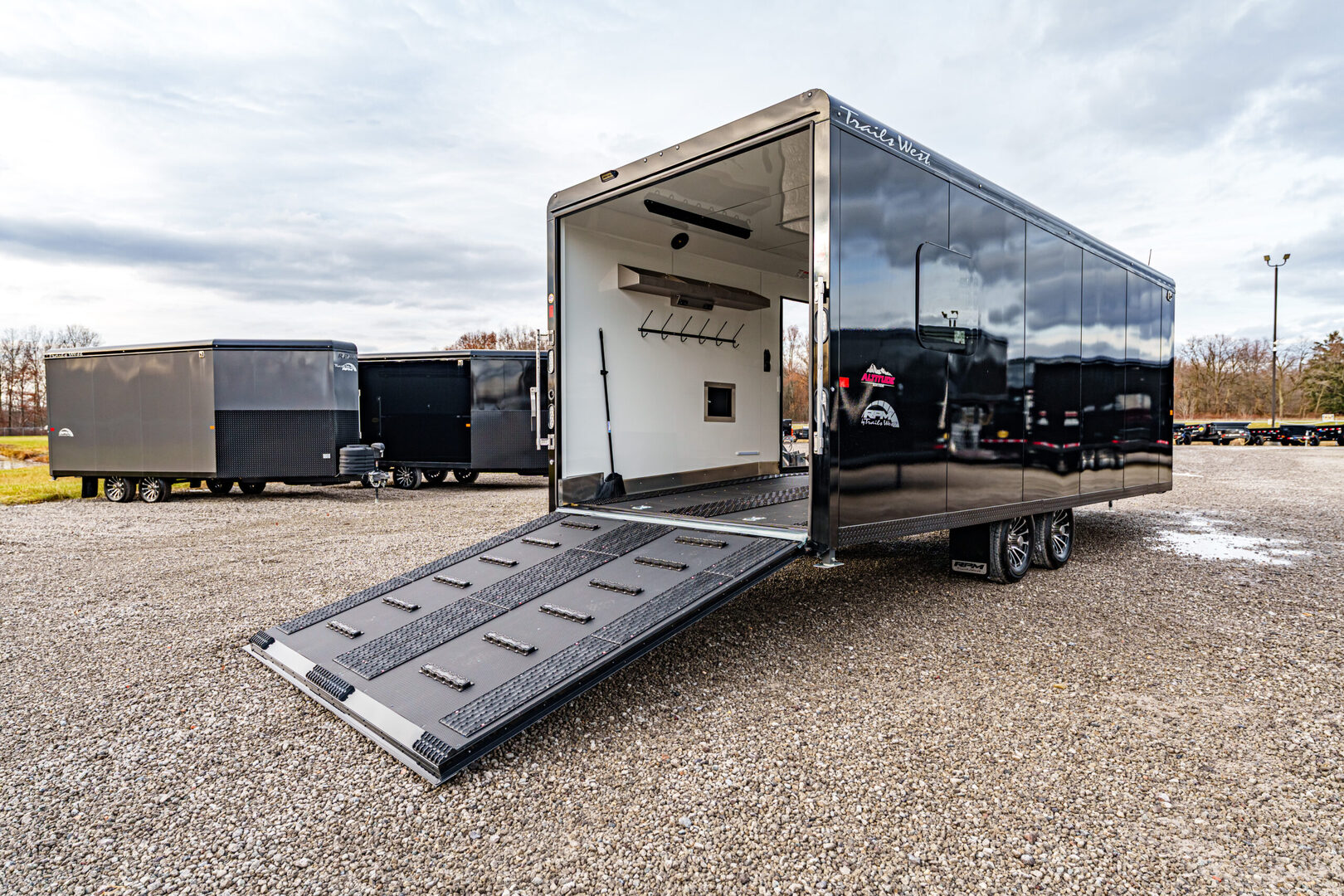 View Inventory: https://leonardtrailers.com/inventory/44469 Stock #44469 New 2026 Trails West 28’ Bumper Pull RPM Snowmobile Trailer – Altitude Package Elevate your snowmobiling adventures with the Altitude Package, exclusive to the RPM by Trails West series. Designed for riders who demand premium comfort, performance, and convenience, this package delivers everything you need to make every trip unforgettable. Step inside and experience a warm, functional space perfect for gearing up before your ride or winding down afterward. The Altitude Package turns cold mornings and post-ride gear changes into a comfortable experience—because your time off the sled should be just as enjoyable as the ride itself. When it’s time to stow your gear, Trails West has you covered. With specialized storage and drying areas, your equipment stays protected, organized, and ready for your next run. Don’t settle for ordinary—take your snowmobiling to new heights with the Altitude Package RPM from Trails West. Ride prepared. Ride in comfort. Ride Trails West. Key Features & Added Options: Pre-wired for air conditioner – ready for climate control when you need it 320-watt solar system – stay powered up wherever your adventure takes you Stainless steel front nose cap – adds both style and durability High-powered fan (in lieu of standard vent) – improved airflow and ventilation Tunnel sling – secure and efficient sled transport system Additional 24” x 30” window – more natural light and visibility inside Folding work bench – convenient space for gear prep or maintenance Insulated and heated interior for all-weather comfort LED interior and exterior lighting for superior visibility Spacious layout designed for easy loading and unloading Durable Trails West construction built to handle winter’s toughest conditions Why Choose Trails West RPM? The RPM Series from Trails West is engineered for serious snowmobilers who expect more from their trailer. Every detail—from the heavy-duty frame and insulated walls to the thoughtfully designed interiors—is crafted for performance, comfort, and reliability. With the Altitude Package, you’re not just buying a trailer—you’re investing in the ultimate mobile basecamp for your winter adventures. We offer outstanding financing options, accept trades, and can arrange nationwide NO HASSLE delivery! Inquire today for more information! (888) 333-6613 We believe these specifications to be accurate. Any discrepancies are unintentional. Please verify information with a sales associate prior to purchase. Stock Number:44469