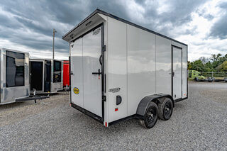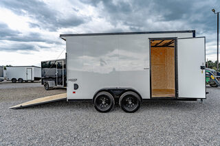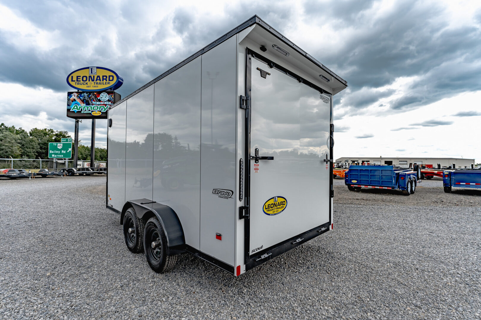 Stock# 44440 New 2025 Bravo SC714TA2 POLYCORE Enclosed  Trailer The Scout trailer may be Bravo’s entry-level trailer model, but it’s no “throw away” trailer. All Scout trailers are work ready and feature the Bravo “BIG 10 plus 5” commercial construction features. Scout is a great value in enclosed cargo trailer with sizes ranging from 5×8 to 8.5x24TA3 with a long list of options. If you’re in the market for an economical cargo trailer, yet built to stand up to years of use, Scout is for you! Model: SC714TA2 POLYCORE Warranty: 3yr- Limted Scout Enclosed Trailer – Model SC714TA2 Chassis & Frame 3500# Tandem Drop Spring Axles Electric Brakes 4” Tube Frame No Wheel Wells Crossmembers @ 16” O.C. Tube Wall Posts @ 16” O.C. Tube Roof Members @ 16” O.C. 2-5/16” Coupler – 14K Painted Tongue Jack w/ Sand Foot Tires & Wheels ST205/75R15/LRC 15” Radial Tires Black Mod Wheels Body & Roof Aluminum Roof 3/8” Engineered Sidewalls 3/4” Engineered Flooring VHB Fastenerless White .080 Hardbody Exterior Metal (SC, SSAC only) .030 Metal (Black) – Cap the Nose, Wedge to Body .030 Metal (White) – Rear Corner Posts Doors & Access Med Duty Ramp Door w/ Flap Old Style Rear Center Clearance Light 32” Side Door w/ Flushlock & Cast Alum Holdback Ramp Door Drip Rail & Rear Barlocks w/ Hardware Grab Handle for Ramp Door Upgrades & Packages 6” Extra Height – .080 Hardbody (Interior Height ~84”) Scout Wing 8” Roof Extension – 90 Degree 5000# Recessed Floor D-Rings (1 in each corner, 10” from sidewalls) 30” Slant Wedge V Nose (7W) w/ 24” Tapered Stoneguard Midnight Edition Package (5’, 6’, 7’ W SC): 24” Stoneguard Small ”J” Rail for Vertical Edges Small ”J” Rail across Top of Stoneguard (2) Blacked Out Fenders (both sides) Stainless Center Caps 3.16” Bottom Trim Top Rail 2-1/2” w/ Lip (both sides & rear) Small ”J” Rail across Rear Big ”J” for Ramp Trim Trim Screws Drip Rail for Ramp Door & Side Door We offer outstanding financing options, accept trades, and can arrange nationwide NO HASSLE delivery! Inquire today for more information! (888) 333-6613 **We believe these specifications to be accurate. Any discrepancies are unintentional. Please verify information with a sales associate prior to purchase.** Stock Number:44484