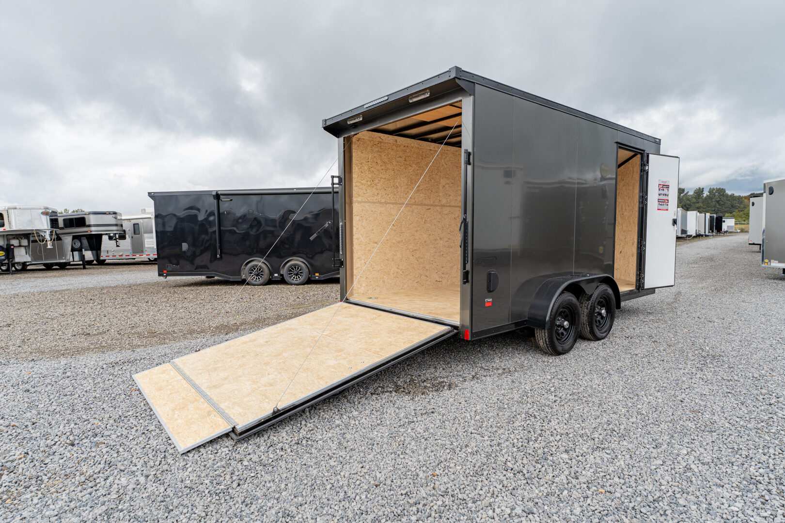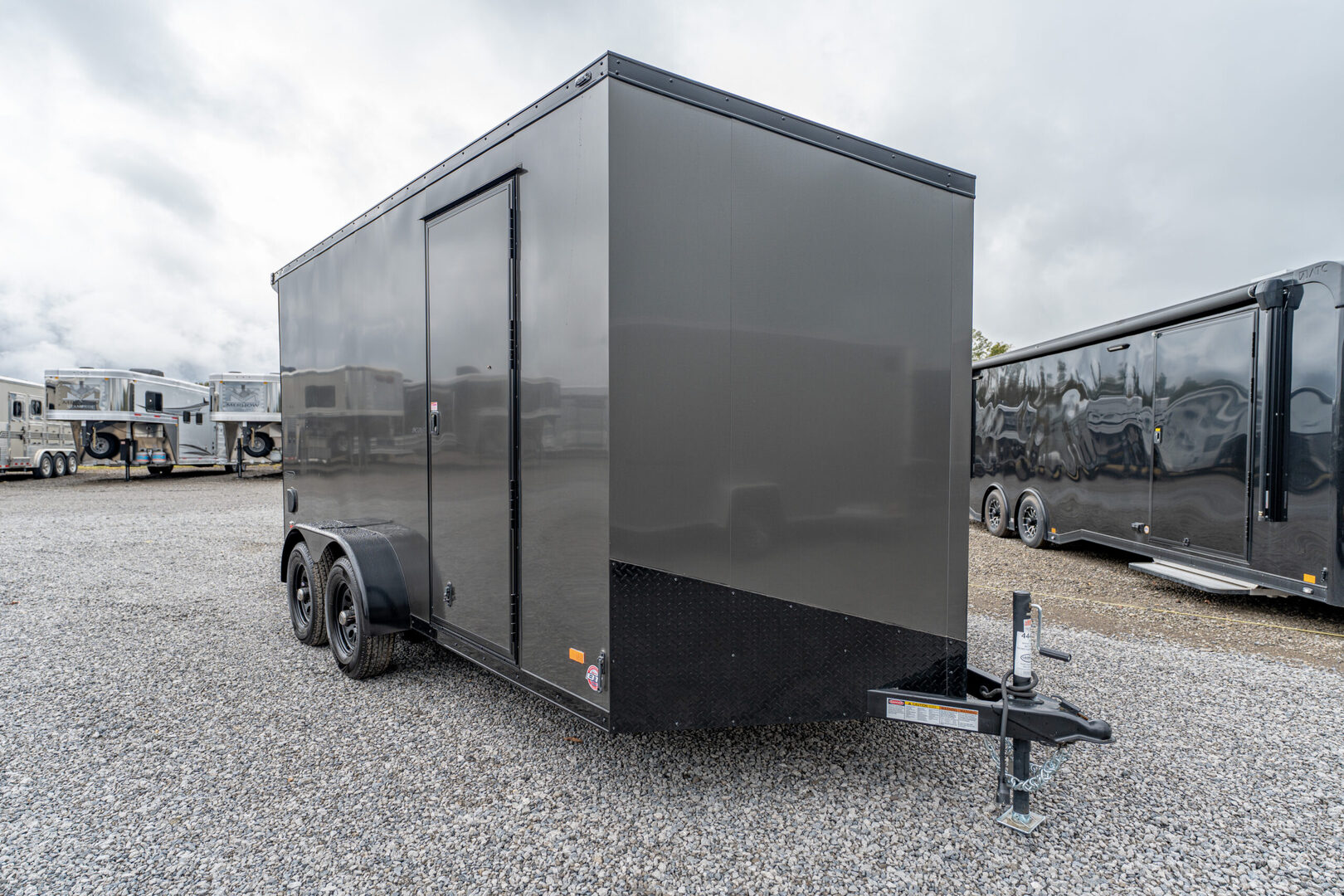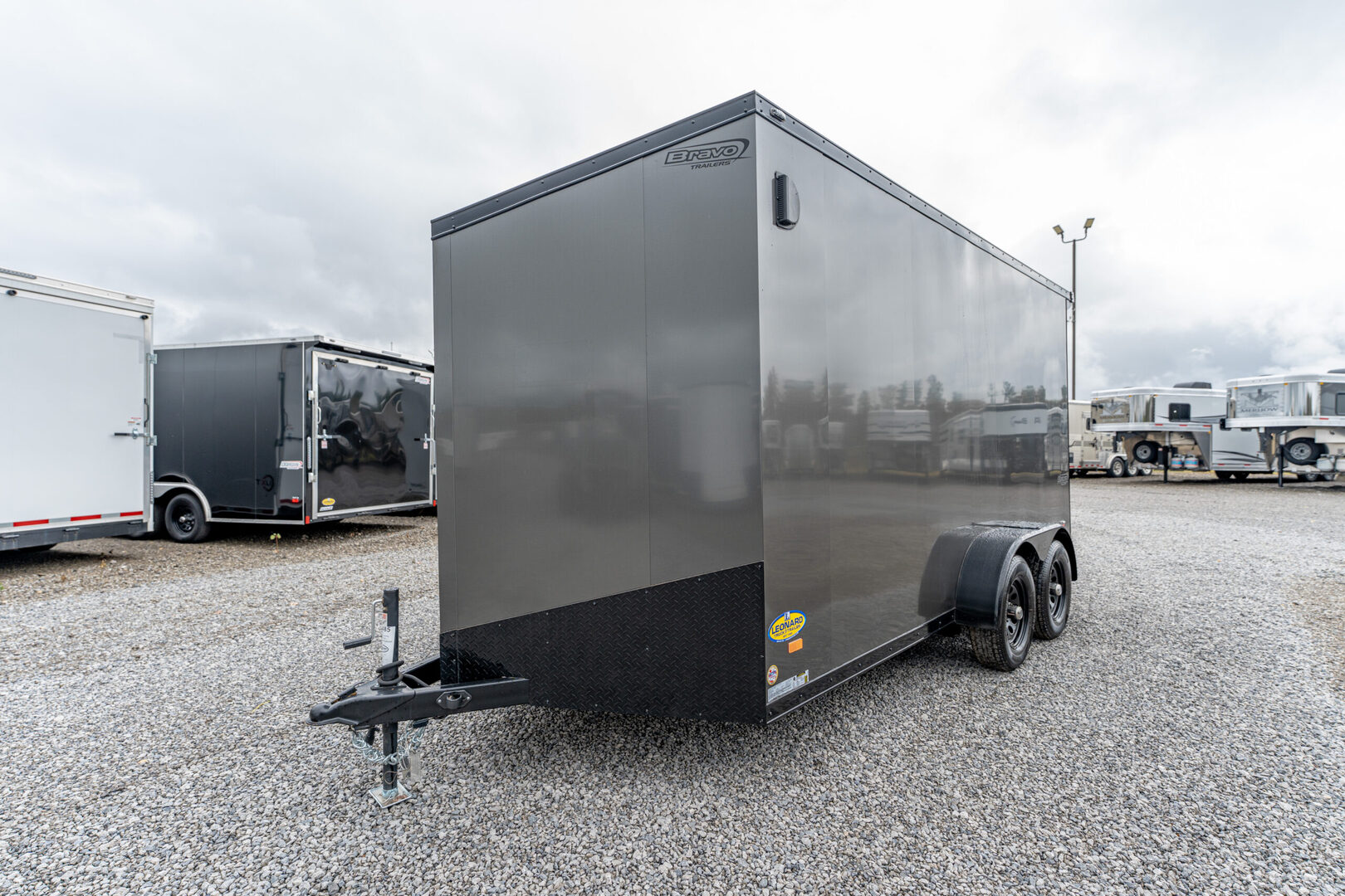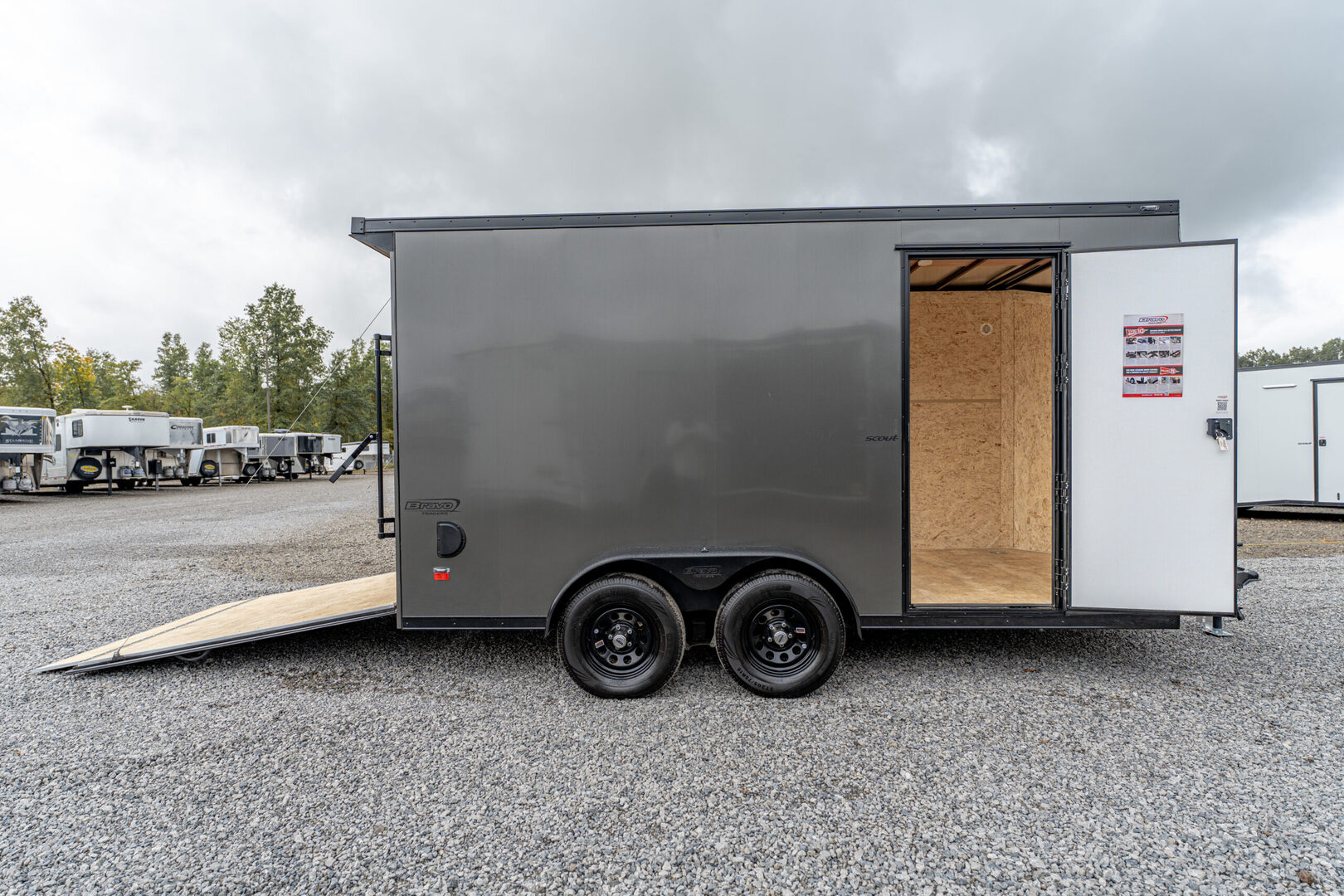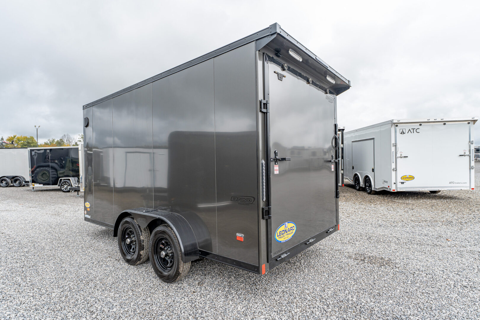 Stock# 44485 New 2025 Bravo SC714TA2  Enclosed  Trailer The Scout trailer may be Bravo’s entry-level trailer model, but it’s no “throw away” trailer. All Scout trailers are work ready and feature the Bravo “BIG 10 plus 5” commercial construction features. Scout is a great value in enclosed cargo trailer with sizes ranging from 5×8 to 8.5x24TA3 with a long list of options. If you’re in the market for an economical cargo trailer, yet built to stand up to years of use, Scout is for you! Model: SC714TA2  Warranty: 3yr- Limted Scout Enclosed Trailer – Model SC714TA2 Chassis & Frame 3500# tandem drop spring axles Electric brakes 4” tube frame Cross members @ 16” O.C. Tube wall posts @ 16” O.C. Tube roof members @ 16” O.C. 2-5/16” coupler – 14K Painted tongue jack w/ sand foot No wheel wells Wheels & Tires ST205/75R15/LRC 15” radial tires Black mod wheels Spare tire not listed Exterior Aluminum roof Bonded .030 exterior sidewalls Charcoal metallic .030 exterior metal 30” slant wedge V nose (7W) w/ 24” tapered stoneguard (ILO 30” V) 6” extra height (LTF) to unit & doors Approx. interior height: 84” Side door height: 76”T Scout wing 8” roof extension – 90° degree  Interior 3/8” engineered sidewalls 3/4” engineered flooring Medium duty ramp door w/ flap 32” side door w/ flushlock & cast alum holdback (C/S @ 2’ back)  Ventilation (1) Pair ABS flow-thru sidewall vents Front R/S high Rear C/S low Tie-Downs (4) 5000# recessed floor D-rings (1 in each corner, 10” away from sidewalls)   We offer outstanding financing options, accept trades, and can arrange nationwide NO HASSLE delivery! Inquire today for more information! (888) 333-6613 **We believe these specifications to be accurate. Any discrepancies are unintentional. Please verify information with a sales associate prior to purchase.** Stock Number:44485