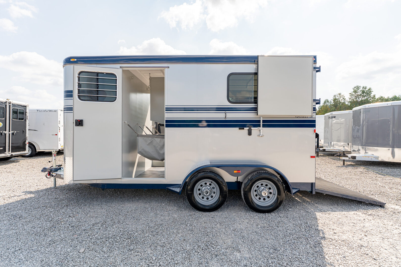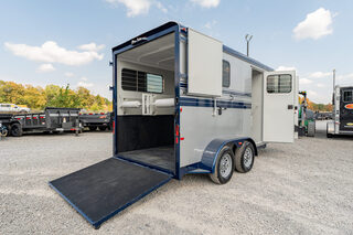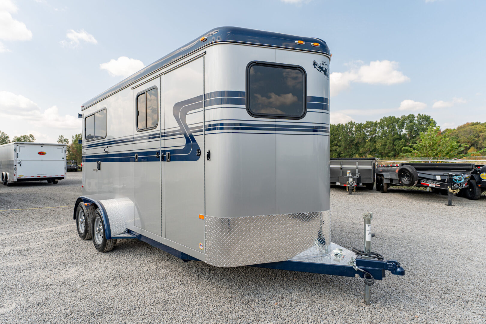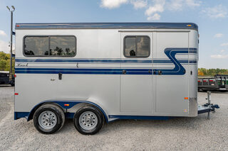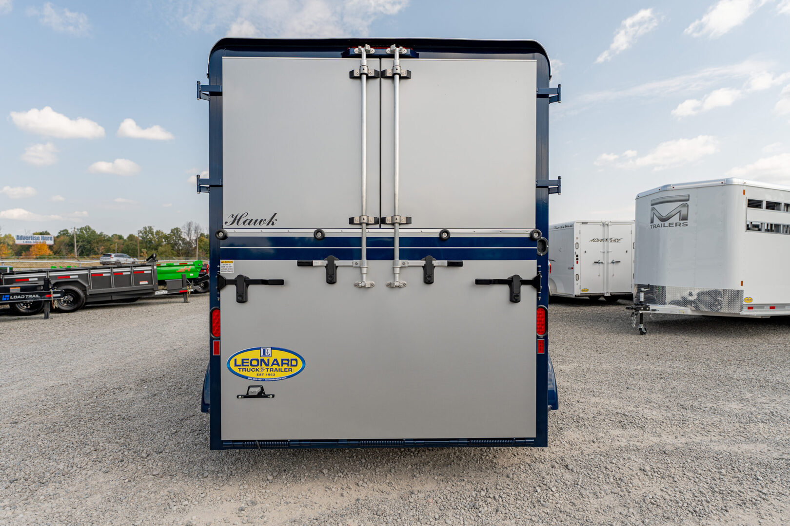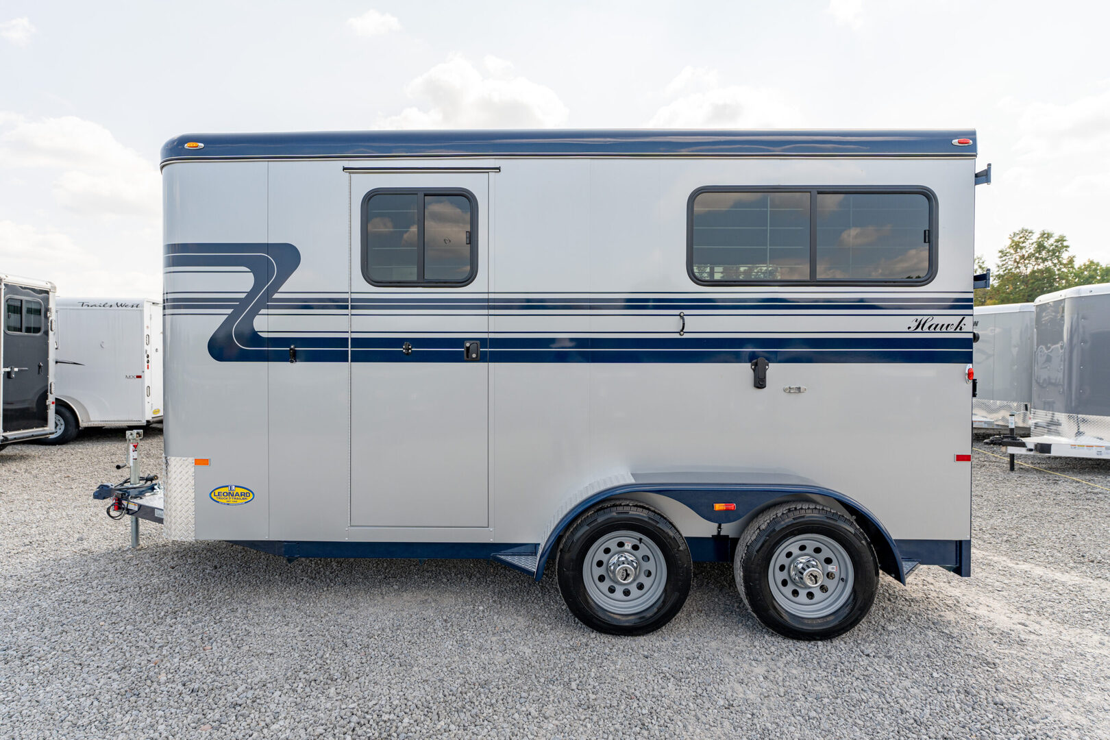 Stock# 44498 New 2026 Hawk 132C Bumper Pull Horse Trailer Safety and comfort of the horse are our first concerns when building our trailers. Hawk uses its greatest asset, our employees, to provide valuable insight. With many years of experience in owning, training, showing, and hauling horses they help in the commitment to continuous product improvement.  Model: 132C Warranty: 7yr- Structural Trailer Specifications: Overall Length: 18’ Width: 80” Stall Length: 7’6” Inside Height: 7’8” Coupler: 2-5/16” wedge lock coupler Jack: Sidewind Jack w/ sandfoot in coupler Axle Capacity: 7000# w/ 4-wheel electric brakes Tires: ST20575R15(C) Radial Silver rims, Elite Aluminum rims Spare Tire: Rim mounted inside, no cover Front Wedge: w/ 20x24 windows Windows: 20x24 in walk-through door 20x24 in storm doors Sidewall windows 20x51 (1) each side Doors & Pads: Storm doors & 2 points Carpet on floor in dress area Saddle racks Bridle hook set bolt on (6) aluminum Door tie backs on all doors Exterior Features: Diamond plate on steps & tongue Diamond plate on fenders (half), full length (Elite only) Diamond plate on nose (18” high) Rubberline sidewalls Interior Features: Divider & sidewall pads Rear header pad Floor mats (5/8”) Roof vents Brush tray on dress door Square feed bag (1) per stall Interior head ties (3) per stall Exterior head ties (1) per horse Lighting & Electrical: Fuse block Dome lights D.O.T. lighting     We offer outstanding financing options, accept trades, and can arrange nationwide NO HASSLE delivery! Inquire today for more information! (888) 333-6613 **We believe these specifications to be accurate. Any discrepancies are unintentional. Please verify information with a sales associate prior to purchase.** Stock Number:44498