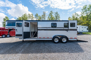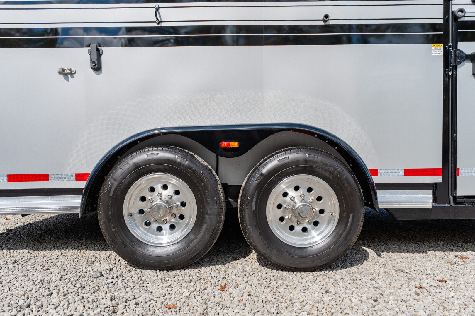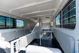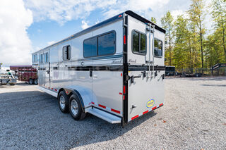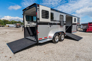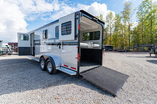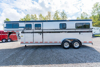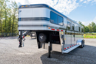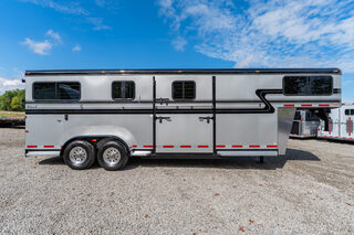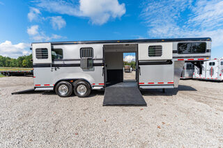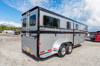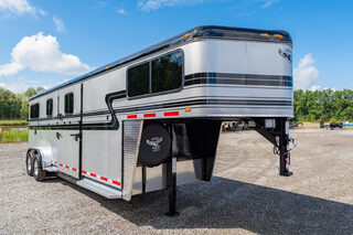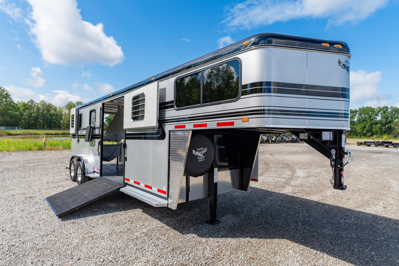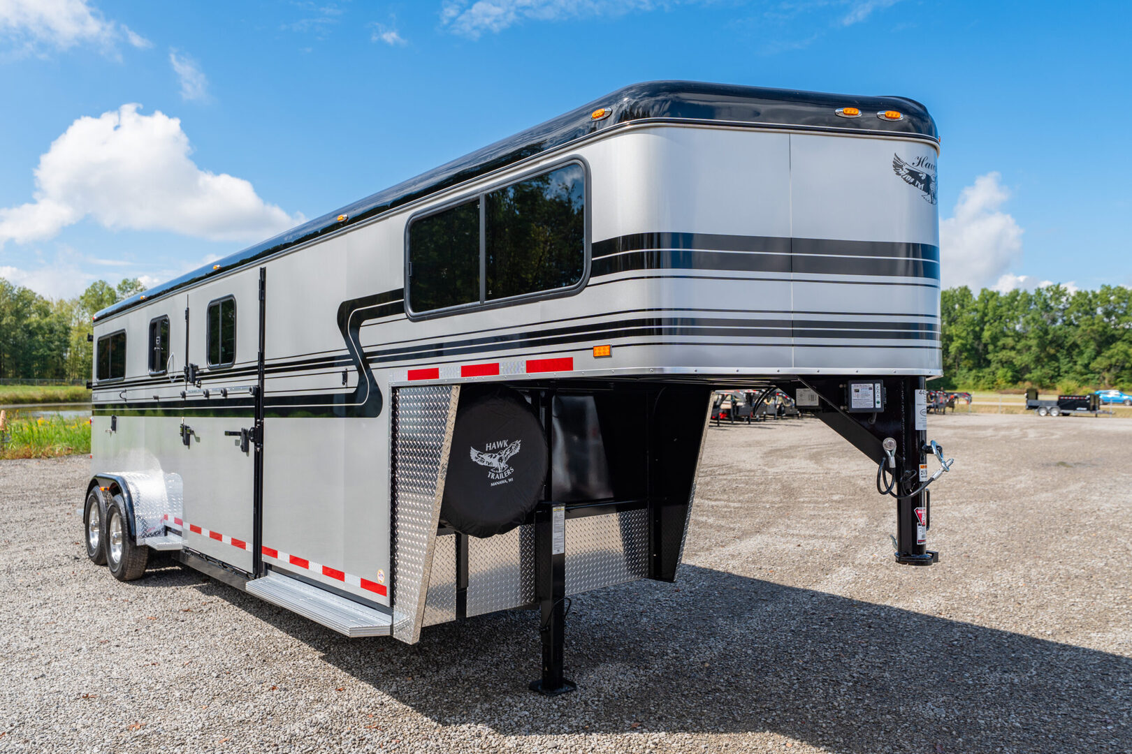 Stock# 44504 New 2026 Hawk 135E Gooseneck Horse Trailer Safety and comfort of the horse are our first concerns when building our trailers. Hawk uses its greatest asset, our employees, to provide valuable insight. With many years of experience in owning, training, showing, and hauling horses they help in the commitment to continuous product improvement.  Model: 135E Warranty: 7yr- Structural Trailer Specifications Overall Length: 29’6” Width: 80” Stall Length: 7’ Inside Height: 7’6” Coupler Options: 2-5/16” Fulton Gooseneck coupler w/cable release (Optional) Jack: Single speed single leg jack Axle Capacity: 12,000 lb with 4-wheel electric brakes Tires/Rims: ST23580R16(E) Radial, Silver rims, Elite Aluminum rims Spare Tire: Tire & rim with vinyl cover Front Box Stall: 8’ front box stall includes divider (twin swing w/mesh top) Interior Finish: Carpet on bulkhead wall & jacksheet wall (Optional/Standard depending on model) Equipment: Saddle racks (3) Bridle hook set bolt-on (6) aluminum Door tie backs (all doors) Exterior: Aluminum running boards (Optional/Standard depending on model) Diamond plate on fenders & steps (Elite only full fenders) Diamond plate 18” under gooseneck Diamond plate on GN gussets (Optional/Standard depending on model) Interior Stall Area: Rubber-lined rear stall area Rubber-lined front box stall (incl. divider & side) (Optional/Standard depending on model) Breast/butt bar pads Divider & sidewall pads (1”) Rear header pad Floor mats 5/8” Storage & Accessories: Brush tray on dress door Square feed bag (1 per stall, 2 total)   We offer outstanding financing options, accept trades, and can arrange nationwide NO HASSLE delivery! Inquire today for more information! (888) 333-6613 **We believe these specifications to be accurate. Any discrepancies are unintentional. Please verify information with a sales associate prior to purchase.** Stock Number:44504