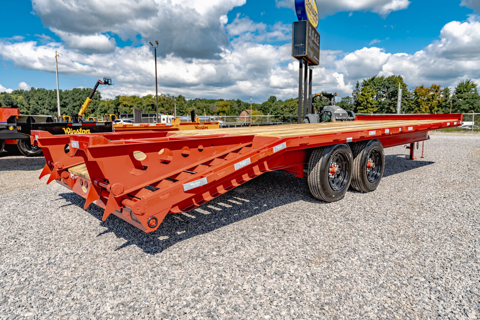 Stock# 44553 New 2026 Winston AP20825EC Equipment Bumper Pull Trailer  The 20 to 22.5 Ton ProSeries Dual Tandem Trailers are for Dump Trucks with dozers, excavators, loaders, and other heavy equipment. These trailers also feature 4 I-Beam construction combining A992 G-50 High Strength Main beams and Side Rails for a second-to-none, high-strength trailer. ABS air brakes provide plenty of stopping power for professional contractors. Paver Trailer Ramp options are available in a 20 ton trailer or 22.5 ton trailer for paving equipment. Low maintenance and rugged reliability makes for the Ultimate Tag Trailer. Model:AP20825EC Warranty: 1yr: Limited 8 Ton Tandem Custom Series Trailer Dimensions & Build 20’ + 5’ + 5’ spring assist flat ramps 102” wide Rubrails with stake pockets Self-cleaning inserts Brakes, Tires & Lighting Electric brakes 215/75R17.5H tires on single wheels LED lights Wheels & Color Black wheels Color: Red with black decals   We offer outstanding financing options, accept trades, and can arrange nationwide NO HASSLE delivery! Inquire today for more information! (888) 333-6613 **We believe these specifications to be accurate. Any discrepancies are unintentional. Please verify information with a sales associate prior to purchase.** Stock Number:44553