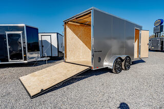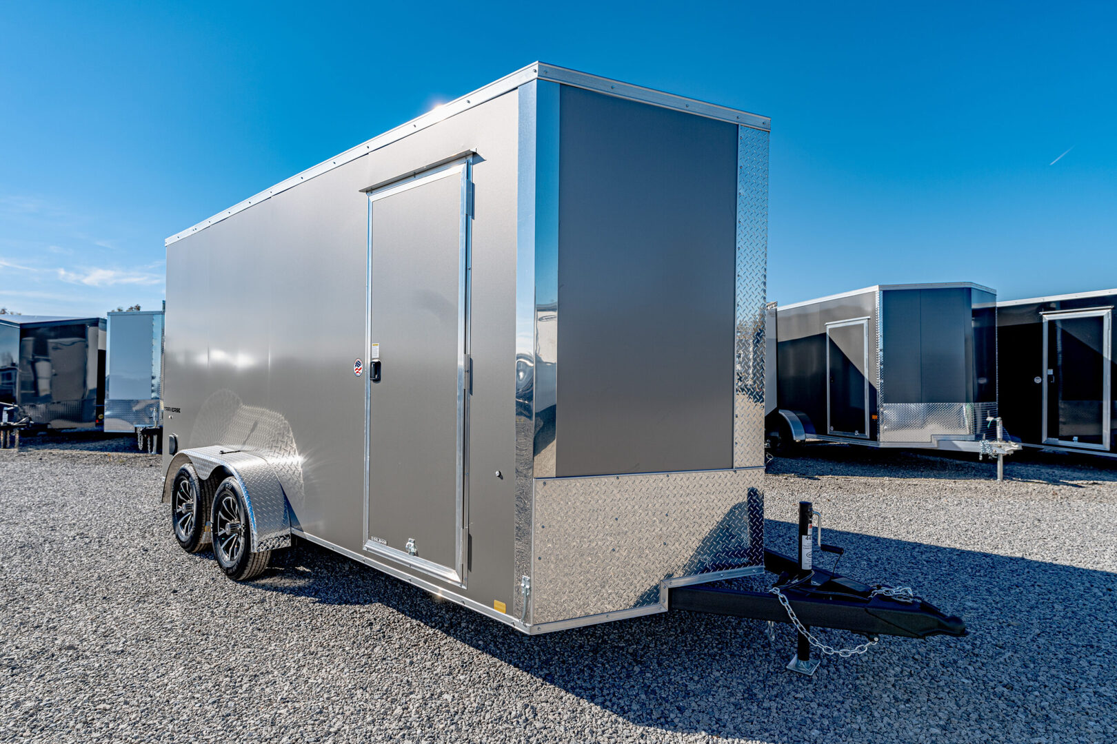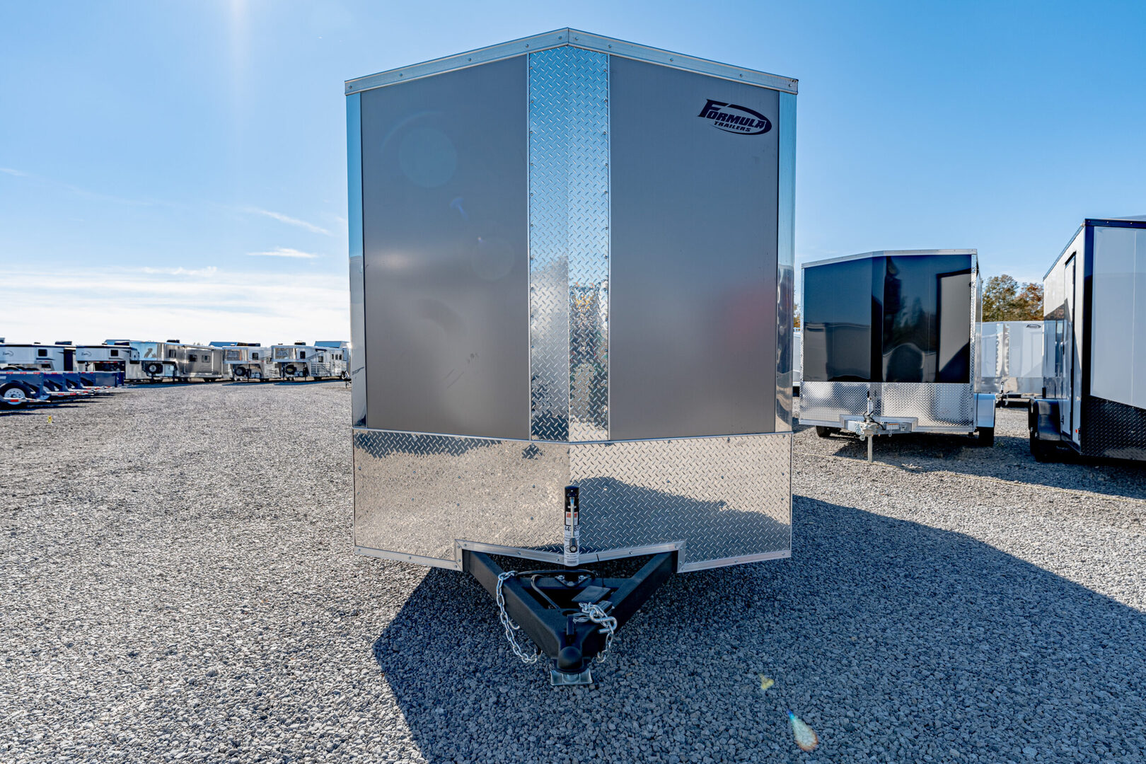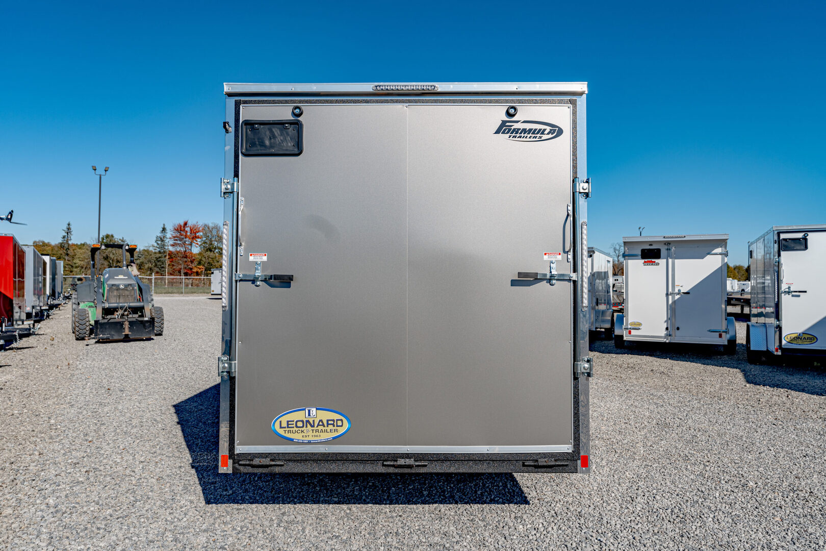 View Inventory: https://leonardtrailers.com/inventory/44585 Stock# 44585 New 2026 Formula F8416TVSV-070 POLY Enclosed Trailer Model: F8416TVSV-070 POLY Warranty: 3yr-Limited Standard Features Per Trailer Frame: 4” x 2” Steel Tube Crossmembers: Formed Steel, 24” On-Center Tongue: 4” x 2” Steel Tube Coupler: 2-5/16” A-Frame Safety Chains: DOT Compliant Tongue Jack: 2K Coupler Mounted Wall Studs: Steel Tube, 24” On-Center Roof Bows: Steel Tube, 24” On-Center Front Profile: V-Nose Ramp(s): 2500 lb. with Assist Side Door: 32” Wide Flush Lock, Wire Holdback Axle & Running Gear Axles: (2) 3500 lb. Drop Spring Brake Hubs: Easy Lube Breakaway: Battery, Switch, and Lanyard Tires: ST205/75R15C 6-PR Fenders: Aluminum Treadplate Exterior Exterior Finish: .030” Aluminum Exterior Trim: 1.5” Bottom Extrusion, 2.7” Top Extrusion Stone Guard: 24” ATP Roof: Flat Top Seamless Aluminum Vents: Sidewall Airflow Undercoating: Automotive Protective Coating(s): Textured Polyurea on all Exposed Steel Exterior Fastening: Color Matching Screws on Seams Exterior Lights: Full LED, DOT Compliant Interior Interior Walls: Engineered Wood Ceiling: Lauan Strip Flooring: 3/4” Engineered Wood Interior Lights: (1) LED Dome Light, 12V Electrical Switches: (1) Dome Light, 12V Connector Plug: Round 7-pin Blade  Upgrades & Options Setback Jack Upgrade: 2K Wheel Upgrade: Black Aluminum Wheel Assembly โ€“ ST205/75R15, 5 Lug Height Upgrade: Additional 6” Extra Height (84” Interior Height) Color Option: Composite Silver We offer outstanding financing options, accept trades, and can arrange nationwide NO HASSLE delivery! Inquire today for more information! (888) 333-6613 **We believe these specifications to be accurate. Any discrepancies are unintentional. Please verify information with a sales associate prior to purchase.**< Stock Number:44585