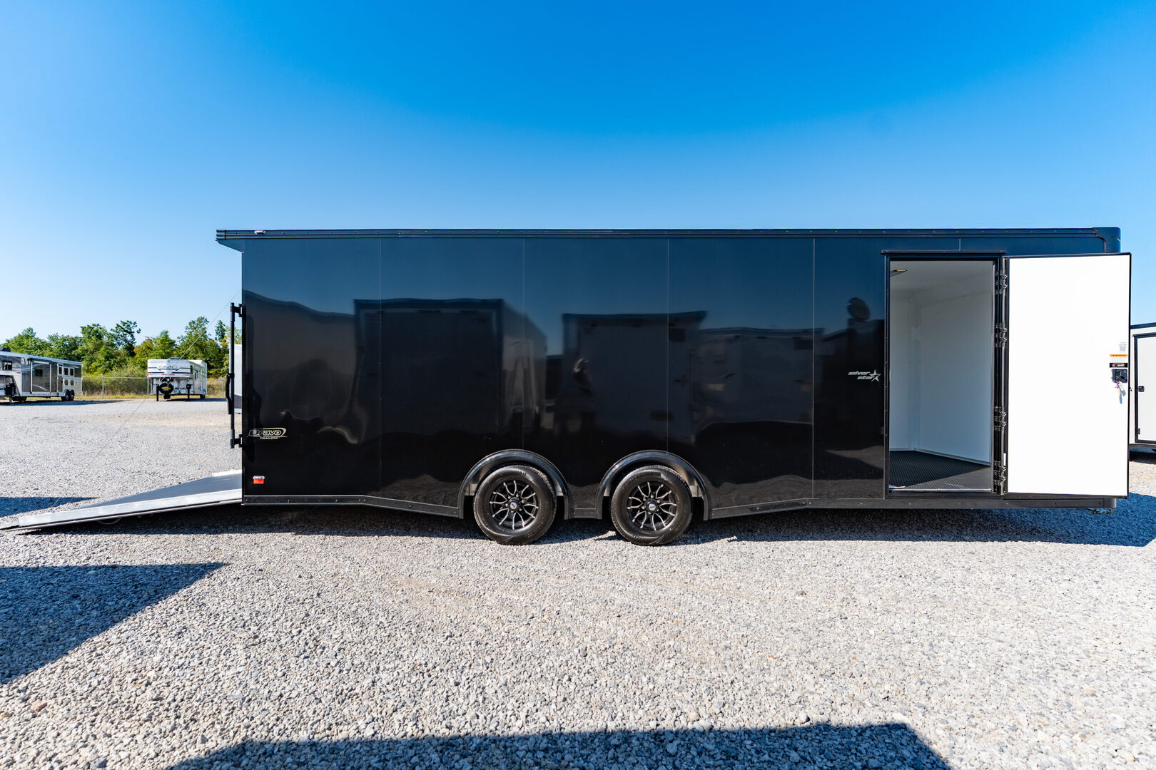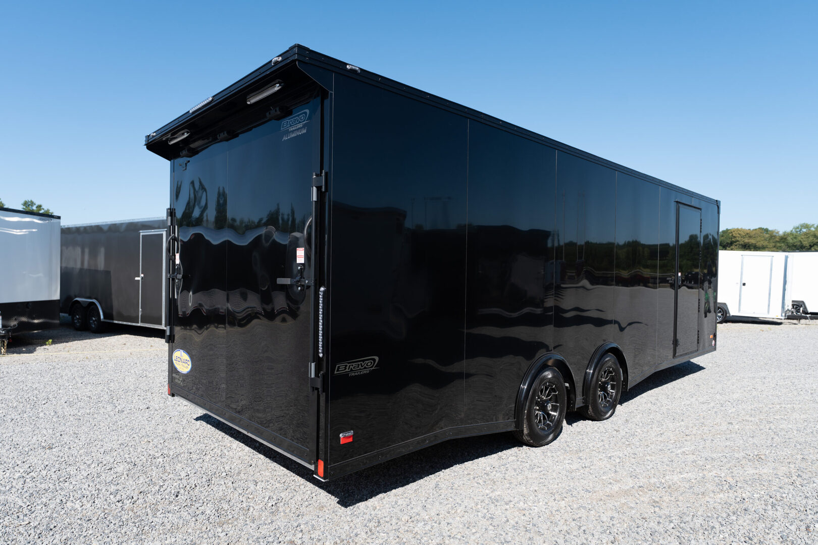 Stock# 44612 New 2025 Bravo SSA8524TA3 Enclosed Cargo Trailer  SilverStar  aluminum trailers are great looking trailers that play hard and work hard. They are built with Bravo’s “BIG 10 plus 5” commercial quality construction features leading to the strongest, longest lasting trailers on the market today. SilverStar trailers are available in 5', 6’, 7’, 7.5', and 8.5’ width Tag models. Create your dream trailer from our long list of options and specific use packages. Let us exceed your expectations. Model:SSA8524TA3 Warranty: 5yr-Limited Trailer Specifications Frame & Structure Perimeter style aluminum frame 5200# tandem torsion axles GVWR rated @ 9990# Spread axle with simple angle skirt Mill finish aluminum fenders Electric brakes 5” perimeter aluminum tube frame Aluminum crossmembers @ 16” O.C. 82-1/2” aluminum tube wall posts (1” × 2”) @ 16” O.C. Interior height approx. 7’ Aluminum tube roof members @ 16” O.C. 2-5/16” coupler black 14K 54” triple tube tongue – 2” × 6” double hollow (ASTAP style) Running Gear & Support 5000# zinc tongue jack w/ sandfoot ST225/75R15/LRD 15” radial tires Aluminum roof Lighting LED clear lens exterior lighting LED strip tail lights LED license plate light Exterior & Finish Ball burnished front castings Stainless front corners Stainless front insert Ball burnished rear corner castings VHB fastenerless exterior 24” ATP stoneguard Interior & Flooring 3/4” engineered flooring, ramp & flap (2) 3-way 12V wall switches (1) non-powered roof vent Doors 36” × 78” side door w/ flushlock & cast aluminum holdback Heavy-duty aluminum ramp door w/ flap Includes recessed rear X-member Flap trimmed with 3/4” × 3/4” aluminum angle with spring cover (4) 48” extruded aluminum barlocks for ramp door with stainless steel hasps Other Features Beavertail (4) 5000# recessed floor D-rings   We offer outstanding financing options, accept trades, and can arrange nationwide NO HASSLE delivery! Inquire today for more information! (888) 333-6613 **We believe these specifications to be accurate. Any discrepancies are unintentional. Please verify information with a sales associate prior to purchase.** Stock Number:44612