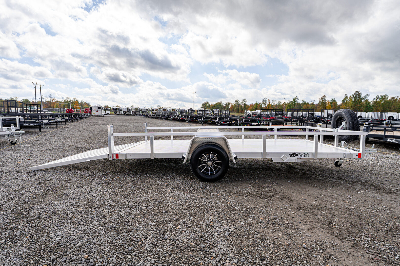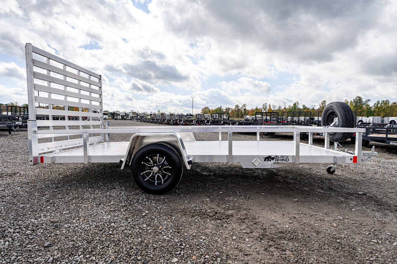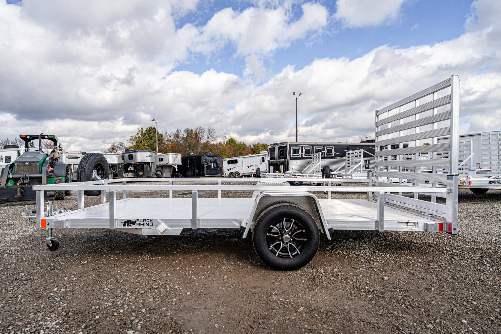 View Inventory: https://leonardtrailers.com/inventory/44647 Stock # 44647 Black Rhino LSS714A Utility Trailer The Black Rhino LT Series features a robust 8” side rail that provides multiple tie-down points to keep your cargo secure on every haul. Designed for efficiency, the heavy-duty rear gate ensures easy loading and unloading, with an optional split-gate configuration for added convenience. Built with an aggressive A-frame design and premium welding craftsmanship, the LSS714A delivers superior strength and durability. This trailer is the ideal choice for professionals, contractors, and business owners who demand reliability and performance to protect their investment. Specifications: Bed Size: 81” × 14’ Overall Length: 102” × 18’ Deck Height: 17” Side Height: 54” Axle Type: Torsion (Idler) Axle Rating (lbs): 3,500 Curb Weight (lbs): 770 Payload Capacity (lbs): 2220 GVWR (lbs): 2990 Wheels: 14” Aluminum Tires: 205/75R14 Electrical Connector: 4-Way Flat   Every Black Rhino LT Model comes backed by a 3-Year Limited Warranty, ensuring lasting confidence and protection for your investment.   We offer outstanding financing options, accept trades, and can arrange nationwide NO HASSLE delivery! Inquire today for more information! (888) 333-6613 **We believe these specifications to be accurate. Any discrepancies are unintentional. Please verify information with a sales associate prior to purchase.** Stock Number:44647