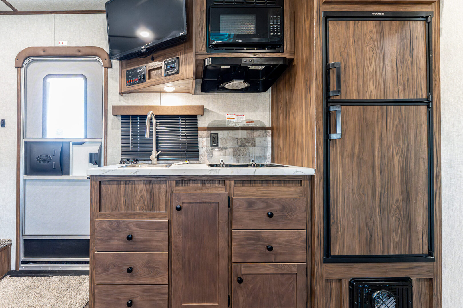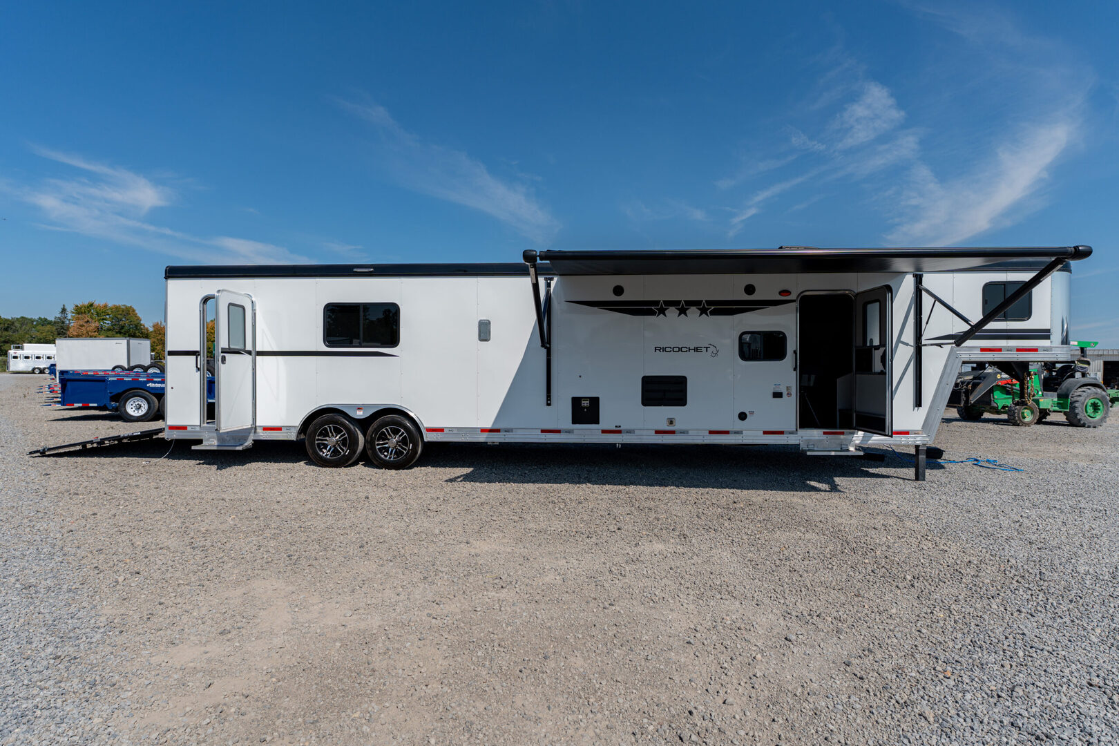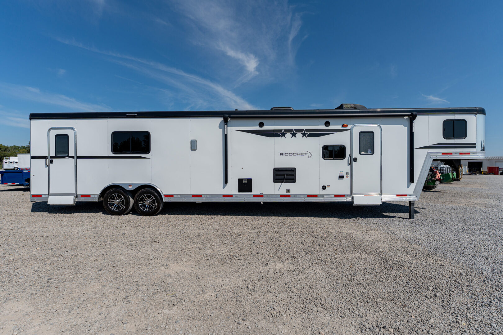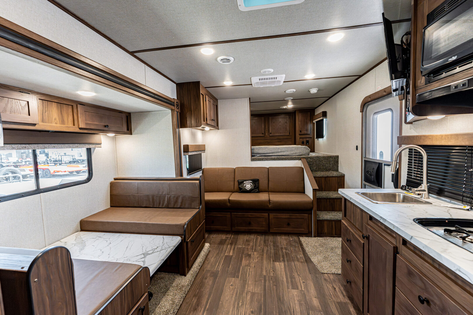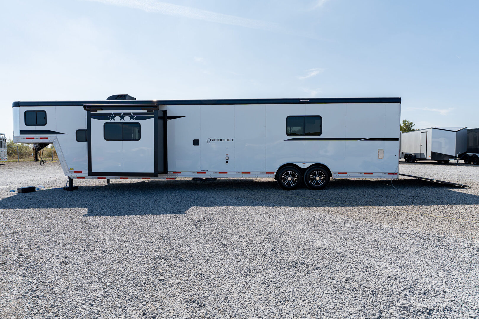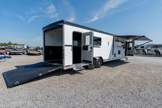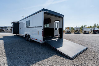 View Inventory: https://leonardtrailers.com/inventory/44244 Stock# 44244 New 2026 Bison RC18T16.S-SLIDE OUT Gooseneck Toy Hauler Trailer With Living Quarters   Model:RC18T16.S-SLIDE OUT Warranty: 1yr- Exterior Psint (Peeling& Fading) 2yr- Components, Assembilies, Systems 6yr- Structrual As Long As You Own The Trailer-Pressure Treated Lumber Floor in Horse Area RC18T16.S – Slide Out Trailer Options White exterior Brite nose Exterior BBQ quick disconnect Spray port with quick connect hose H-tire / Alum rim, ST215/78R17.5 LRH 8 lug – Black Hydraulic jack, dual legs Full rear ramp door IPO 50/50 doors Heat tape on tanks Load light package (4 total) Conversion Options Cool breeze screen for rear door Rustic Bison interior Westport Mink flooring Linoleum, Strata Max Pro Deep Timbers – Dark Mocha – 102” Rustic Bison cabinetry Sofa & dinette 15,000 BTU air conditioner, ducted Water heater gas/ele DSI – 6 gal (ILO gas DSI) Stereo with interior & exterior speakers Awning, powered with LED light strip Recessed cook top with range hood Fantastic fan in bathroom (ILO STD) Queen mattress with bedspread 32” LCD TV with locking swing arm Porcelain toilet   We offer outstanding financing options, accept trades, and can arrange nationwide NO HASSLE delivery! Inquire today for more information! (888) 333-6613 **We believe these specifications to be accurate. Any discrepancies are unintentional. Please verify information with a sales associate prior to purchase.** Stock Number:44244