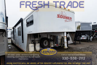 Stock# 44656 Used 2000 Sooner SARATOGA LQ Goosenck Horse Trailer with Living Quarters General Information: Coupler Size: 2 5/16 Roof: Alum Primary Color: White Stripe Color: Maroon Length: 33’ Width: 8’ Height: 7’6” Horse #: 4 Type: Slant Awning Size: 14’ Interior Wood: Oak Living Quarters Options: Air Conditioning Furnace Generator Sofa Dinette Sink - Kitchen Stove (2 burners) Refrigerator (6 CU FT) Microwave Oven Sink in Bath Toilet Shower Horse Area Options: Vents (4) Lights (2) Mangers (4) Rubber Lining: None Escape Type: None Tack Area: 4’ Pie Bunk House (Home Made) Door / Gate: Ramp Over Double Doors GVW: 20000 Axles Size: 8000 Tire Size: 215/75R17.5 Number of Brakes: 4 Spare Breakaway Jacks: Dual Jack Type: Electric Nose: Tapered Sq     We offer outstanding financing options, accept trades, and can arrange nationwide NO HASSLE delivery! Inquire today for more information! (888) 333-6613 **We believe these specifications to be accurate. Any discrepancies are unintentional. Please verify information with a sales associate prior to purchase.** Stock Number:44656