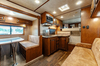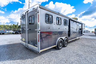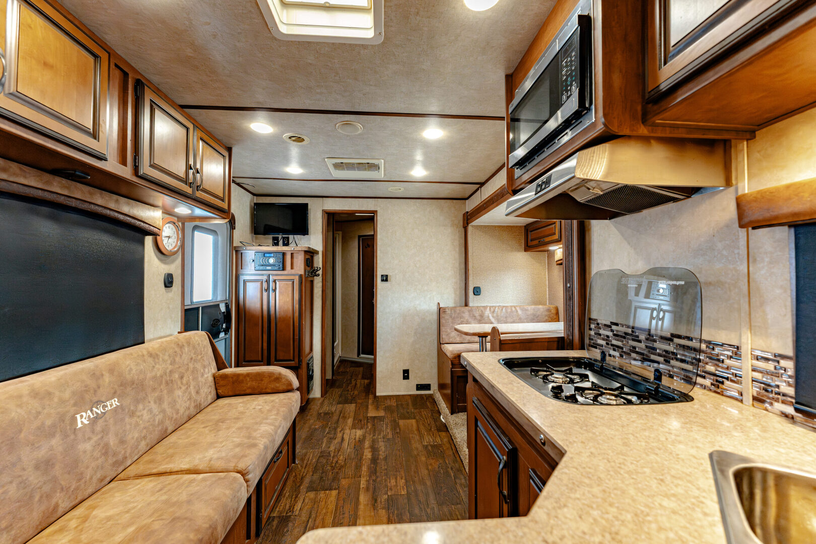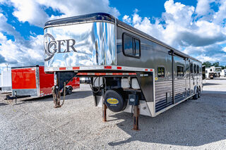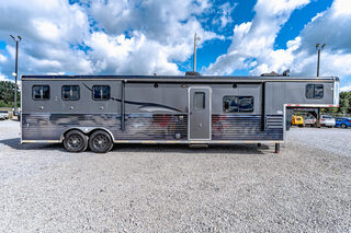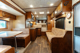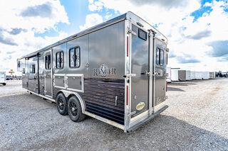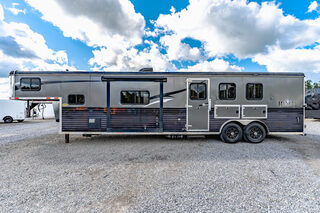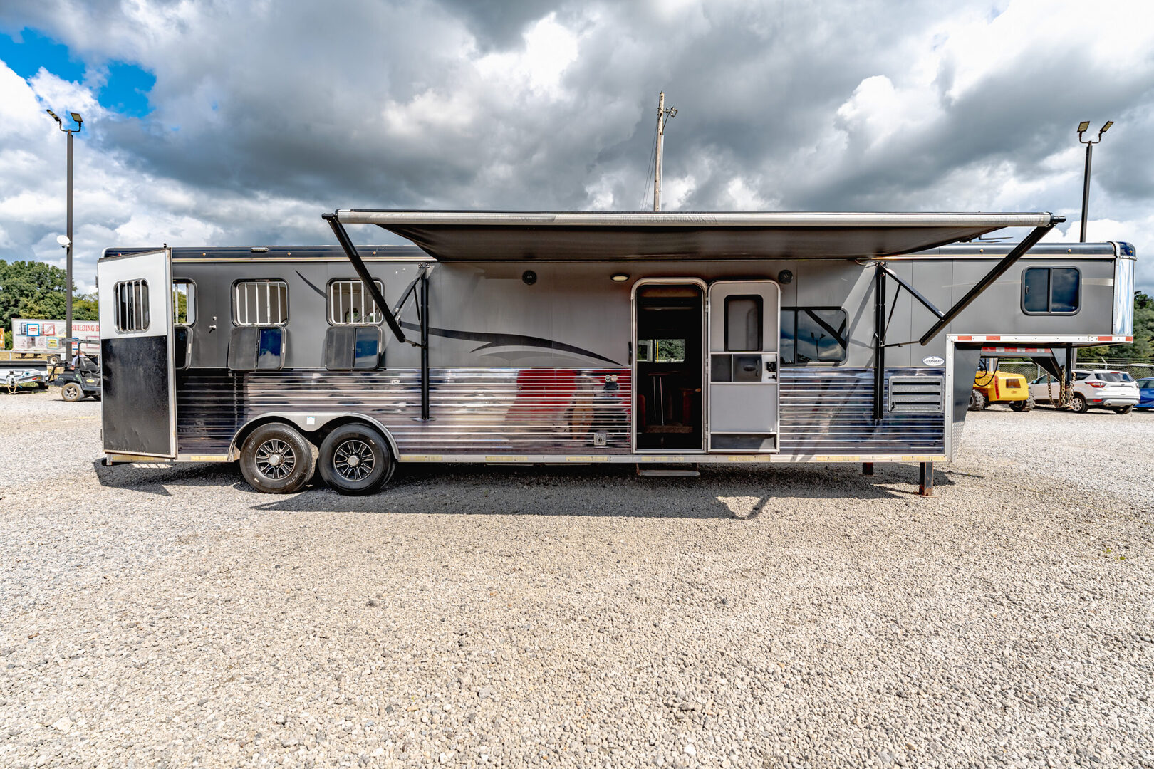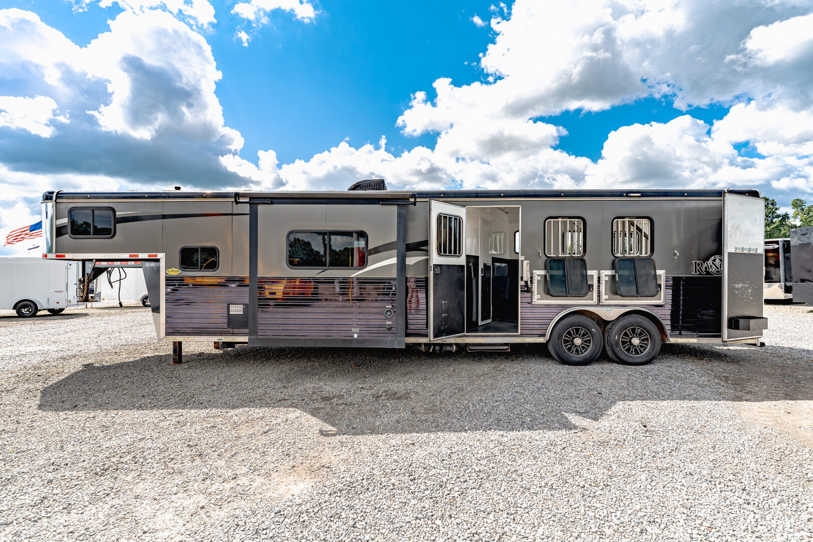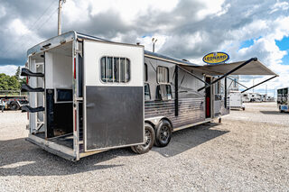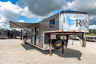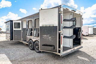 Stock# 44690 Used 2017 Bison 8314RG Gooseneck Horse Trailer with Living Quarters General Info Year: 2017 Make: Bison Model: 9314LG Coupler Size: 2 5/16 Primary Color: Charcoal Length: 30’ Width: 8’ Height: 7’6” Horse Area Horse Capacity: 3 Options: Mats Pads Vents Lights Mangers Rubber Lining: Complete Escape Type: 1 Full Walk Out Living Quarters Size: 14’ Awning Size: 16’ Options: Access to Horse Area Camper Steps Air Conditioning (Ducted) Heat Strip Furnace (Ducted) Sofa Dinette Kitchen Sink Stove Refrigerator Microwave Bath Sink Toilet Shower Doors/Gates Type: Double Rear Doors Other Specs GVW: 18,061 lbs Axle Size: 7,200 lbs Rubber Ride Tire Size: 16” Brakes: 4WB (4 Wheel Brakes) Breakaway: Yes Jack Type: Dual-Hydraulic Spare Tire: Yes Nose Type: Tapered   We offer outstanding financing options, accept trades, and can arrange nationwide NO HASSLE delivery! Inquire today for more information! (888) 333-6613 **We believe these specifications to be accurate. Any discrepancies are unintentional. Please verify information with a sales associate prior to purchase.** Stock Number:44690
