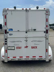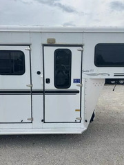 Horse area - sliding windows on head and hip, escape doors on both sides of trailer, removable divider, padded but and chest bars, tie rings, interior lights, 110v outlet, 2 roof vents, 48’ rubber wall liner, rubber floor mats, Dutch rear doors w/rear ramp.