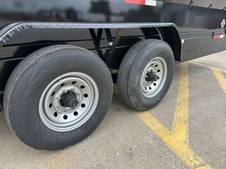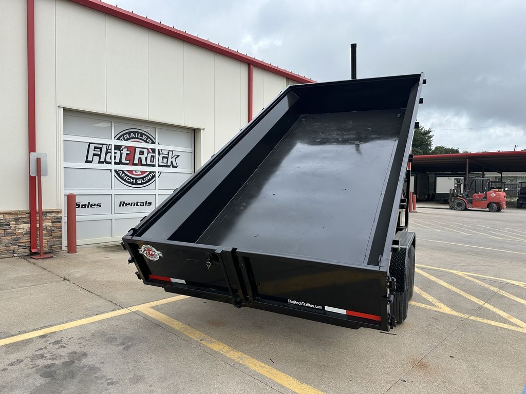 7’ x 16’ x 2’ Flare Side Dump Trailer (+/ 8.88 Cubic Yards) 2 x 7,000 lb. EZ Lube 8 lug (Brakes on both axles) Heavy Duty Slipper Spring Suspension Tires: New ST235/80R16 LRE 10 Ply Radials) Main Frame: Full 6 in. channel Gooseneck Tongue: 8 in. Channel Risers and Beams Tilt Frame: 3 in. x 2 in. tubing Cross Members: 3 in. channel Bed Flooring: 1/8 in. thick sheet steel Bed Siding: 1/8 in. thick sheet steel Deck width: 82 in. Deck Length: 16’ Deck Height: Approximately 28 in. Side Wall Height: 24 in. Rear Doors: Double swing doors (open like barn doors) Battery: Group 24 deep cycle marine Pump: Electric over hydraulic (1.7 gpm) Controller: 15’ corded remote control Front locking toolbox contains battery and pump Hydraulics: Single 3 stage hydraulic cylinder (14,000 lb.) 2 5/16 in. Adjustable GN Coupler Two heavy duty safety chains Jack on Gooseneck: 12,000lb spring loaded drop leg Fenders: 14ga heavy duty tread plate Lighting: All flush mount or recessed lifetime LED   Empty Weight: 4,500 lb. G.V.W.R. 14,000 lb. Carrying Capacity: 9,500 lb.