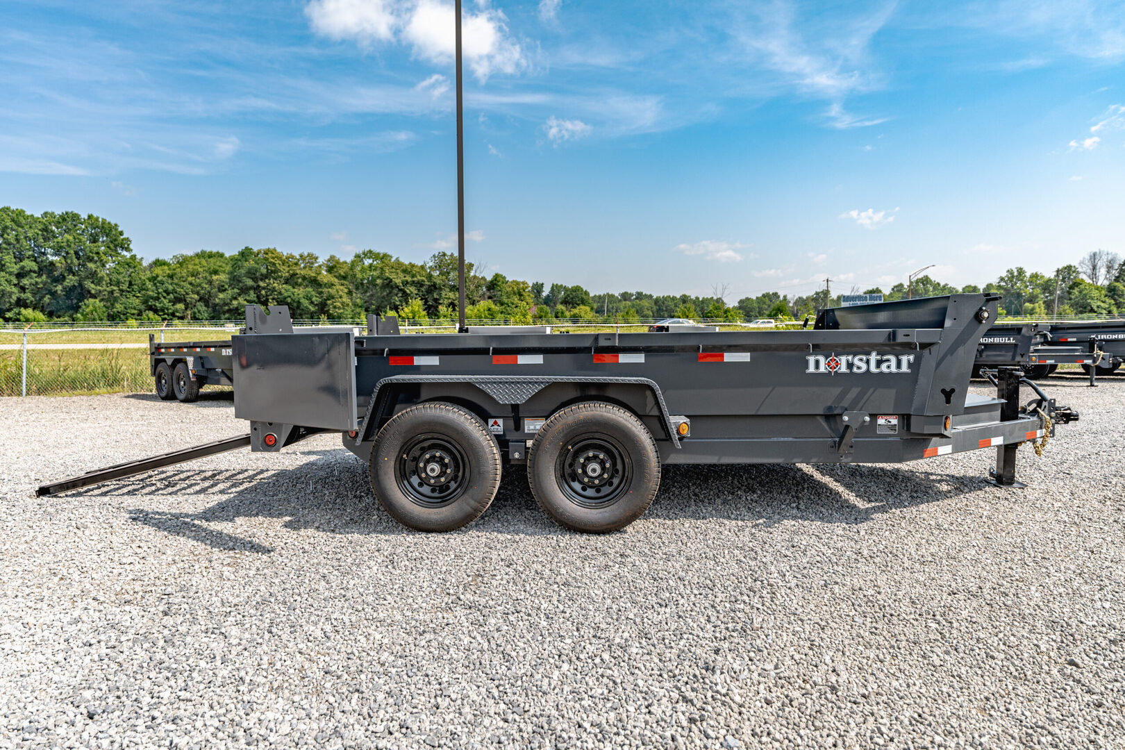 View Inventory: https://leonardtrailers.com/inventory/44707 Stock# 44707 New 2026 Norstar DCB8314072_12000_GRY Dump Trailer Norstar now offers a tandem axle 14k general duty dump trailer. This new dump boasts 14,000 GVWR with a 516 scissor hoist and can handle most any of your hauling needs. You can’t beat the versatility and value of this dump trailer. Designed with a 26” deck height which makes loading and unloading easy and efficient, Perfect for your everyday tasks! Model: DCB8314072_12000_GRY Warranty: 6 month – Limited Finish 3 year – Structural Trailer Specifications 2 - 7,000 lb Axles Straight (2 Electric Brakes, Forward Adjustable) Slide-IN Ramps 16” x 80” Scissor Hoist TH-516 Tube 2” x 6” x 3/16” GA Frame 20” 12ga. Dump Sides Standard Double Rear Swing Out Doors ST235/80 R16 LRE 10 Ply Tires Bumper Pull Adjustable 14k Coupler 2 5/16 Diamond Plate Fenders Jack: Spring Loaded Drop Leg 1-10K Tarp System (Front Mount) Lighting: LED (Oval 6” & 3/4” with Grommet) Standard Wiring Harness D-Rings 3” x 5/8”, Weld-On (4 each) Standard Spare Tire Mount (Weld-On) Color: Grey We offer outstanding financing options, accept trades, and can arrange nationwide NO HASSLE delivery! Inquire today for more information! (888) 333-6613 **We believe these specifications to be accurate. Any discrepancies are unintentional. Please verify information with a sales associate prior to purchase.** Stock Number:44707