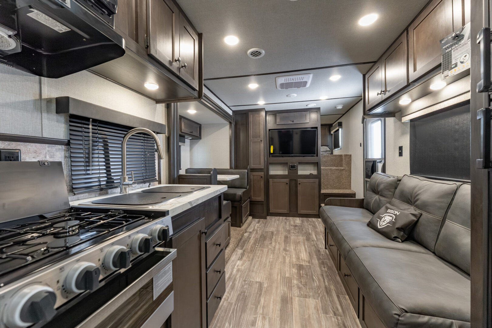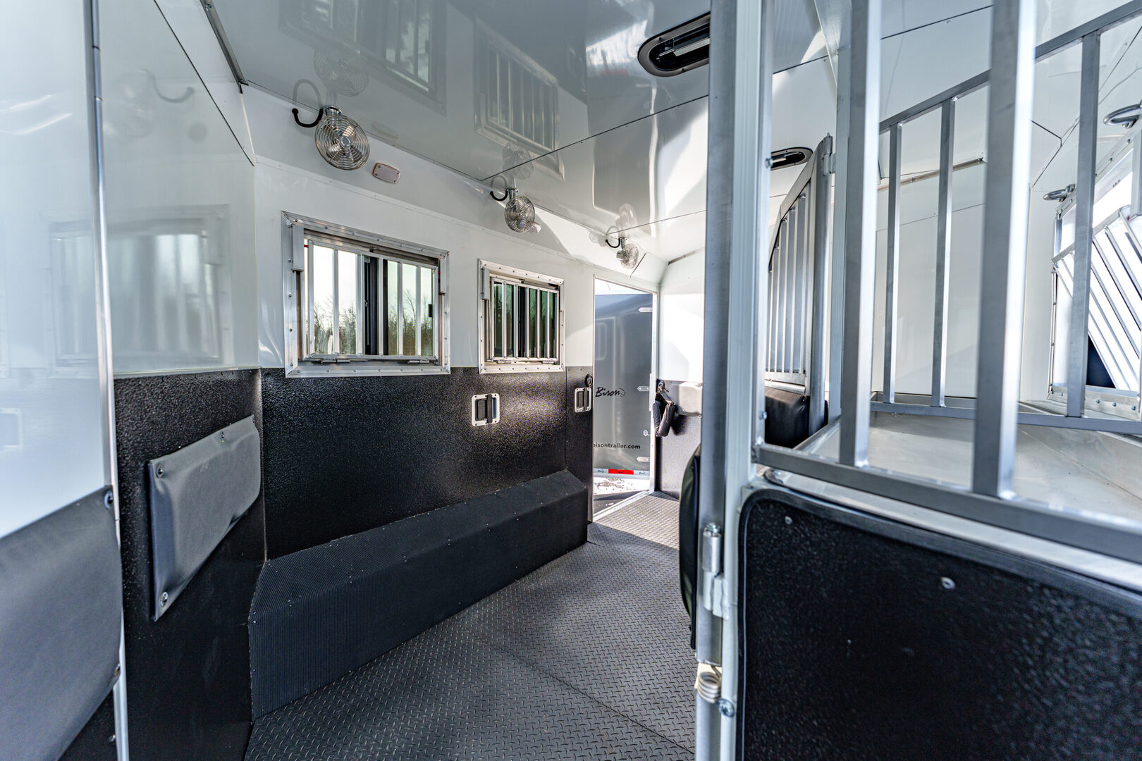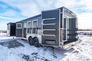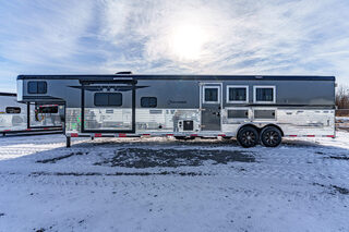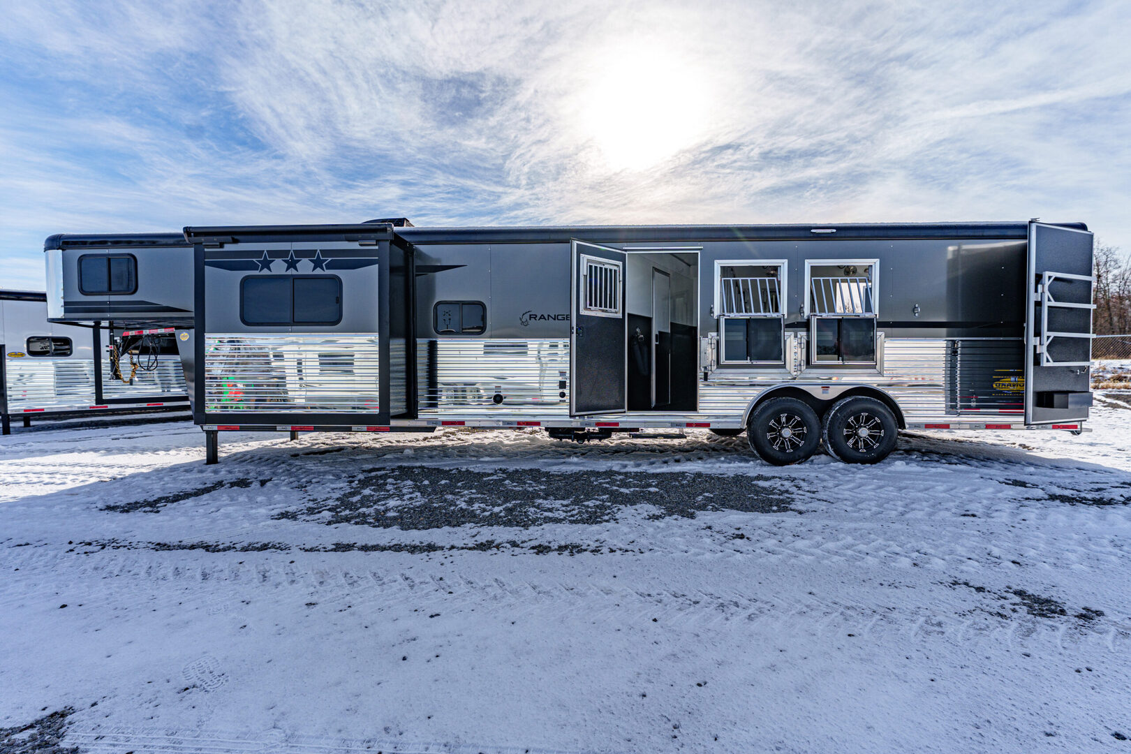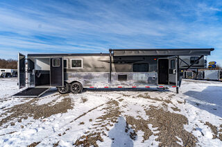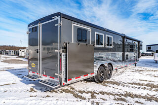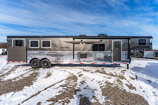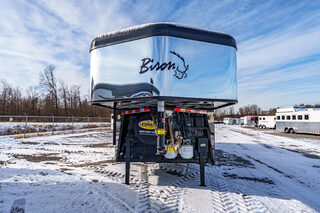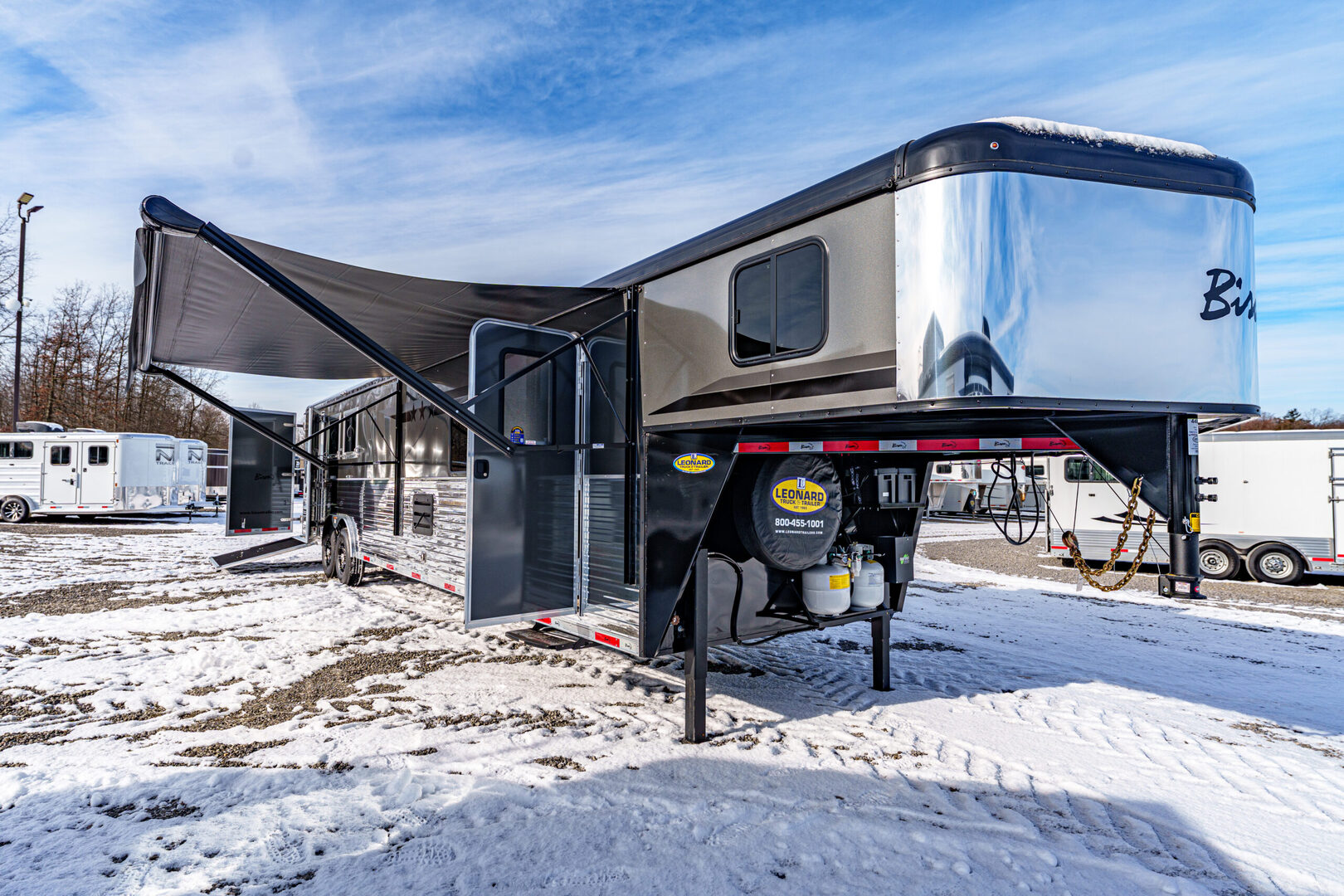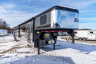 View Inventory: https://leonardtrailers.com/inventory/44808 Stock# 44808 New 2026 Bison RG8316S Gooseneck Horse Trailer With Living Quarters Unparalleled horse safety and comfort with the Ranger, your trusted steel frame luxury horse trailer! The Bison Ranger boasts premium features and options similar to an aluminum frame trailer while ensuring equine well-being on every journey by pairing luxury with strength! Model:RG8316S Warranty: 1yr- Exterior Psint (Peeling& Fading) 2yr- Components, Assembilies, Systems 6yr- Structrual As Long As You Own The Trailer-Pressure Treated Lumber Floor in Horse Area Trailer Specifications & Features: Dimensions: Box Length: 30’ - 3” Box Width: 8’ - 0” Box Height: 7’ - 10” Undercarriage: 8,000lb Dexter Torflex Axles, 8 Bolt Hubs w/ 5/8” Studs Axle Articulation: 0 Degree Brakes: Electric (All Wheel) Tires: Cooper 245/70 R17.5” LR-J (Choose Spoke Wheels) Wheels: 8 Hole-Aluminum Spoke 17.5” Coupler: Type: 2 5/16” positive lock w/ adjustable height stem (GN Standard) Flooring: Extruded Aluminum w/ V-truss & cross members every 4” Bottom Rail: HD-Bottom Rail Jack & Parking Type Type: Dual electric/hydraulic with 12-volt battery & compartment Exterior Lights Back-Up Lights (L.E.D.): Yes (Built into Tail Lights) Tail Lights: L.E.D. w/ Red Lens (Qty: 4) Marker Lights: L.E.D. Button Type (Qty per Side: 7) Flood Lights: L.E.D. Pedestal Mount (Qty: 2) Other Lights: L.E.D. Awning Light 16” (RH: 1, LH: 1) Walls & Interior Features Front Tack Room: Solid partition wall, full height & width (Slant wall) Rear Tack Room: Full Width Rear Tack Closet Tack Room: Size: LH: -, RH: - Front Tack Room Equipment Size: LH Length: 13’ - 9” | RH Length: 17’ - 9” | Width: 8’ - 0” Flooring: Unfinished Stall Area & Load Space Equipment Size: LH Length: 10’ - 6” | RH Length: 10’ - 6” | Width: 8’ - 0” Rear Opening: Single Rear Door w/ Partial Wall (for rear tack) Latch Type: Butterfly Hardware & Storage Equipment Dome Lights (Optibrite L.E.D.): LS-RH (Qty: 3) Bridle Hooks (Set of 6): RT-PW (Qty: 4) Brush Trays: RT-DR (Qty: 1) Fold Up Steps: RT-1, LS-1 Saddle Racks: Adjustable Pads: 3 (Swing Out/Gas Shock) Blanket Poles: 4 Poles-Swing Out, Gas Shock (RT-DR, Qty: 1) Special Requirements Add Recessed Paddle Latch Side Access Door 39” #3 Stall is 48” Wide Carpet all Walls & Doors Shelf, 18” w/ 2” lip Custom Shelf, 18” w/ 2” lip Custom Rear Tack Door is 48” & Offset Conversion Options & Living Quarters Sofa & Dinette Chestnut Brown Interior Artist Maple Cabinetry Cascade Grey Flooring 15,000 BTU Air Conditioner (Ducted) Water Heater Gas/Electric DSI - 6 Gallon Stereo with Interior & Exterior Speakers Oven w/ 3 Burner Stove Awning, Power (Per Model Spec) Mattress w/ Bedsheet 32” LCD TV w/ Locking Swing Arm Porcelain Toilet   We offer outstanding financing options, accept trades, and can arrange nationwide NO HASSLE delivery! Inquire today for more information! (888) 333-6613 **We believe these specifications to be accurate. Any discrepancies are unintentional. Please verify information with a sales associate prior to purchase.** Stock Number:44808