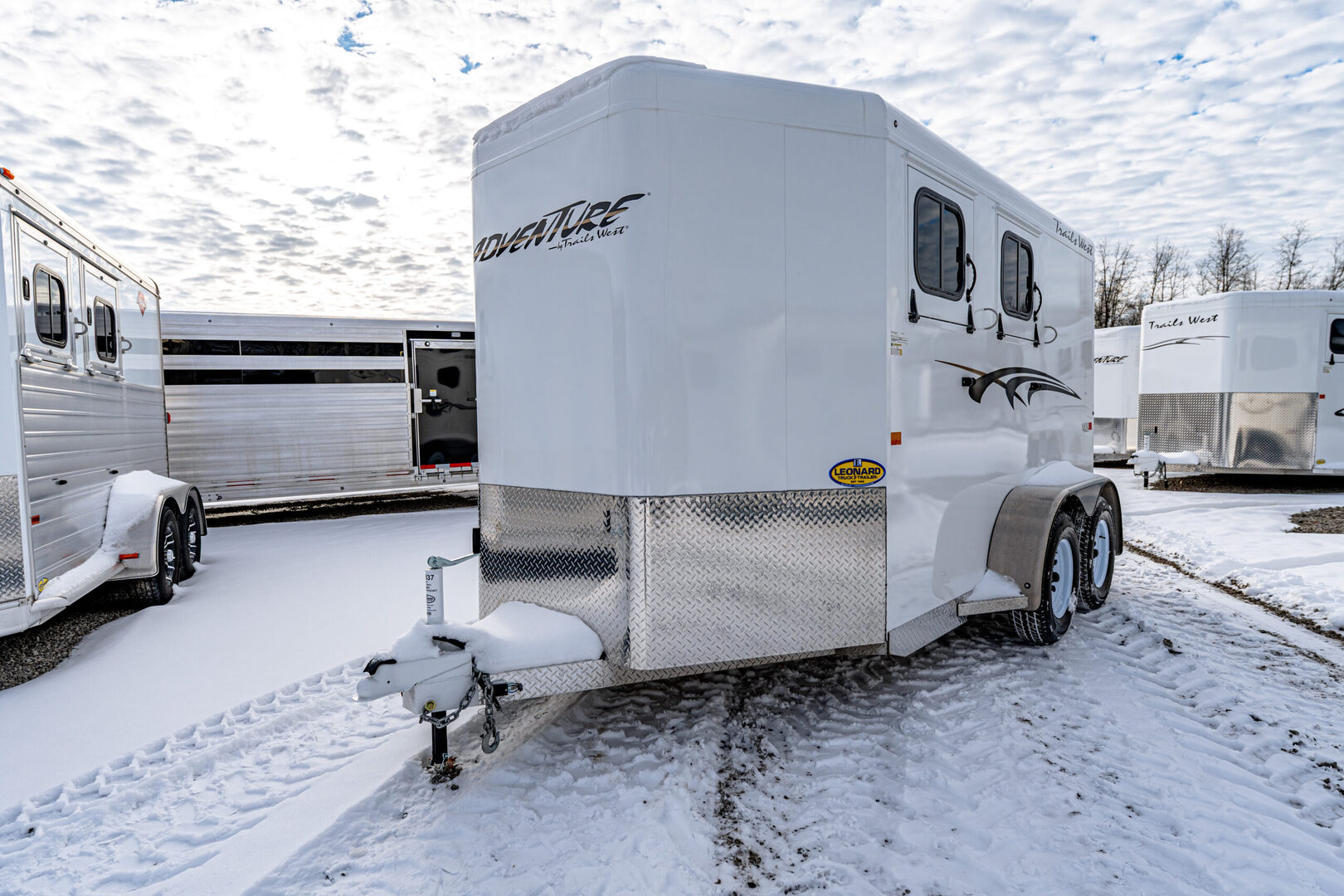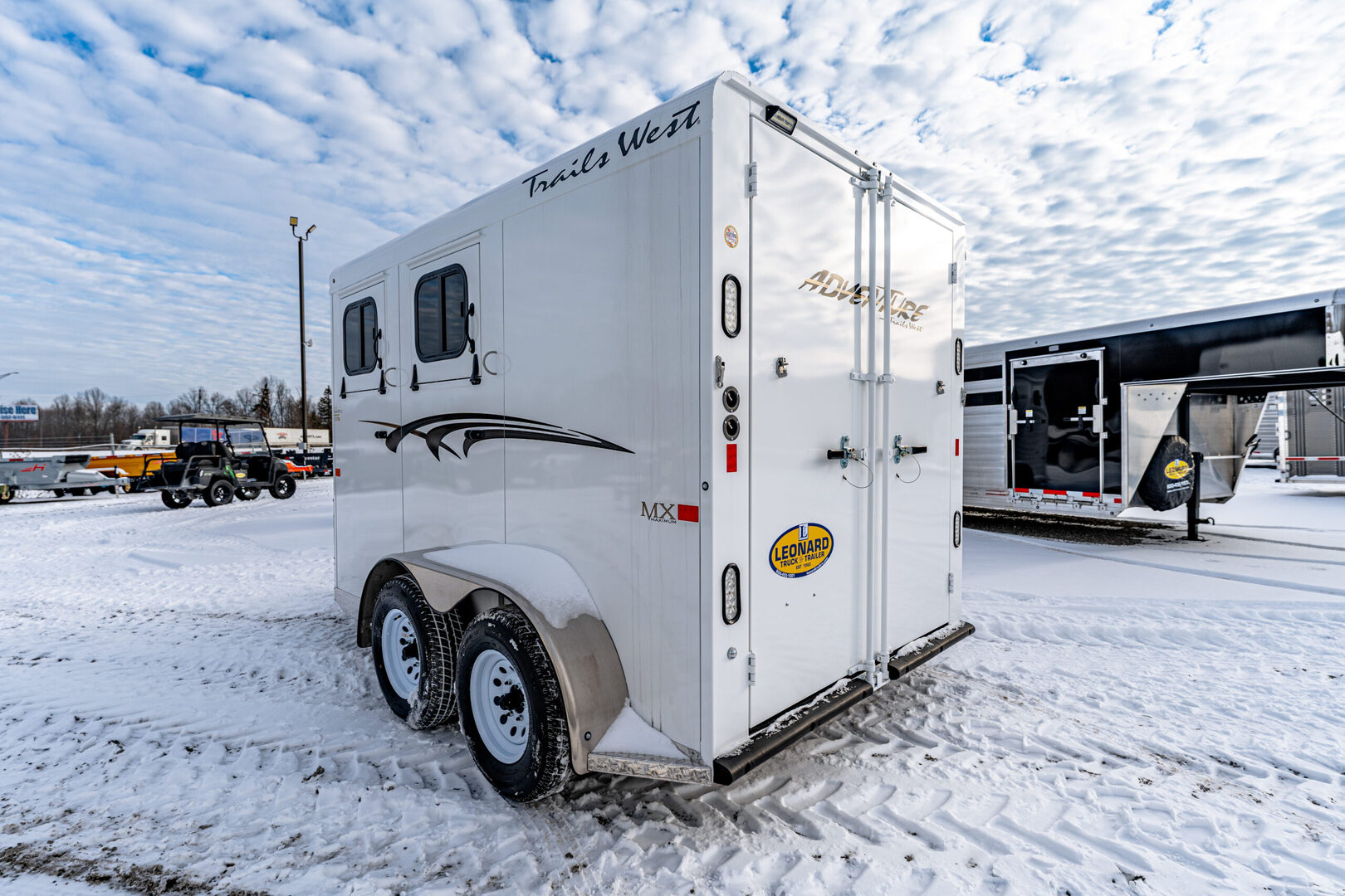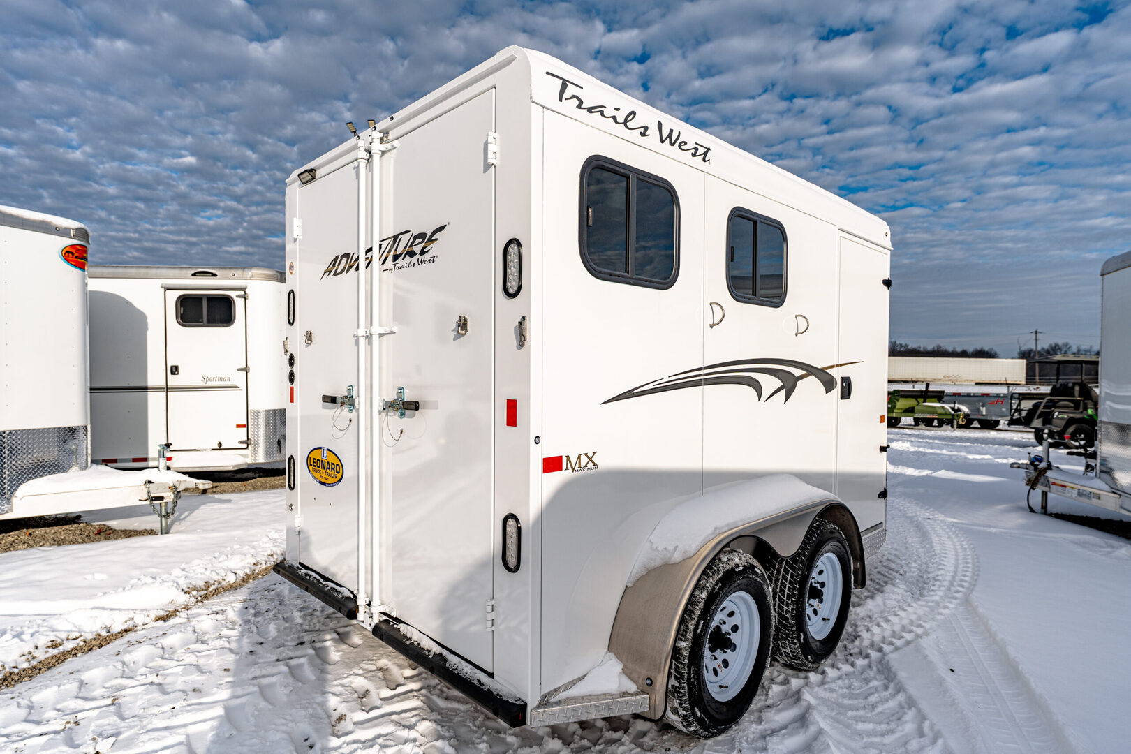 View Inventory: https://leonardtrailers.com/inventory/44837 Stock# 44837 2026 Trails West Adventure II MX 2 Horse Trailer Warranty: 1yr- Paint/Trim 5yr- Structural Model Description Type: Bumper Pull Trailer Standard Equipment Axles: 3,500# Tires: ST225/75R15 LRD   We offer outstanding financing options, accept trades, and can arrange nationwide NO HASSLE delivery! Inquire today for more information! (888) 333-6613 **We believe these specifications to be accurate. Any discrepancies are unintentional. Please verify information with a sales associate prior to purchase.** Stock Number:44837