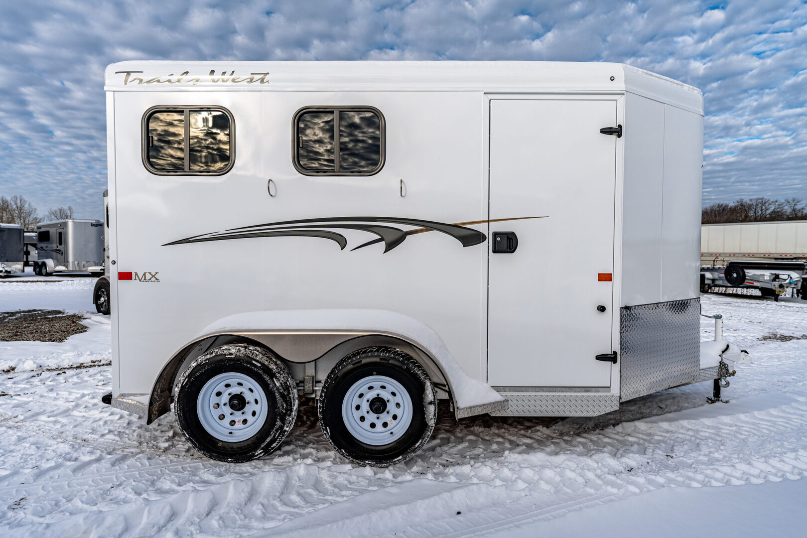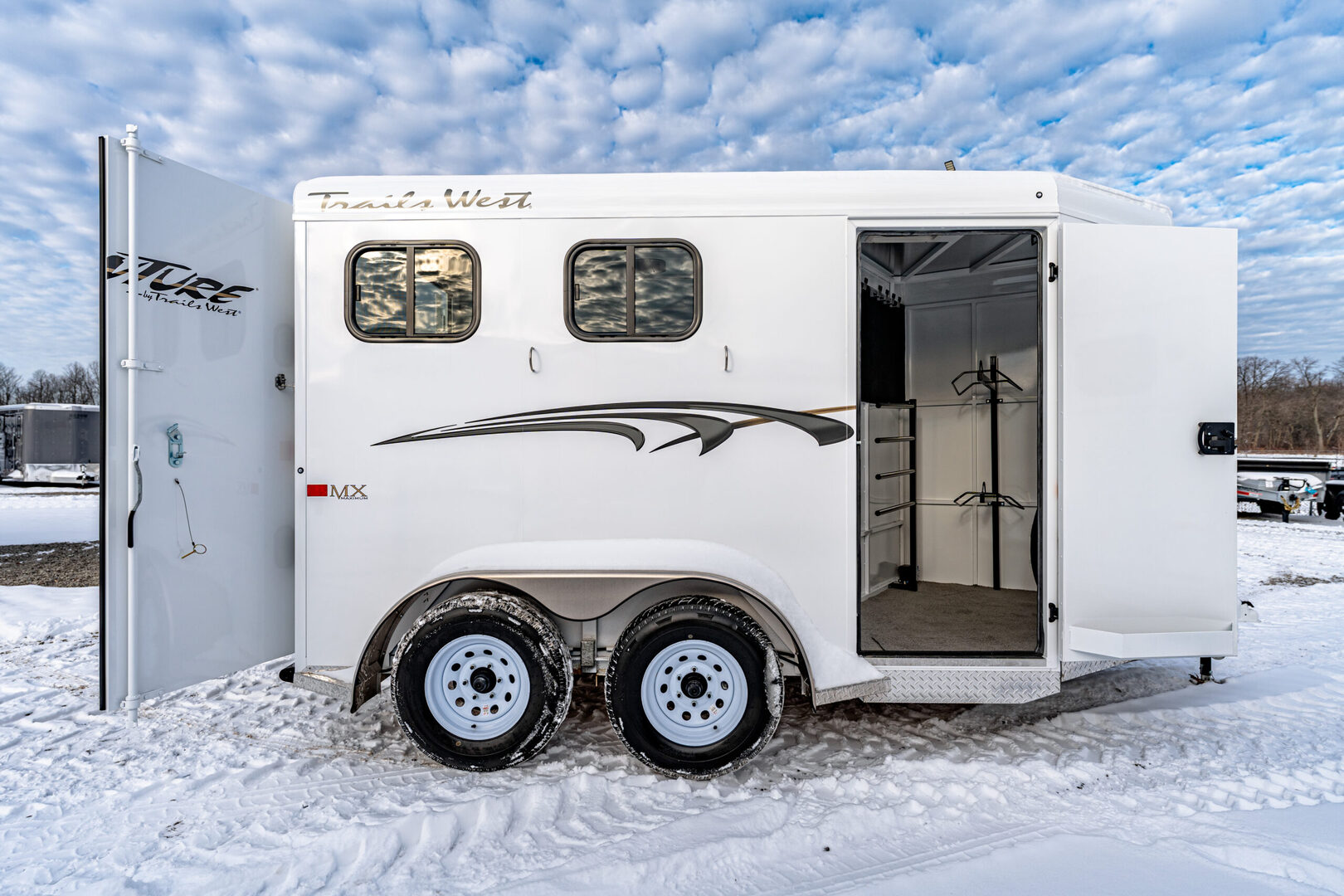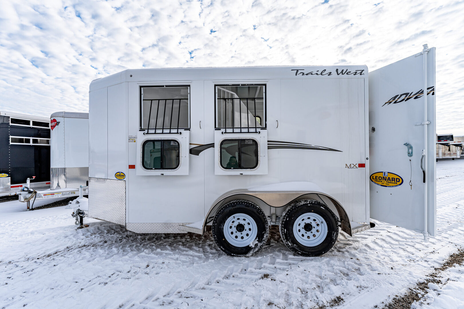 View Inventory: https://leonardtrailers.com/inventory/44837 Stock# 44837 2026 Trails West Adventure II MX 2 Horse Trailer Warranty: 1yr- Paint/Trim 5yr- Structural Model Description Type: Bumper Pull Trailer Standard Equipment Axles: 3,500# Tires: ST225/75R15 LRD   We offer outstanding financing options, accept trades, and can arrange nationwide NO HASSLE delivery! Inquire today for more information! (888) 333-6613 **We believe these specifications to be accurate. Any discrepancies are unintentional. Please verify information with a sales associate prior to purchase.** Stock Number:44837