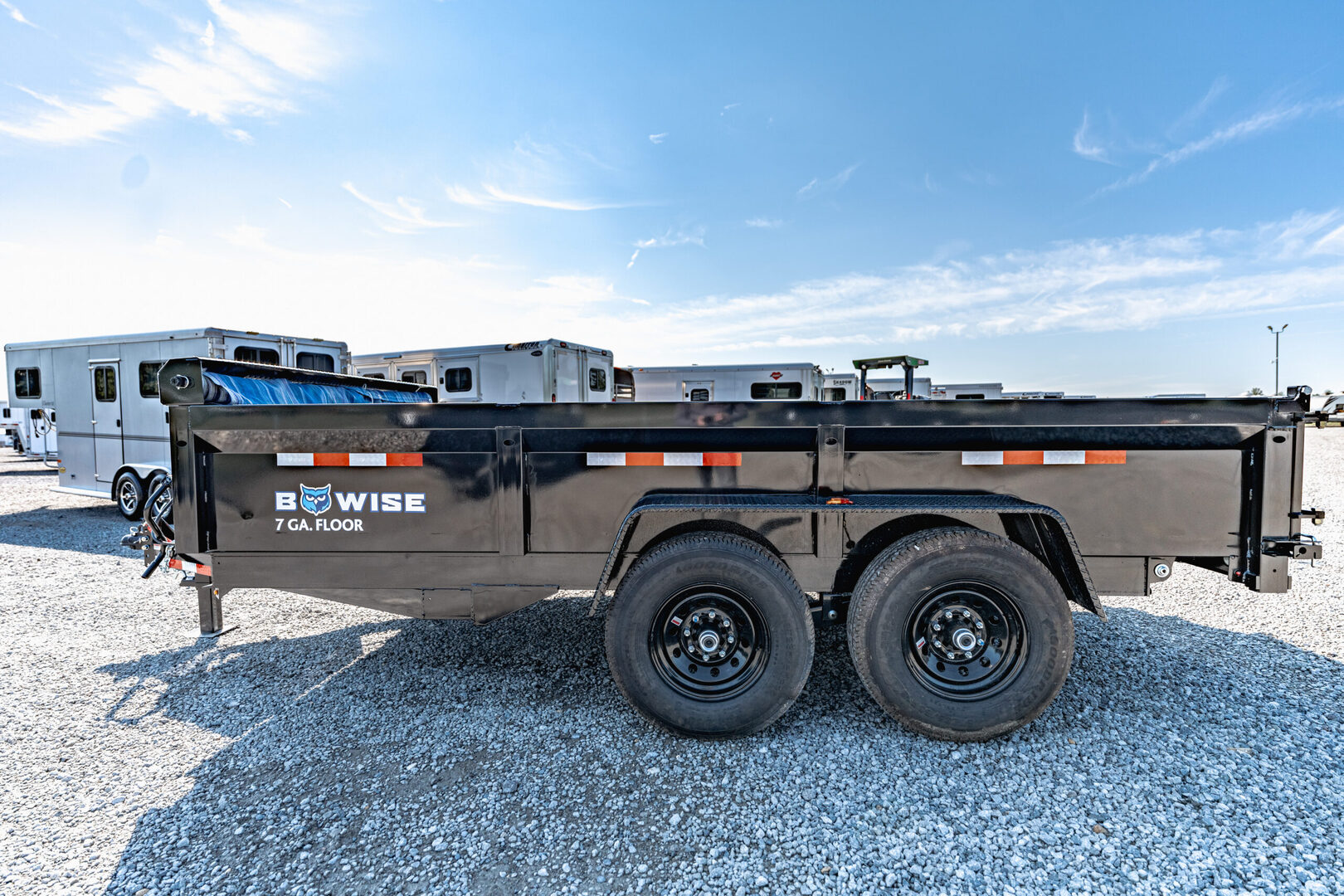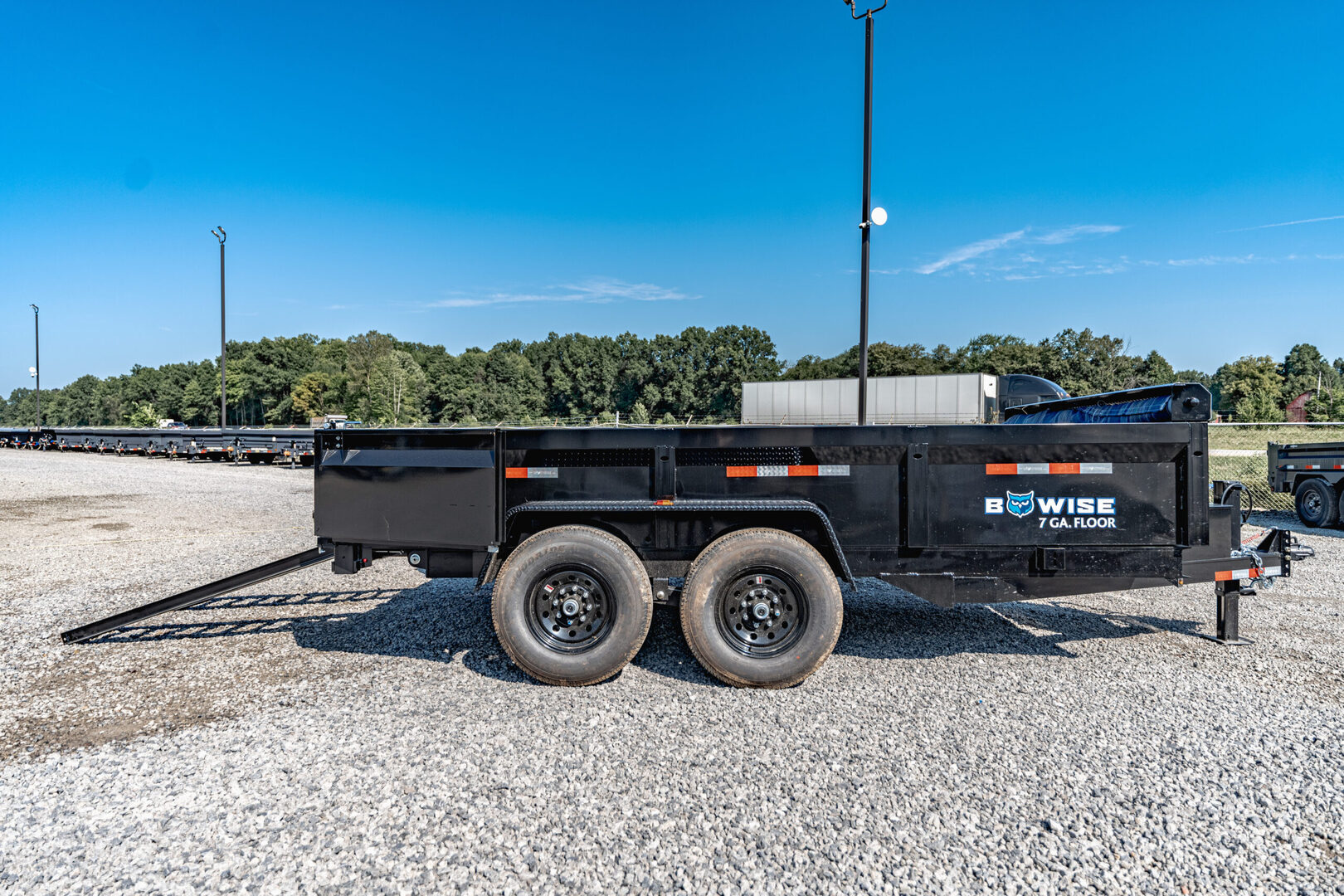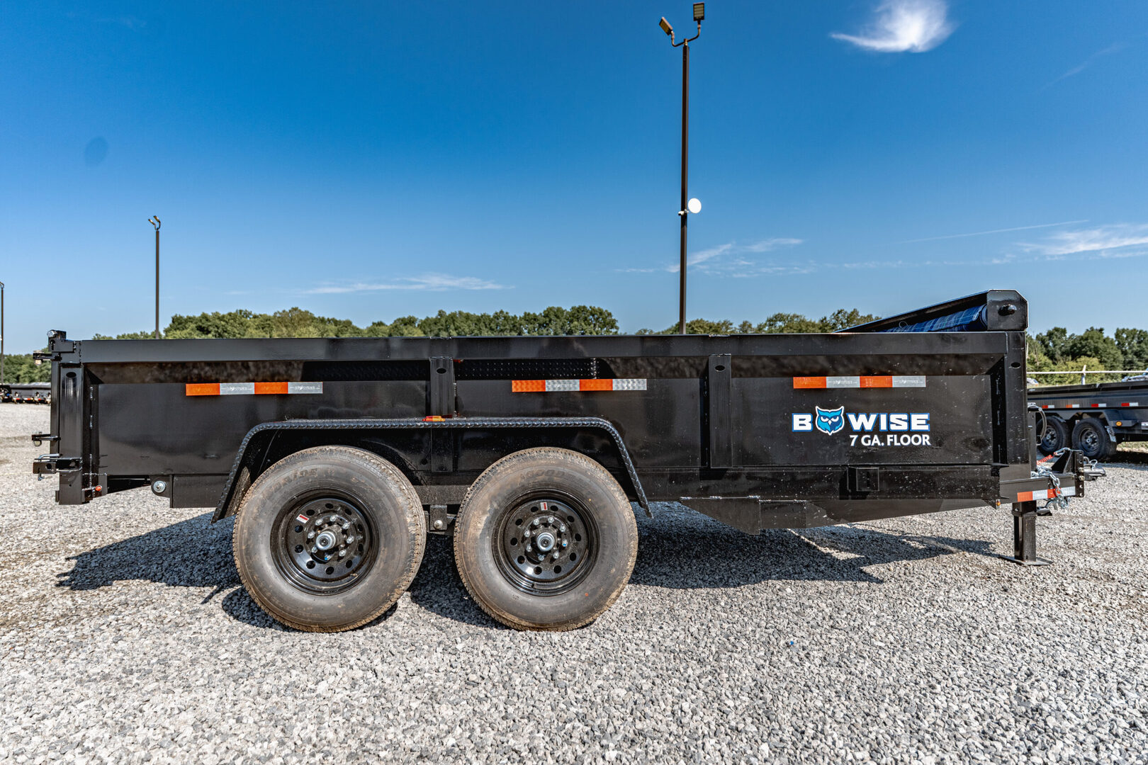 Stock# 44724 New 2026 Bwise DT714LP-LE-14-A Dump Trailer The DT Channel Frame Low Profile Dump Trailers are the go-to low profile dump models for your homeowner and light duty commercial projects. With standard features to keep your dump trailer hauling projects moving easy and efficiently. Model:DT714LP-LE-14-A  Warranty: 2yr- Structural DT14 – Low Pro Dump Trailer Color: BLACK DT14 DT714LP-LE-14-A DUMP LOW PRO 81.5”W X 14’L 14,000 GVWR 6” CHANNEL MAIN FRAME FORMED BED SIDES 2-5/16” ADJUSTABLE COUPLER 12K DROP LEG JACK COMBO GATE/RAMPS/D-RINGS 7K SS TANDEM AXLE - ELEC ST235/80R16E RADL BLACK MOD DEEP CYCLE BATTERY TWIN TELESCOPIC CYLINDERS 7GA FLOOR   We offer outstanding financing options, accept trades, and can arrange nationwide NO HASSLE delivery! Inquire today for more information! (888) 333-6613 **We believe these specifications to be accurate. Any discrepancies are unintentional. Please verify information with a sales associate prior to purchase.** Stock Number:44724