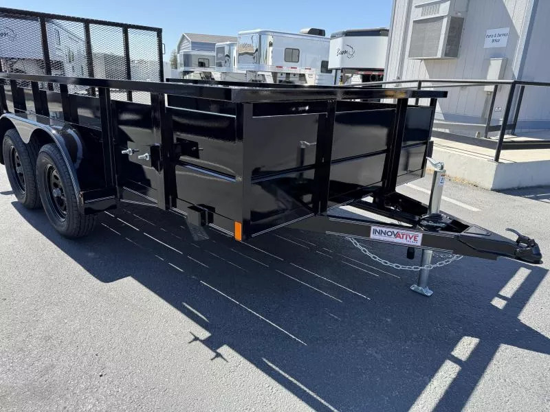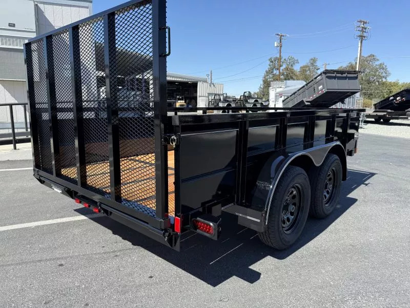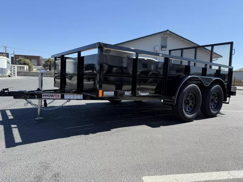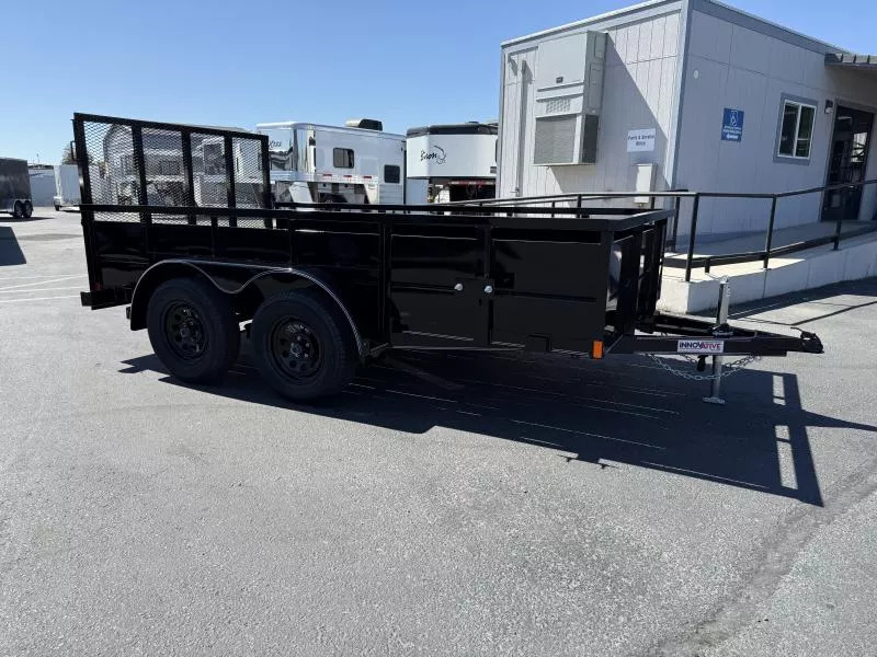 2025 INNOVATIVE 77” wide x 12’ long HD Tandem Axle Utility / Landscape Trailer. * Tandem 3500# EZ Lube Axles * One Electric Brake Axle * 15” Radial Tires Load Range D - 8 Ply * 20” Tall Solid Side + 2” Tubular Top Rail * Side panels are broke for strength and have crimped top * 4” Channel Tongue * 4’ Tall Tubular Framed Rear Ramp Gate with Large Hinges * Rear Gate is Removable * Removable end flap for easy wood change out * Spare Mount on Side (does not include tire) * LED Clearance and Tail LightsLights * Sealed Boxed Tail lights * Crank Jack * Sealed Modular Wire Harness carries 5 year electrical warranty! * 2” coupler * 7 Way Plug * Black Call D2 Trailer Sales 209-745-5480 or for more info www.d2trailersales.com