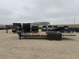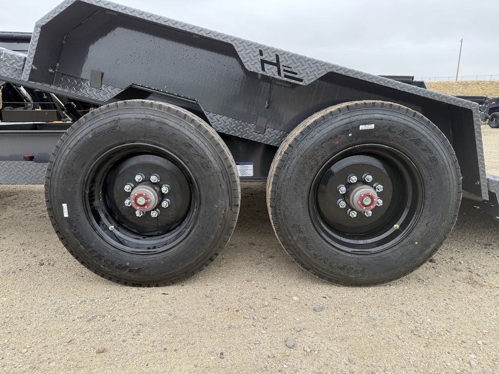 BUMPER PULL7K EZ LUBE ELECTRIC BRAKE SPRING AXLE(S)235/80 R16 (E)10PLY TIRE WITH BLACK WHEELSPARE TIRE MOUNT2-5/16” 21K DEMCO ADJ CAST COUPLERDUAL 10K DROP-LEG JACKSFRONT TOOL BOX5’ DOVEPAIR OF RHINO RAMPSRAMP STRAPSTANDARD STAKE POCKETS8” 10 LB I-BEAM FRAME16” CENTER-TO-CENTER CROSSMEMBERSRUB RAILTREATED YELLOW PINE FLOORWIRINGLED PACKAGEDECAL PACKAGELAMAR GRAY POWDER COAT