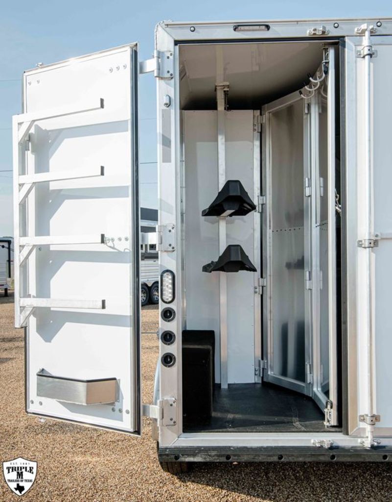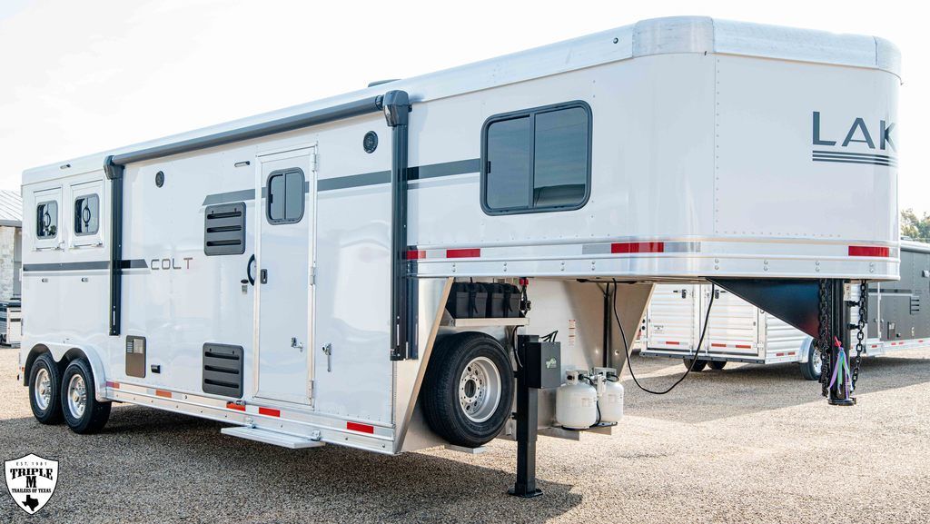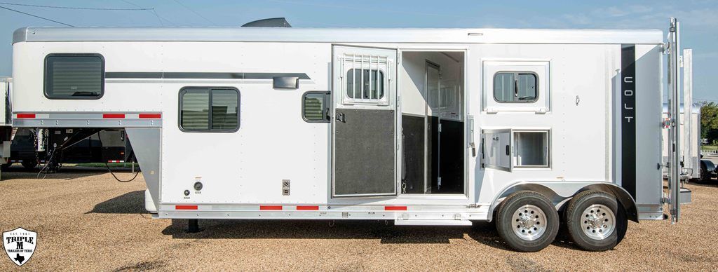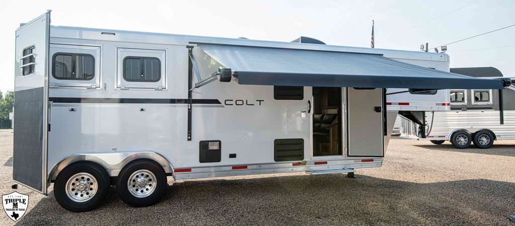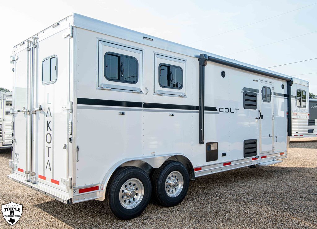 2H COLT w/ 9’ LQ CO829 21’ FLOOR / 29’ OVERALL 7’6 TALL / 8’ WIDE GOODYEAR E RANGE TIRES 7K AXLES DROP DOWN WINDOW ON BOTH SIDES SKYLIGHT IN BATH BAUER LATCH & STEP ON ESCAPE DOOR 3 WAY SWITCH FOR HORSE AREA PADDED DIVIDERS INSULATED HORSE AREA RECESS COOK TOP SHOWER / TOILET / CABINETS STALL FANS RAIN SENSOR FAN SWINGING BLANKET BAR WHITE SKIN EMPTY = 7,750 GVWR = 13,680