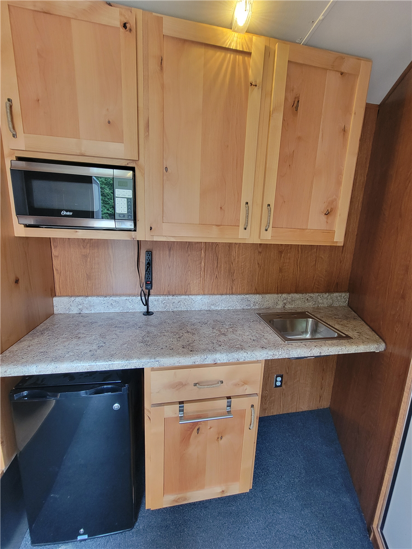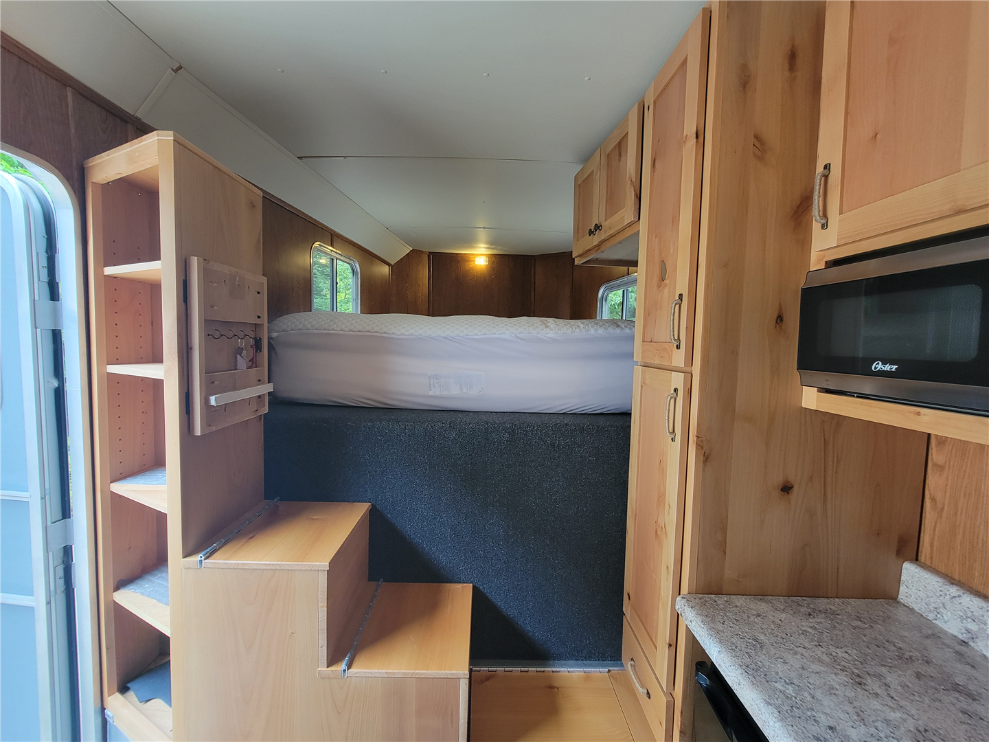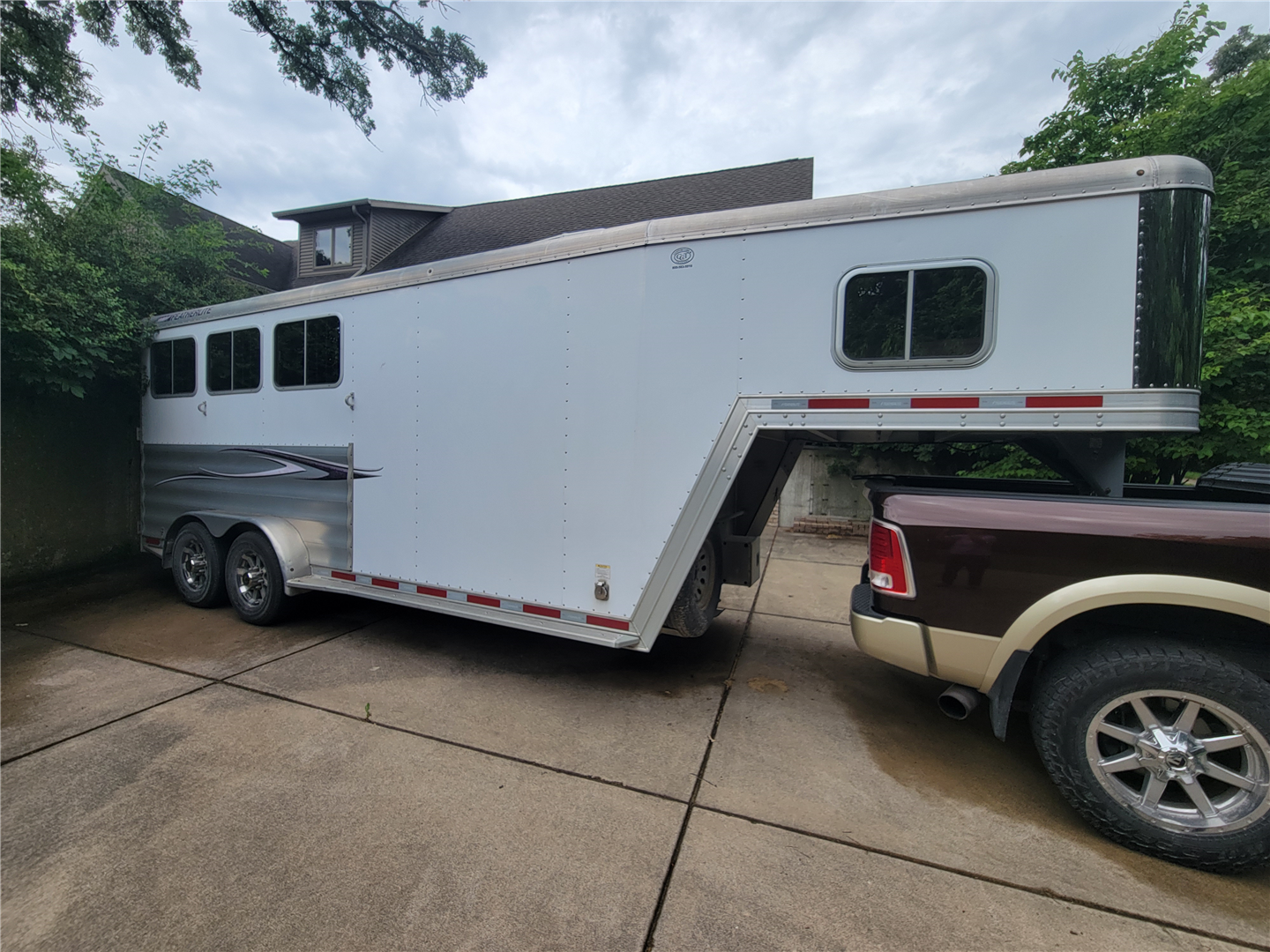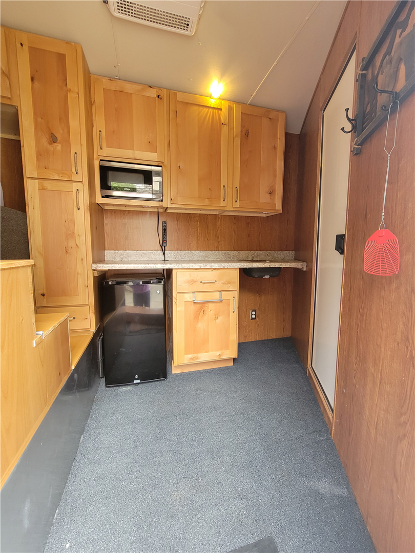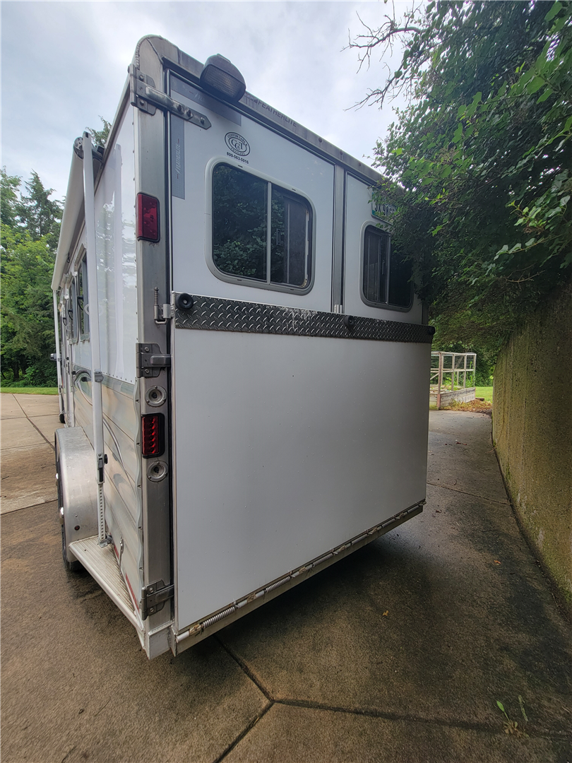 PRICE REDUCED !!! 2012 3 Horse Featherlite Weekender. 7 ft wide, 4 ft short wall, 18 ft floor length ( 23 ft overall) brand new custom Alder wood cabinets in living space, refrigerator, microwave, air conditioning, heat, sink installed with future plans to install water reservoir in the first stall as well as cowboy shower.
