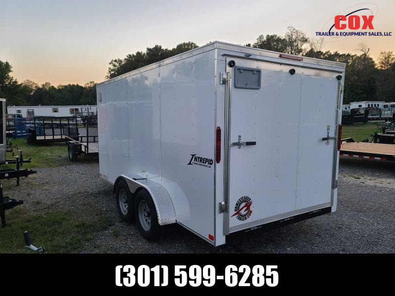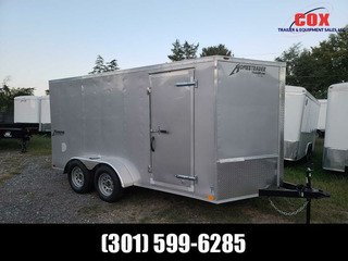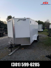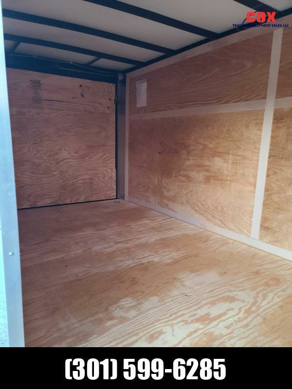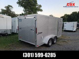 A solid built american made cargo trailer with a v-nose front , rear ramp door , side door , interior dome light l.e.d., stone guard , .030 silver aluminum , 1-piece aluminum roof , tubuluar uprights , and priced to sell ! Call or come Buy Cox Trailer Sales today 301-599-6285 financing and delivery available w.a.c. price applies to 1- white one and 1-silver one in stock as of 8-5-25