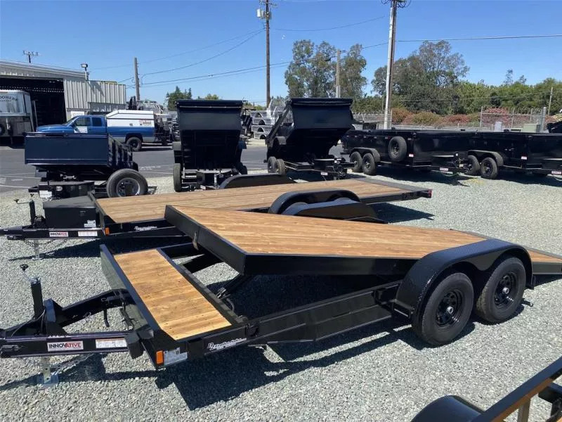 2025 INNOVATIVE 20’ Equipment Flatbed Tilt Deck 10K Trailer. * 18’ of tilt deck and 2’ stationary deck * 9990K GVWR * Fully Adjustable Hydraulic Dampner Ram with Exterior Adjustment * Auto-Locking Latch * Tandem 5200# EZ Lube Axles * 4 Wheel Electric Brakes with Breakaway System * ST225/75 E-Rated 15” Radial Tires * Steel Diamond Plate Teardrop Fenders * Diamond Plate Steel Reverse Dovetail * 2x6 Kiln Dried Wood Deck * 6” Channel Inner and Outer Frame * Wrapped A-Frame Tongue * Pre-Formed 5” Channel Front Bumprail * Stake Pockets * Equipment D-Rings * Bullet Clearance Lights * Sealed Boxed Rear Taillights * 7K Drop Leg Jack * Adjustable 2 5/16” Bulldog Coupler Call D2 Trailer Sales 209-745-5480 or for more info www.d2trailersales.com