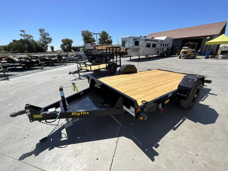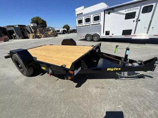 2026 Big Tex 70ST-13 Equipment Trailer Looking for a reliable and affordable trailer for your equipment or small vehicles? The Big Tex 70ST-13 offers simple, efficient loading and unloading with its single-axle tilt design. This compact yet robust trailer is an excellent value for a wide range of applications. Key Specifications: * Dimensions: 81” wide x 13’ long * GVW (Gross Vehicle Weight): 7,000 lbs * Empty Weight: 2,110 lbs * Axle: (1) 7,000 lb 4” drop axle with electric brakes * Tilt Angle: 12 degrees for easy loading * Deck: 2” treated pine or Douglas fir * Tires: ST235/80 R-16 Load Range E radial tires Features for Durability & Convenience: * Effortless Operation: The hydraulic dampening system and knife-edge rear design make loading smooth and easy. * Secure Transport: Features include a front stop rail, rubrail, stake pockets, and four 5/8” D-rings to keep your cargo secure. * Heavy-Duty Build: A 5” channel frame, 8,000 lb drop-leg jack, and adjustable 7,000 lb coupler ensure a strong and dependable build. * Safety First: The trailer is equipped with forward self-adjusting electric brakes, a complete break-away system with a charger, and L.E.D. lighting. * Added Value: Enjoy the convenience of a storage tray in the tongue area, removable diamond-plate fenders, and EZ Lube hubs for simple maintenance. This Big Tex 70ST-13 is built to last with a superior quality finish and professional cleaning process. *Please note: While we strive for accuracy, it’s always best to verify all specifications with a sales representative.*