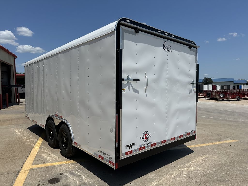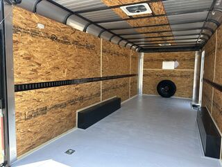 8.5ft x 20ft 14K HD Cargo Trailer Expedition Series 2– 7,000 lb. Brake Axles Triple Tongue Extended Hitch Curved Roof System 2 Non Power Roof Vents 2 5/16in Adjustable 14K Coupler 235 80 16in Radials On Black Mod Wheels With Caps 7K Drop Leg Jack 24in ATP Front Stone Guard ATP Corner Post Covers Smooth Aluminum Fenders 7ft Interior Height ESX Package Spring Assist Rear Ramp Door 36in Side Door With RV and Cam Bar Lock Built In Step On Side Door Gray Painted Plywood Floors 1 Row of E Track ATP Corner Post   Empty Weight 5,000 lb. G.V.W.R. 14,000 lb. Carrying Capacity 9,000 lb.