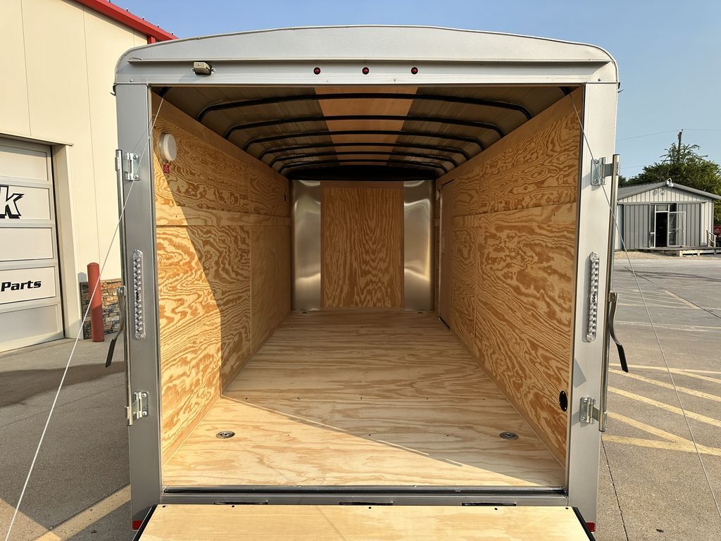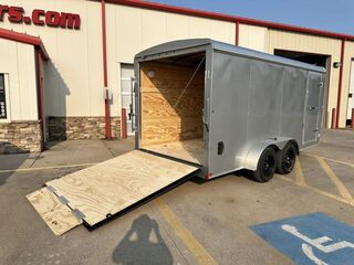 7’ x 16’ CGR 2 x 3,500 lb. Lippert EZ Lube 4 in Drop Brake Axles Brakes on Both Axles 7 WAY Sealed Wiring Harness All LED Exterior Lights (New Strip Rear Lighting) 2 5/16 in Coupler Triple 2 in x 6 in Tongue Aluminum Siding ATP Diamond Plate Fenders 6’ 6 in Interior Height Rounded Roof System 2K Jack 5 Hole Wheels ST205 75 R15 in Black Mod (Upgraded Radials) Double Spring Assist Rear Ramp Door 36 in Side Door 24 in ATP Front Stone Guard ¾ in Treated Plywood Floors On 16 in Centers 3/8 in Plywood Walls On 16 in Centers (Full Sheet) Flow Thru Vents Empty Weight 2,490 lb. G.V.W.R. 7,000 lb. Carrying Capacity 4,510 lbs.