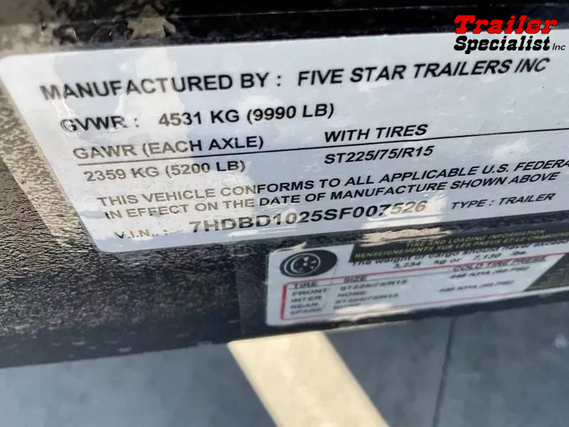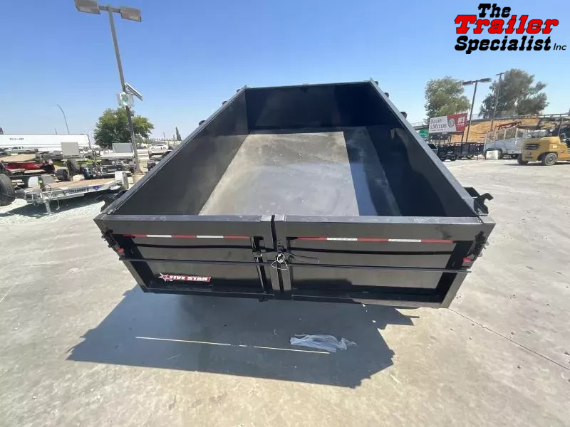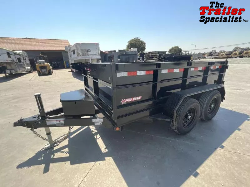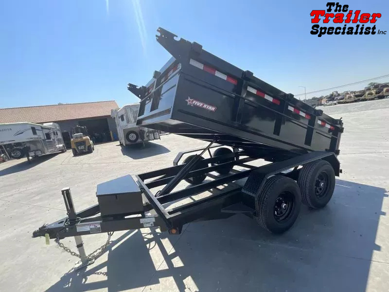 New 2025 Five Star DT258 D10 6x10 Dump Trailer (10K GVWR) Ready for work: This new 6x10 Five Star DT258 dump trailer boasts a 10,000 lb GVWR, offering a substantial 4,680 lb payload capacity despite its 2,380 lb empty weight. Built with a robust 4” channel frame, 2x2 tubing sidewalls, and 3x2 uprights, it features 14-gauge steel sides and a durable 12-gauge steel floor. Powering the easy dumping action is a 12V double-acting hydraulic pump paired with a 10K hydraulic cylinder, all powered by a 12V deep cycle battery with a 110V charger. Standard features include secure cam-lock double rear swing doors, a lockable pump and battery box, dual 5,000 lb axles with electric brakes, 15” tires and wheels, and bright LED lighting. *GVWR: 9,990 lbs Empty Weight: 2,380 lbs Payload Capacity: 4,680 lbs* *Note: Please confirm all specifications with your sales representative.*
