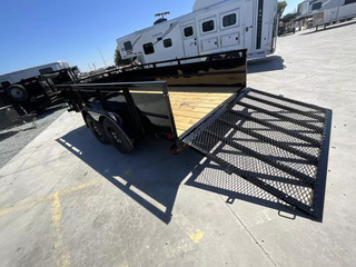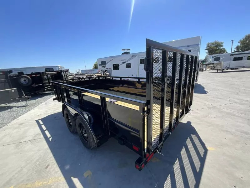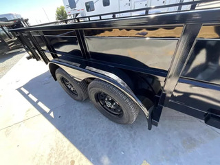 New 2026 Big Tex 70TV-14, 83’’ x 14’ Tandem Axle Vanguard Utility Trailer! The NEW 2025 70TV Tandem Axle Vanguard Trailer from Big Tex Trailers has a generous width and higher v-crimped steel sides to protect your cargo while hauling. This rugged trailer is perfect for heavy lawn and garden use, as well as heavy duty landscaping. 83” x 14’ Tandem axle Vanguard trailer1,808 # Empty weight7,000 # GVW GVW: 7,000 LBS Empty weight: 1,856 LBS 4’ ramp gate Spare tire mount 2 Electric Brakes Standard features include: | AXLE | (2) 3,500# Quick Lubricating w/ (1) Elec. Brake | JACK | 2,000# Top Wind, Set-Back Jack | TIRE | ST205/75R-15 Load Range C | FLOOR | 2” Treated Pine or Douglas Fir* | FRAME | 4” x 3” x 1/4” Angle | SIDES | 24” Tall V-Crimped Steel Sides | WHEEL | 15” x 5”; Black Mod 5 on 5 Bolt Pattern | FINISH | Superior Quality Finish is Applied for a Highly Decorative and Protective Finish | LIGHTS | L.E.D. D.O.T. Stop, Tail, Turn & Clearance | TONGUE | 4” Channel Fold Back/Wrap Tongue | COUPLER | Adjustable, 7,000#, 2” Forged Coupler | FENDERS | 9” x 72” 16 Ga. Tear Drop w/Back | G.V.W.R. | 7,000# | TOP RAIL | 2” x 2” Square Tubing | ELEC. PLUG | 7-Way RV | HITCH TYPE | Bumper Pull | SUSPENSION | Multi-Leaf Spring w/ Equalizer | CROSSMEMBERS | 3” x 2” x 3/16” Angle | | FINISH (Prep) | Steel is Cleaned to Ensure a Professional, Smooth Finish | SAFETY CHAINS | 1/4” Grd. 70 w/ Safety Latch Hook | G.A.W.R. (Ea. Axle) | 3,500# | The 70TV also comes equipped witH * (4) Tie Down Loops Inside Bed * (4) Stake Pockets on Outside Frame * Adjustable, Forged 7,000# Coupler * Fold Back/Wrap Tongue (14’ & Longer) * Set-Back Jack * Quick Lubricating Hubs * Premium Brand Axles * Forward Self-Adjusting Electric Brakes * Cambered Axles * 2-3/8” Pipe Top Rail * 29-3/8” Tall Sides w/ 24” V-Crimped Steel Panels * Tear Drop Style Fenders * Grommet Mount Sealed Lighting * L.E.D. Lighting Package * Protected Wiring * Removable Sand Foot on Jack * Complete Break-A-Way System w/Charger * Radial Tires While we always strive for complete accuracy, please confirm specifications with one of our sales representatives .