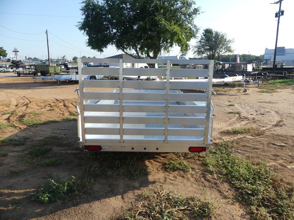 2000# Rubber torsion axle - No brakes - Easy lube hubs? ST175/80R13 LRC Radial tires (1360# cap/tire)? Steel wheels, 5-4.5 BHP? 12” Solid side kit? Aluminum fenders? Extruded aluminum floor? 6” Front retaining bumper? A-Framed aluminum tongue, 48” long with 2” coupler? 4) Stake pockets (2 per side)? 4) Tie down loops (2 per side)? Swivel tongue jack, 1200# capacity? LED Lighting package, safety chains? Aluminum tailgate - 50.25” x 39” longOverall width = 84.5”Overall length = 168”The Advertised Prices DO NOT Include: *Licensing* & TaxWe have over 200 trailers to choose from. Come in and see us at:6610 N I-35 Lacy Lakeview, TX 76705 (Exit 342B)Not in the great state of Texas? No Problem! We offer local and nation wide delivery.Store Hours:MON–FRI: 8:00 AM - 5:00 PMSATURDAY: 9:00 AM - 2:00 PMSUNDAY: ClosedRemember we handle all your Trailer Sales & Trailer Part Needs!!! Let us help you with servicing your trailer too! It is our pleasure to serve our community of Waco Texas and all of Central Texas!