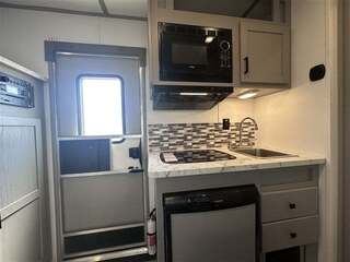 Trailer Details: * Model: RG7308 * 7’ Width * 7’ 6” Height * 24’ Floor Length * 32’ Overall Length * ST235/80R16 Tires w/ Black Mod Wheels 8 Lugs * (2) 6000# Axles * Electric Brakes * Steel Frame/ Aluminum Skin * Aluminum Roof Horse Area Details: * (3) Stalls * Collapsible Rear Tack w/ Saddle Rack * Rubber Floor Mats * Stall Pads * (4) LED Dome Lights (3) Roof Vents * Feed Doors * Wood Flooring Living Quarters Details: * 8’ SW * Sofa * 3 CuFt Fridge * Single S.S. Sink * 2 Burner Stove Top * Microwave * Shower & Toilet * Non Ducted AC & Furnace * Hot Water Heater * iRV Stereo w/ Bluetooth * Pass Through Door GVWR 14,419# EMPTY WEIGHT 8329# Sale Price Does Not Include Tax, Registration Fee, License, Freight, & Document Fee. We do not take out of State Checks. No guarantee as to the accuracy of this document is expressed or implied.