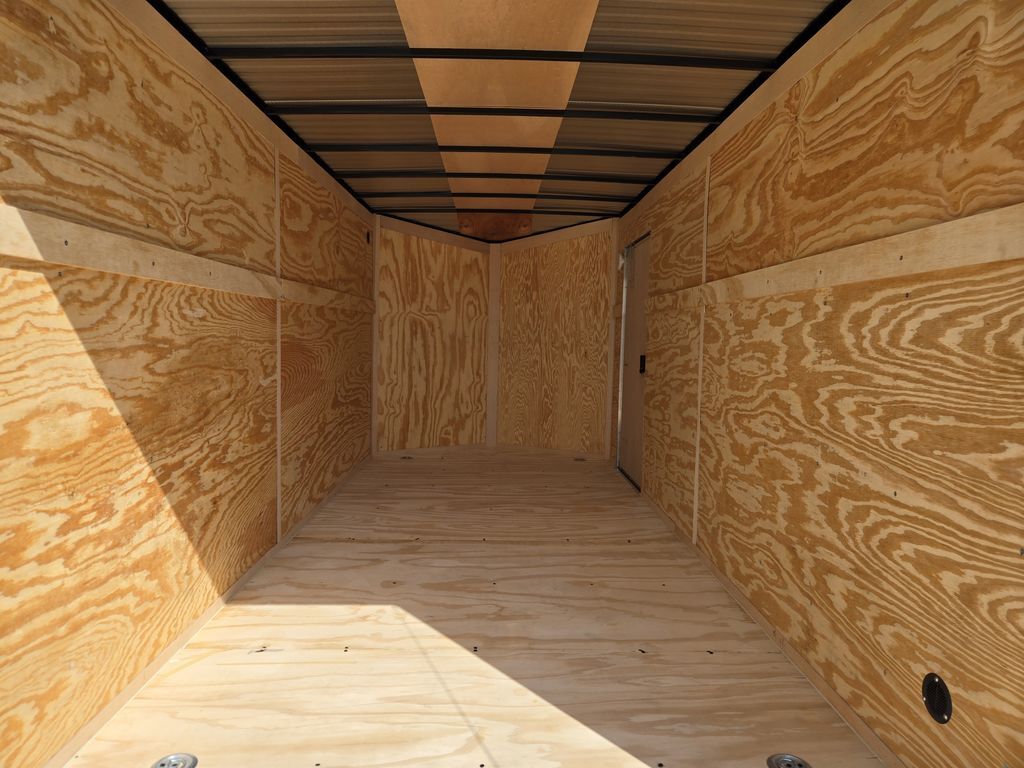 7’ x 16’ CGR CM + 6 in Interior Height 2 x 3,500 lb. EZ Lube 4 in Drop Axles 2 5/16 in Coupler Triple 2 in x 6 in Tongue .030 Aluminum Siding Side Post on 16 in Centers ATP Diamond Plate Fenders 6’ 6 in Interior Height Sloped Roof (Prevents Water from Sitting) 2K Jack 5 Hole Wheel ST 205 75 R 15 in Radials Dual Spring Assist Rear Ramp Door 36 in Side Door with Bar Lock and RV Latch Interior Spare Tire Mount ATP Front Stone Guard 3/4 in Treated Plywood Floors 3/8 in Plywood Walls Flow Through Vents Empty Weight: 2,490 lbs. GVWR: 7,000 lbs. Carrying Capacity: 4,510 lbs.