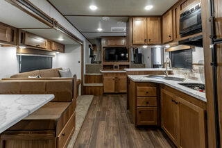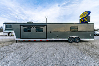 View Inventory: https://leonardtrailers.com/inventory/44917 Stock #44917 – RC20T16.S Gooseneck Toy Hauler with Slide-Out 20’ Living Quarters | 16’ Garage This RC20T16.S gooseneck toy hauler is designed to deliver the ideal balance of hauling power and residential comfort. Featuring 20 feet of fully equipped living quarters and a 16-foot rear garage, it’s an excellent choice for work, motorsports, or extended travel. Exterior & Chassis Gooseneck configuration Charcoal exterior with Brite aluminum nose 7,000 lb axles Aluminum rims with ST215/78R17.5 LRH tires (8-lug, black) Dual-leg hydraulic jack Full rear ramp door Exterior BBQ quick-disconnect Spray port with quick-connect hose Heat tape on holding tanks Load light package (4 total) Powered awning with LED light strip Living Quarters (20’) Slide-out for expanded living space Rustic Bison interior package Rustic flooring Rustic cabinetry Sofa & dinette 8 cu. ft. refrigerator 32” Roku Smart TV Stereo system with interior & exterior speakers Decor package (duvet, pillows, privacy curtain, ottoman) Cool Breeze rear door screen Kitchen, Bath & Climate 15,000 BTU ducted air conditioner 6-gallon gas/electric DSI water heater Recessed cooktop with range hood Fantastic Fan in bathroom Porcelain toilet Garage (16’) Full rear ramp door Load light package for improved visibility Ideal for ATVs, motorcycles, equipment, or cargo We offer outstanding financing options, accept trades, and can arrange nationwide NO HASSLE delivery! Inquire today for more information: (888) 333-6613 We believe these specifications to be accurate. Any discrepancies are unintentional. Please verify information with a sales associate prior to purchase. Stock Number:44917